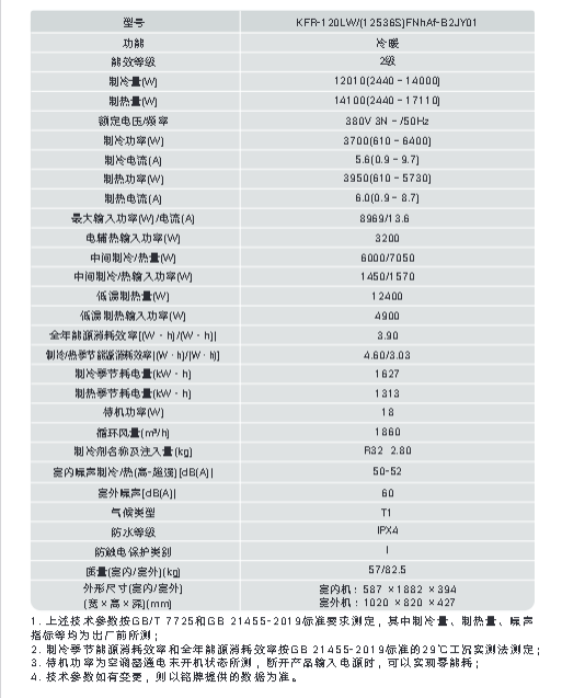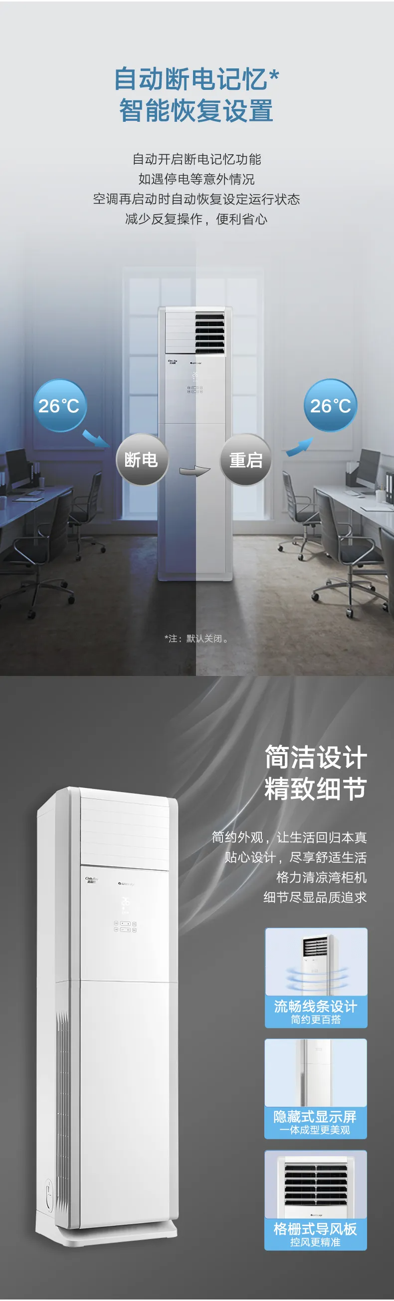 格力·清凉湾变频冷暖5匹2级能效柜机空调 380V电源 KFR-120LW/(12536S)FNhAf-B2JY01(浅灰)