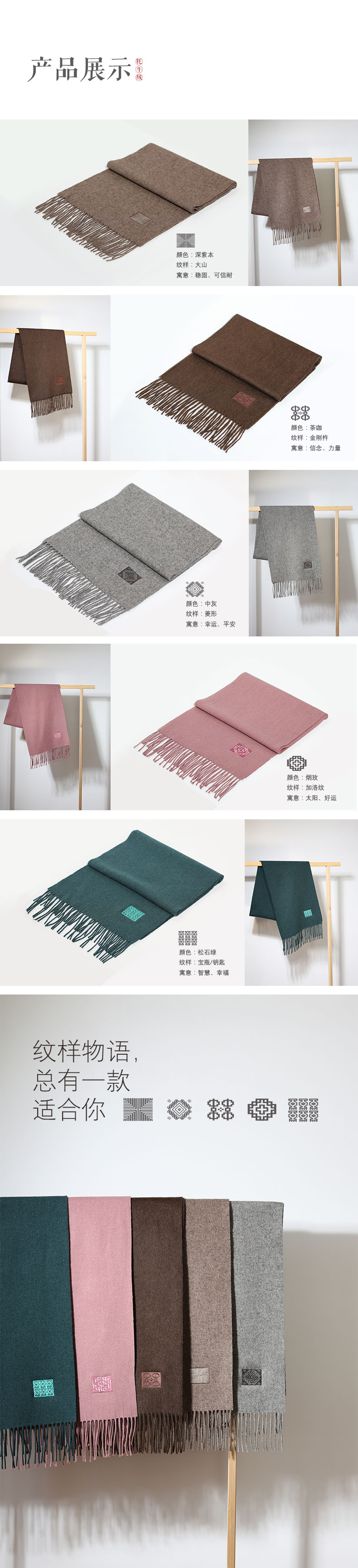 饮水鸟 藏地纹样牦牛绒围巾