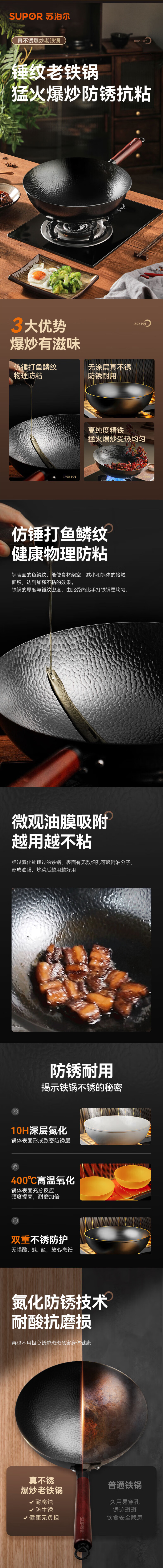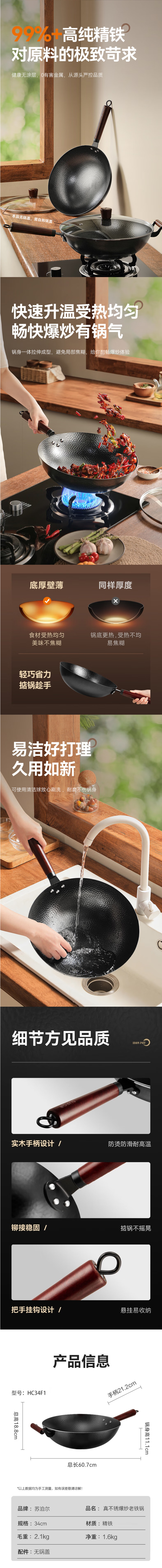苏泊尔(510497)(SUPOR)圆底炒锅(510497)老式尖底铁锅无涂层真不锈爆炒铁锅34cm家用炒菜锅HC34F1