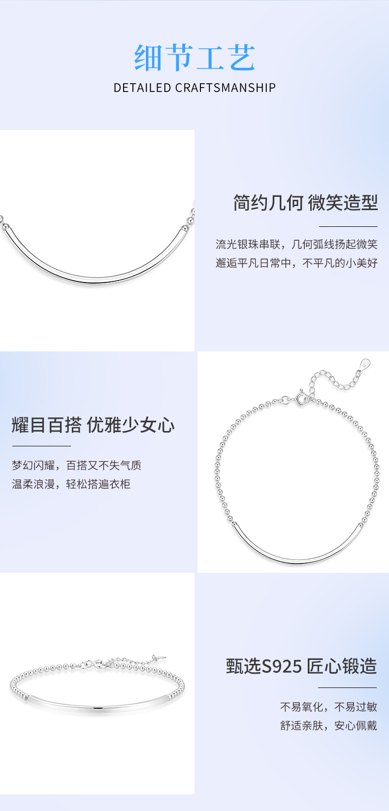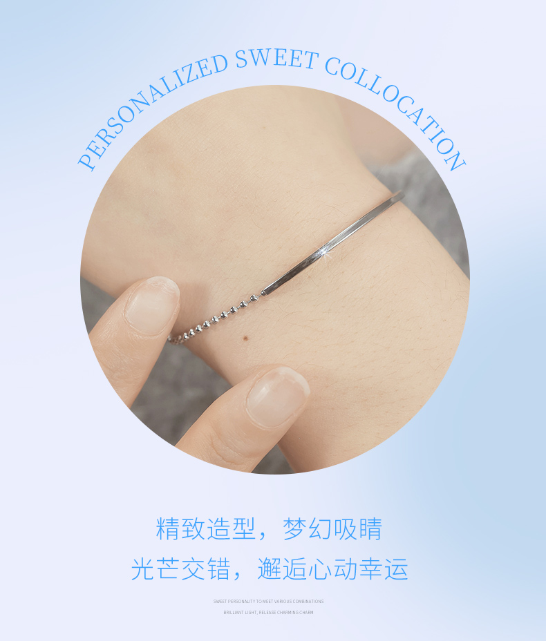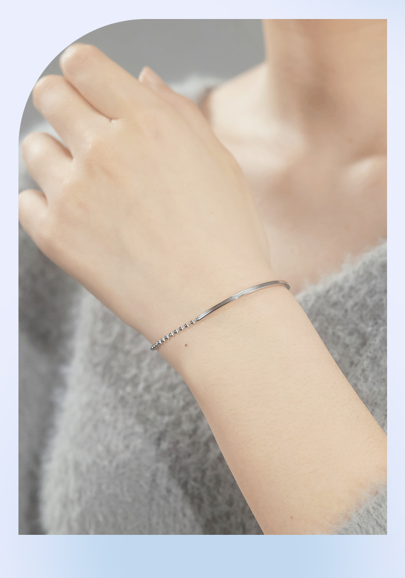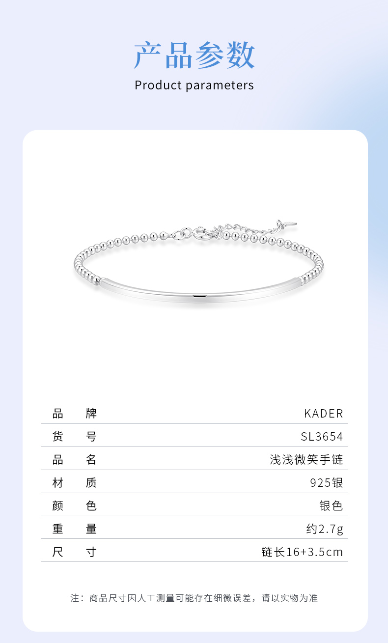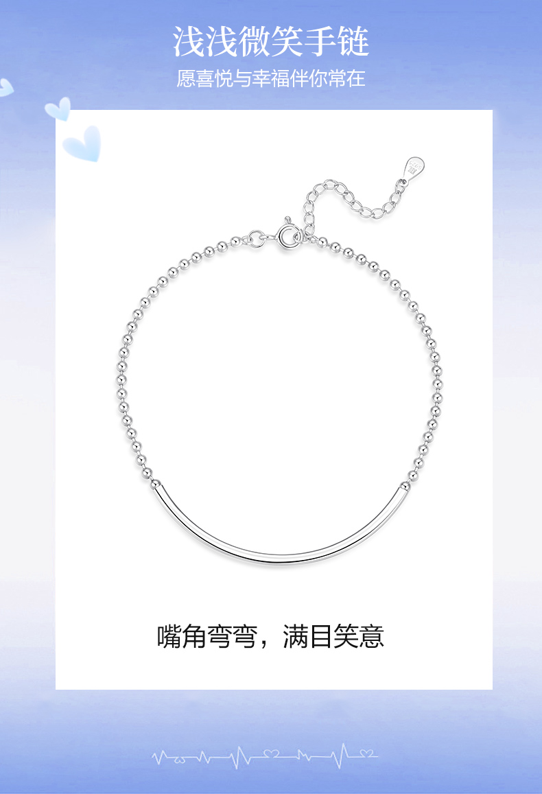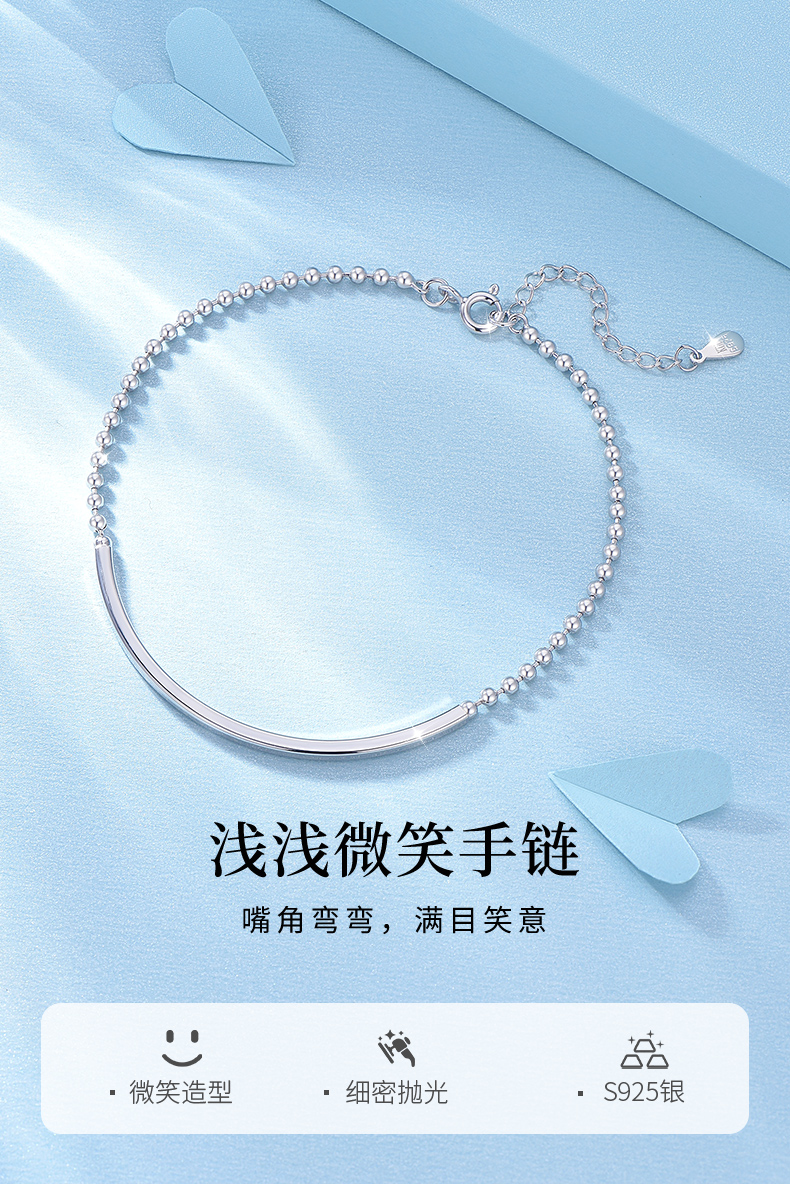 卡蒂罗KADER 微笑镯手链 简约大气小众素链设计高级感微微笑脸百搭可调节拼接链 精致时尚可叠带日常通勤不易撞款 925银 手链 女款 银色