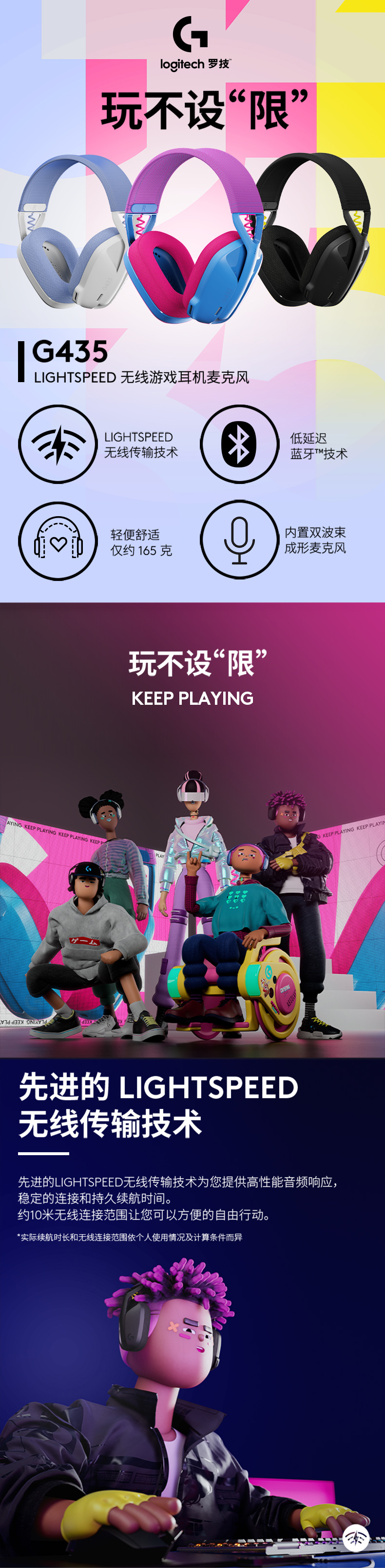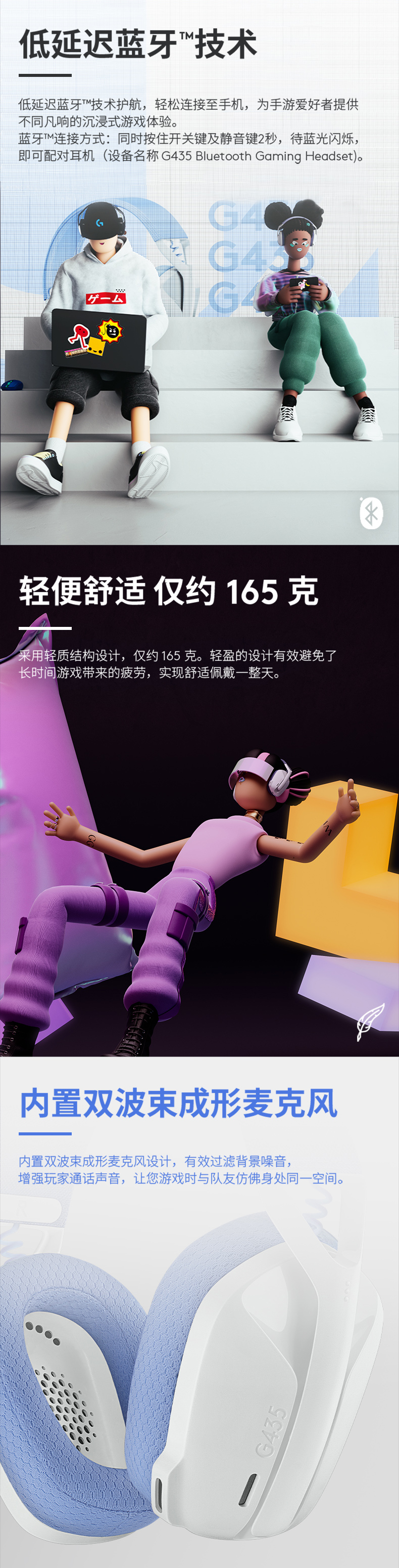 罗技G435 Lightspeed无线蓝牙头戴式电竞游戏耳机带麦克风lol立体声