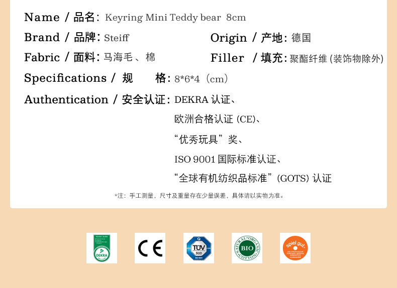 Steiff/史黛芙 泰迪熊挂件 8cm 039089