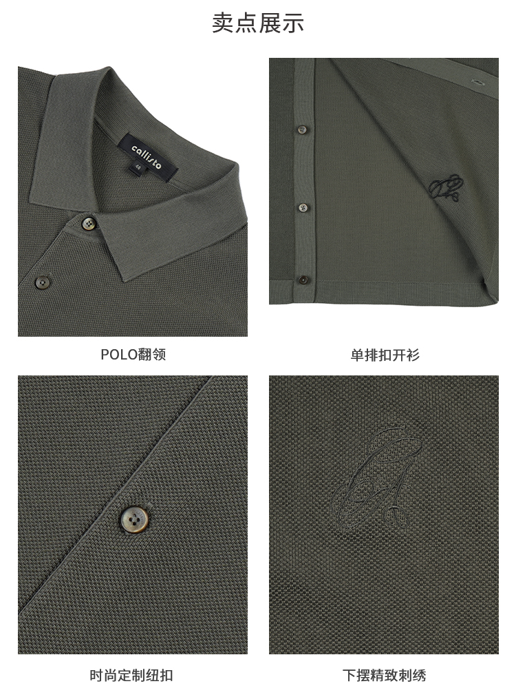 callisto绿色POLO翻领针织开衫