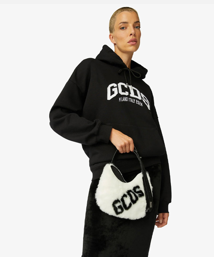 GCDS 女士 COMMA 小号人造毛皮徽标流浪汉包 白色 FW23U50036301