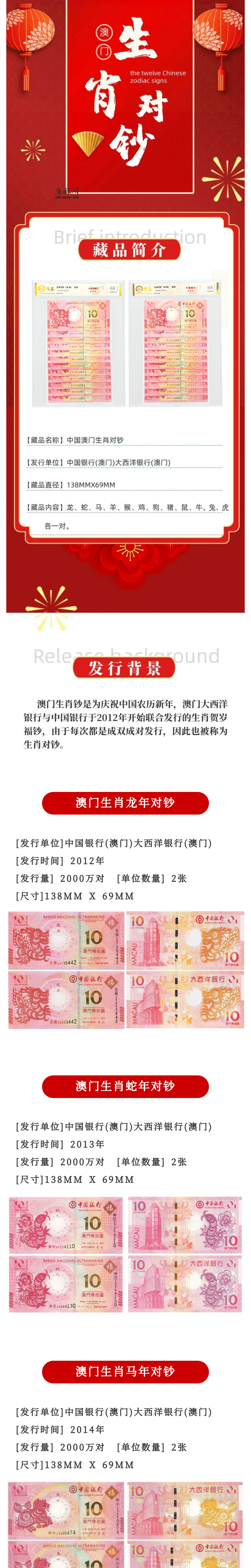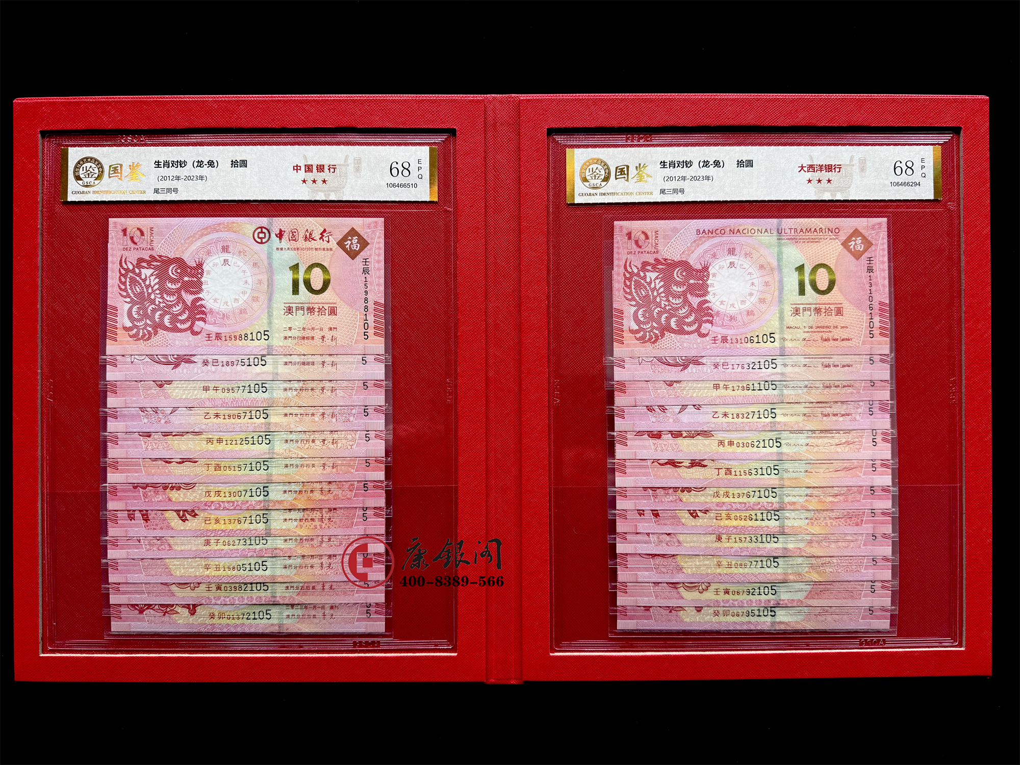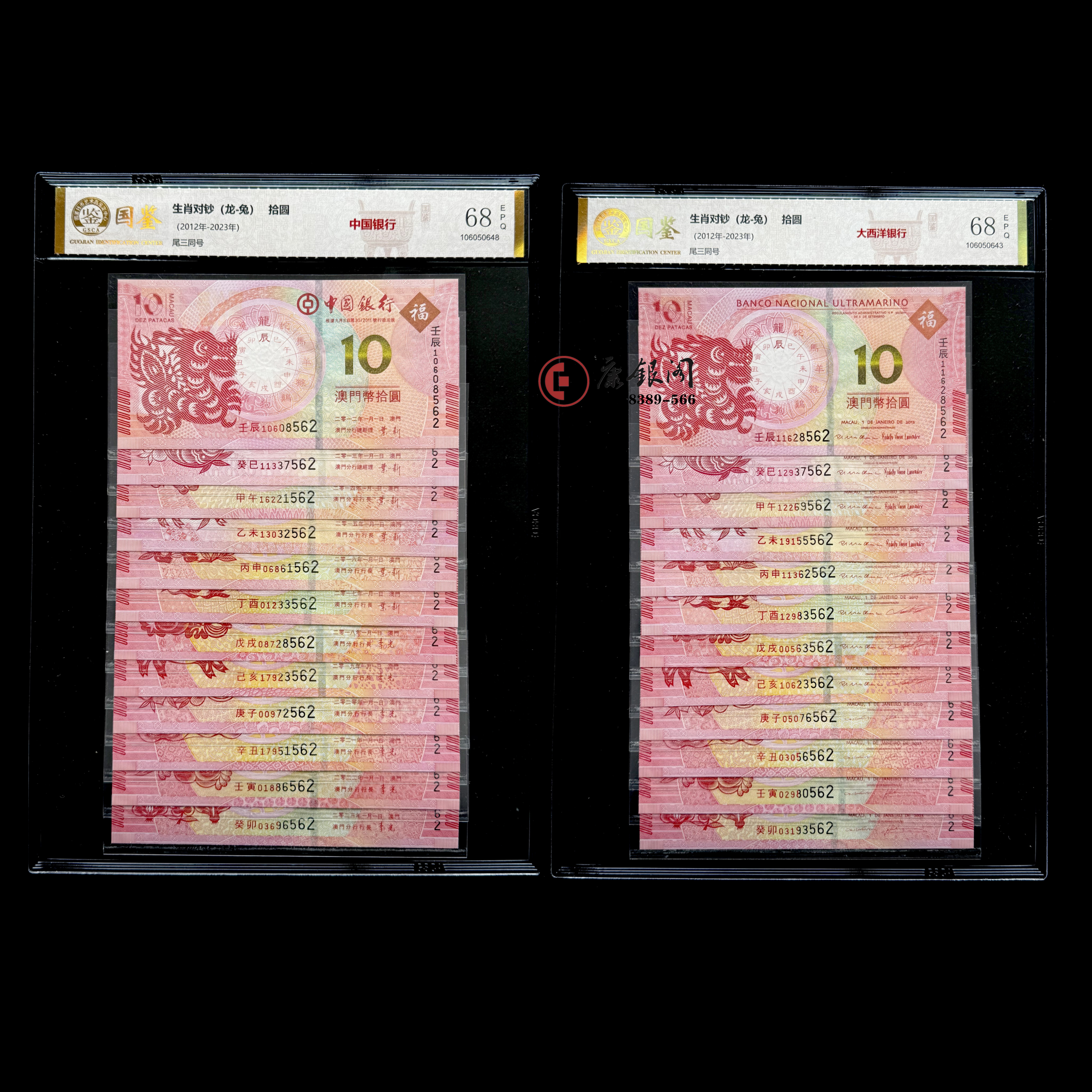 评级版《 澳门生肖对钞》十二生肖纪念钞珍藏册(全程无4)