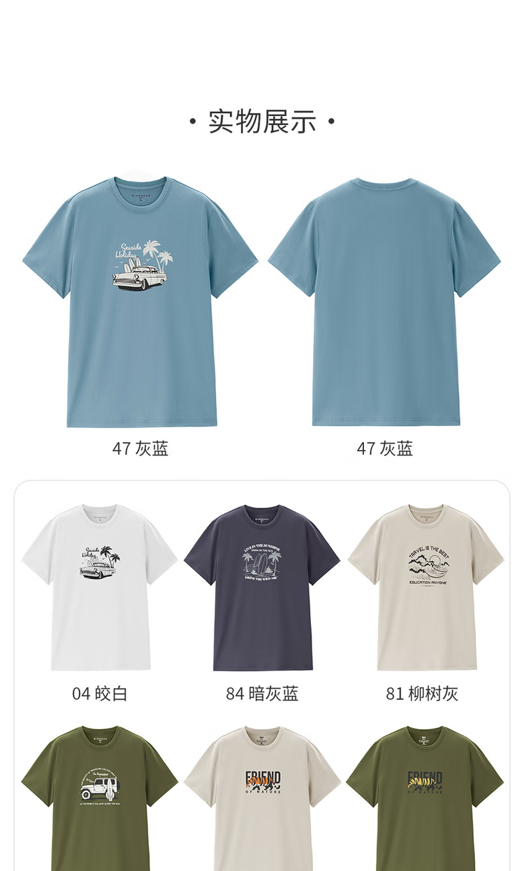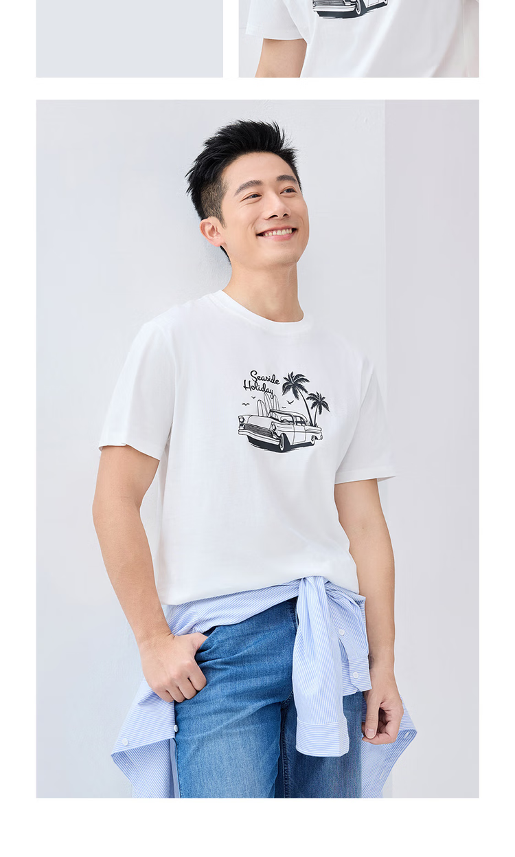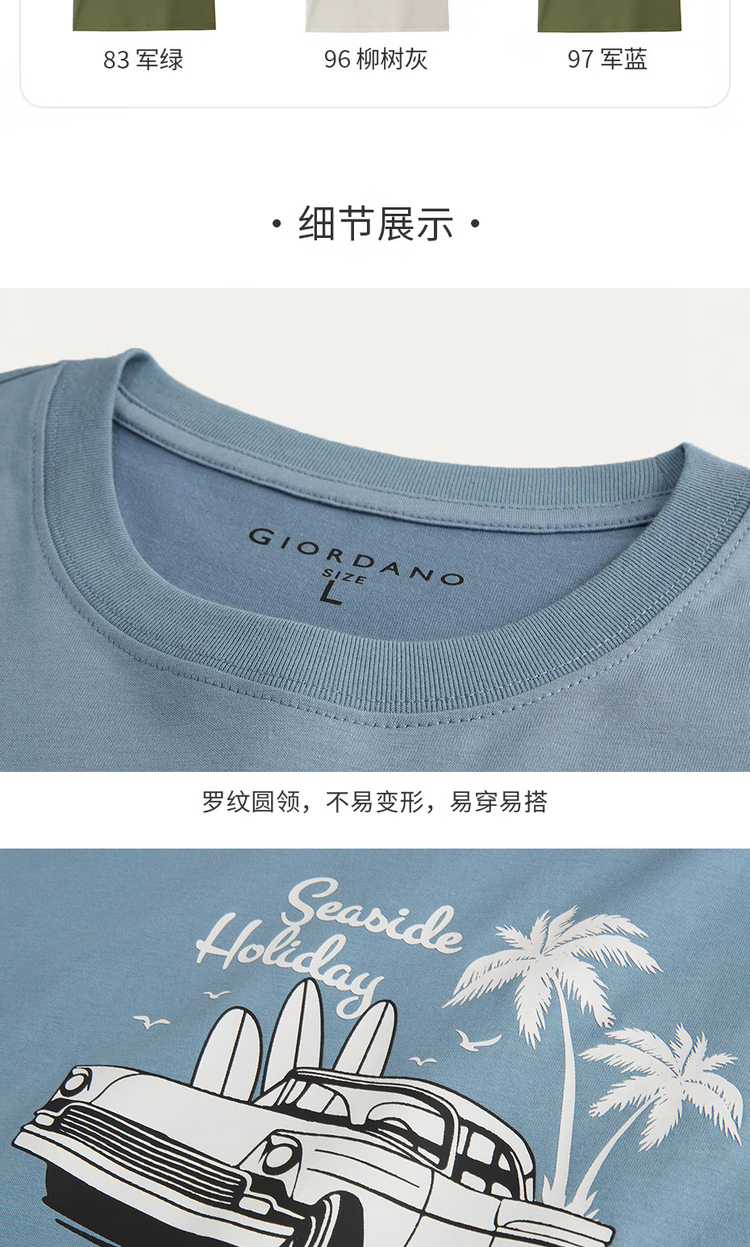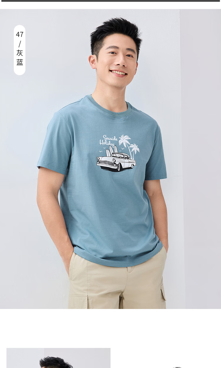 佐丹奴BM男装25年新款纯棉印花T恤衫13095206