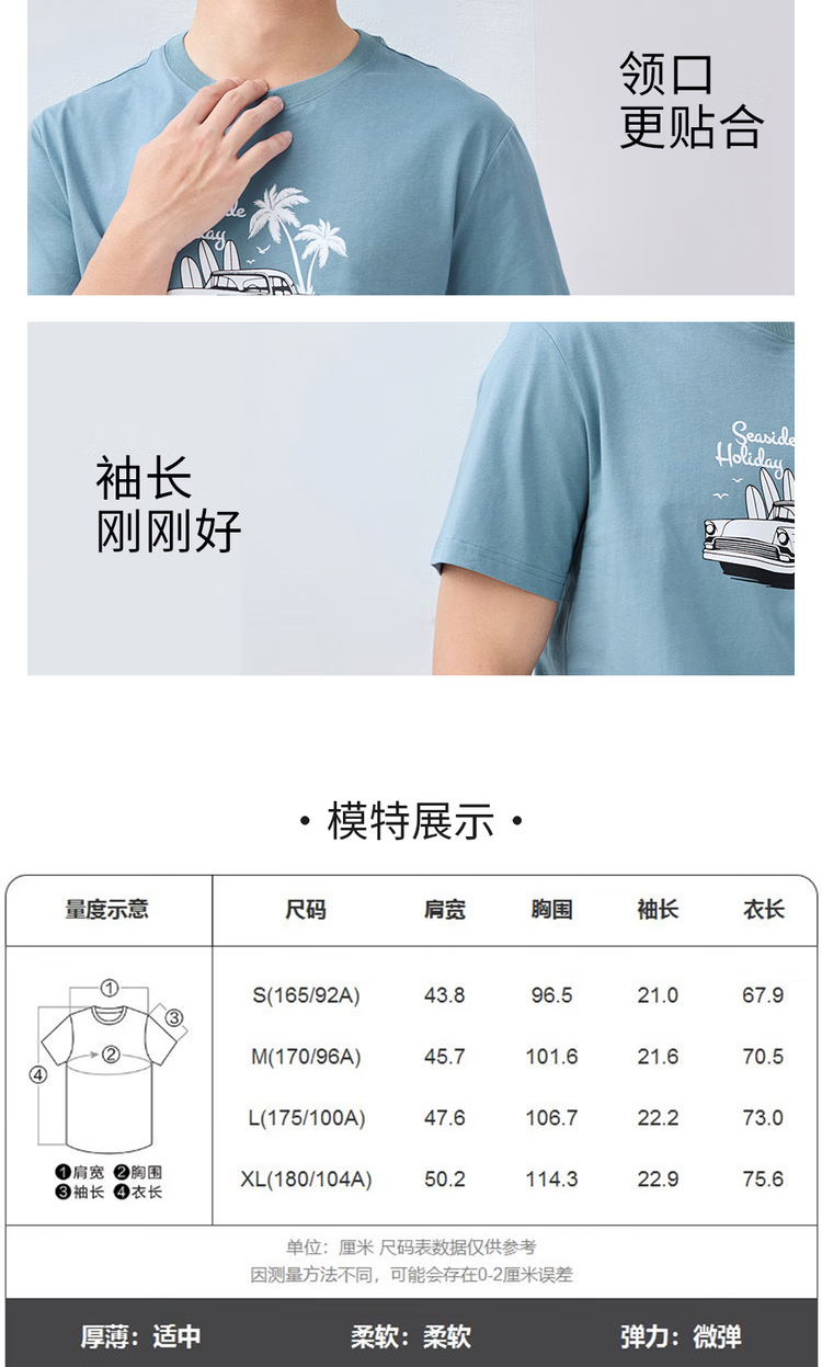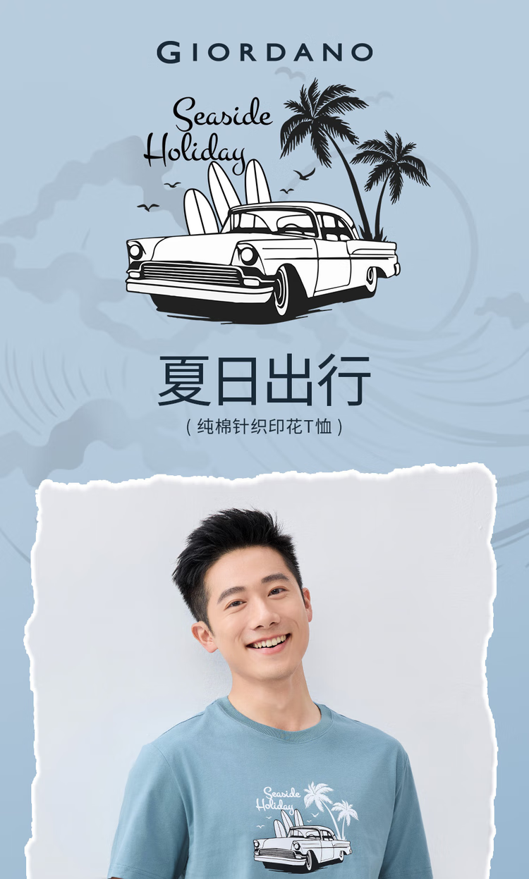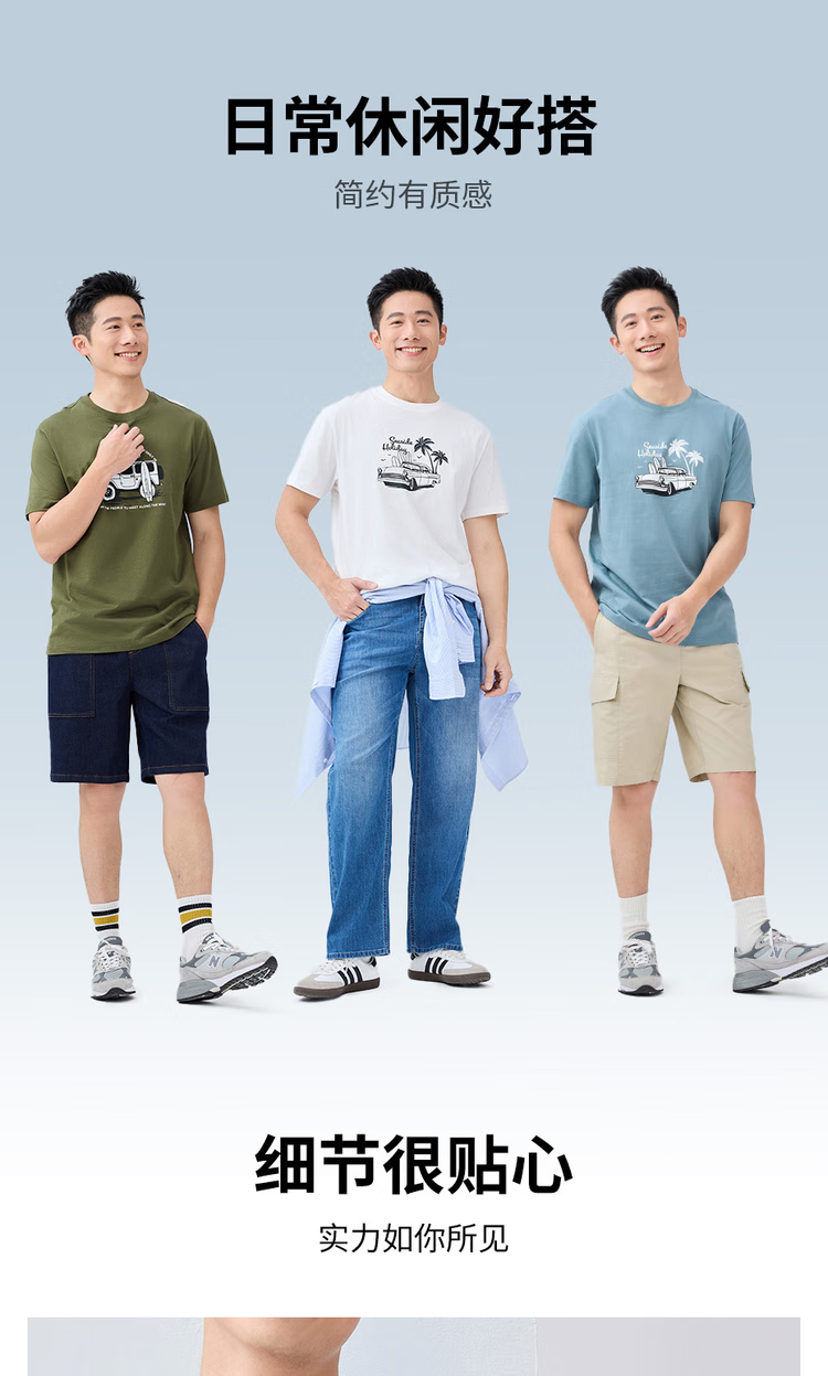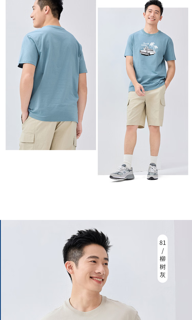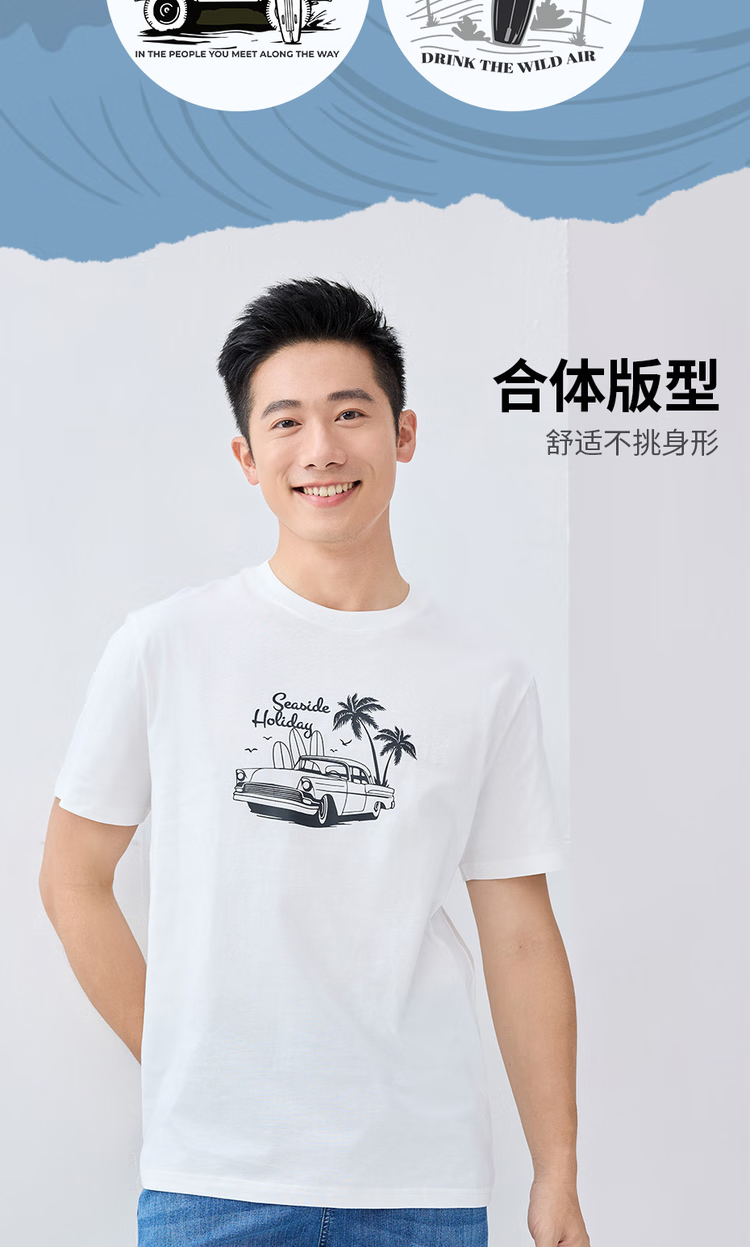 佐丹奴BM男装25年新款纯棉印花T恤衫13095206