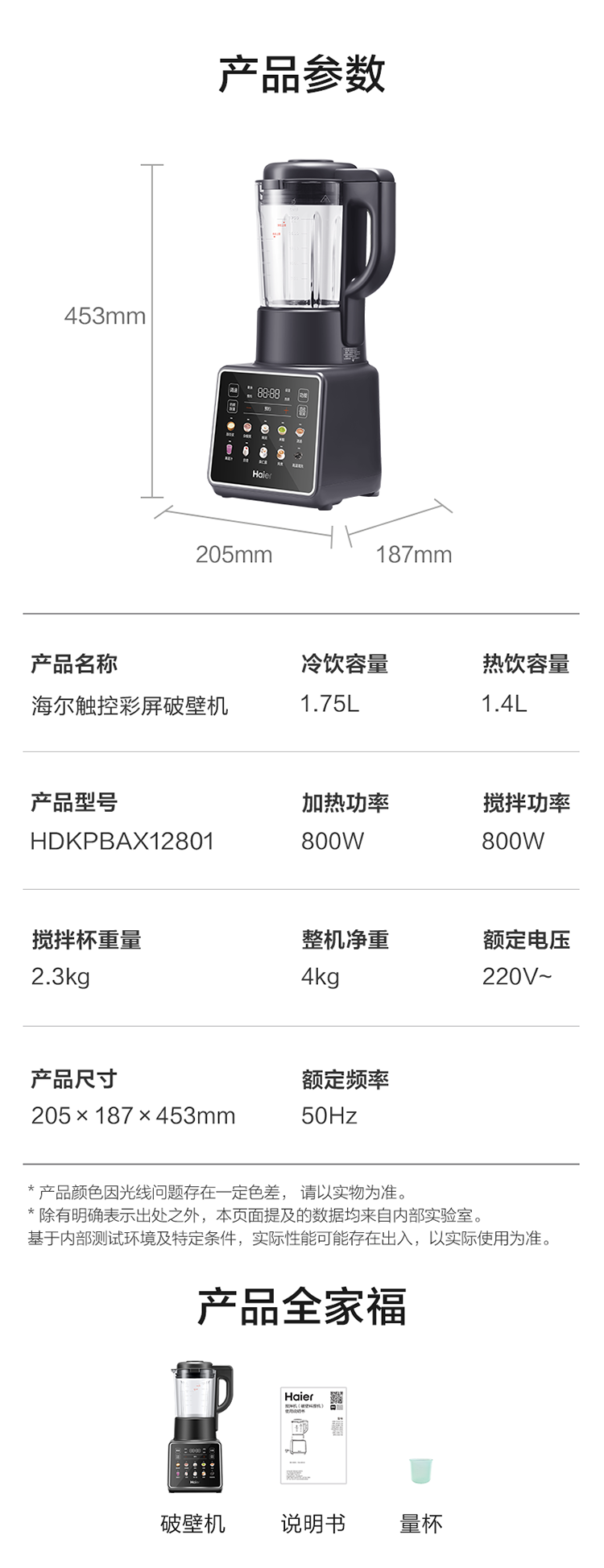 海尔(haier)触控彩屏破壁机HDKPBAX12801