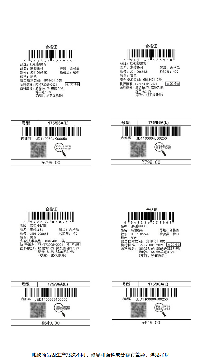 gxg.jeans男装冬毛衣男基础打底高领休闲针织衫 热卖毛衫