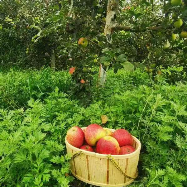 果子坚持自然放养方式种植,人工打草覆盖果园当绿肥,种植绿肥,发酵的牛羊粪施肥