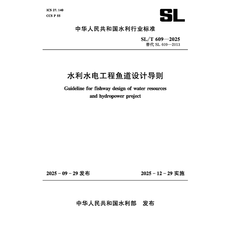 SL/T609-2025水利水电工程鱼道设计导则(中华人民共和国水利行业标准)