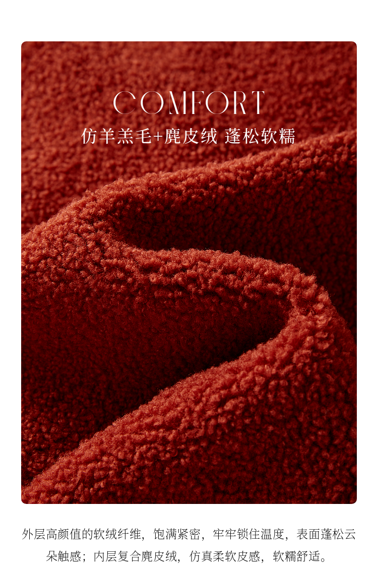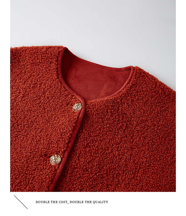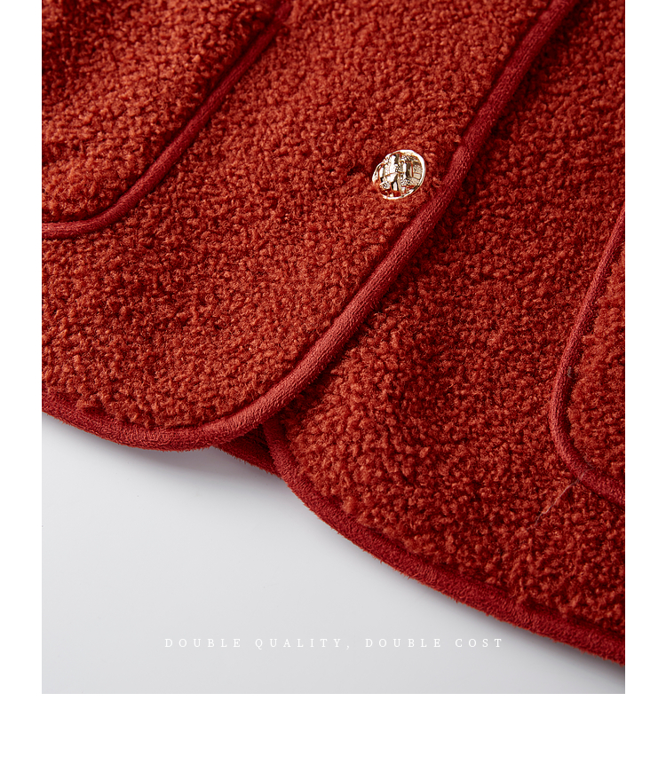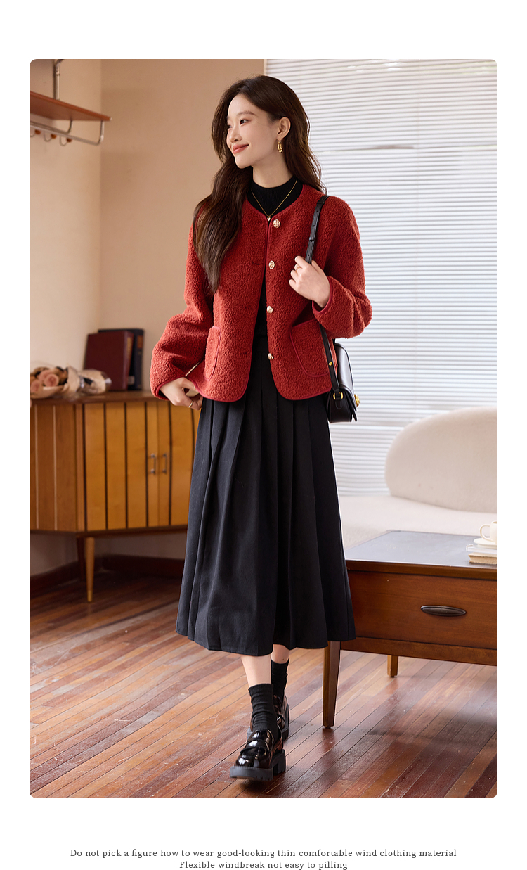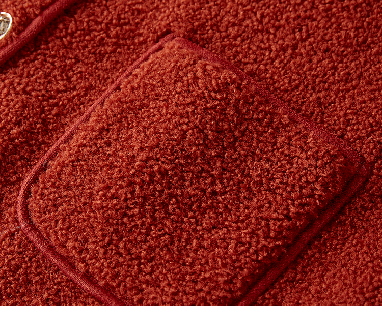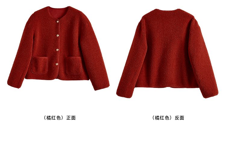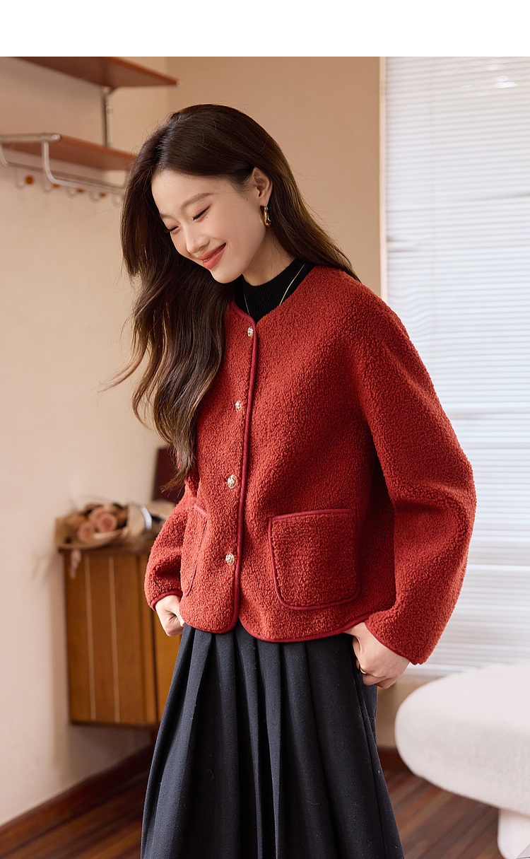 【年终特卖】熙世界复古红色小香风短款外套女秋冬小个子气质仿羊羔毛夹克上衣