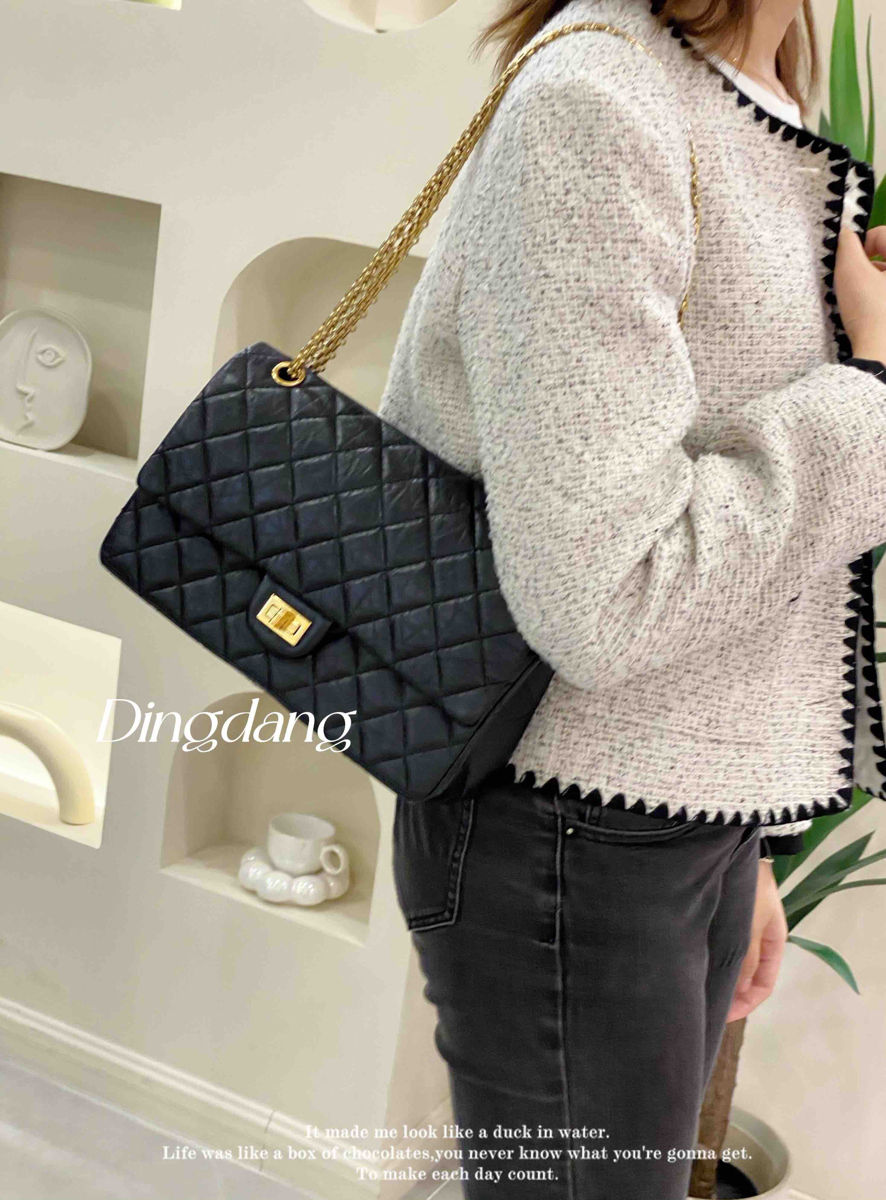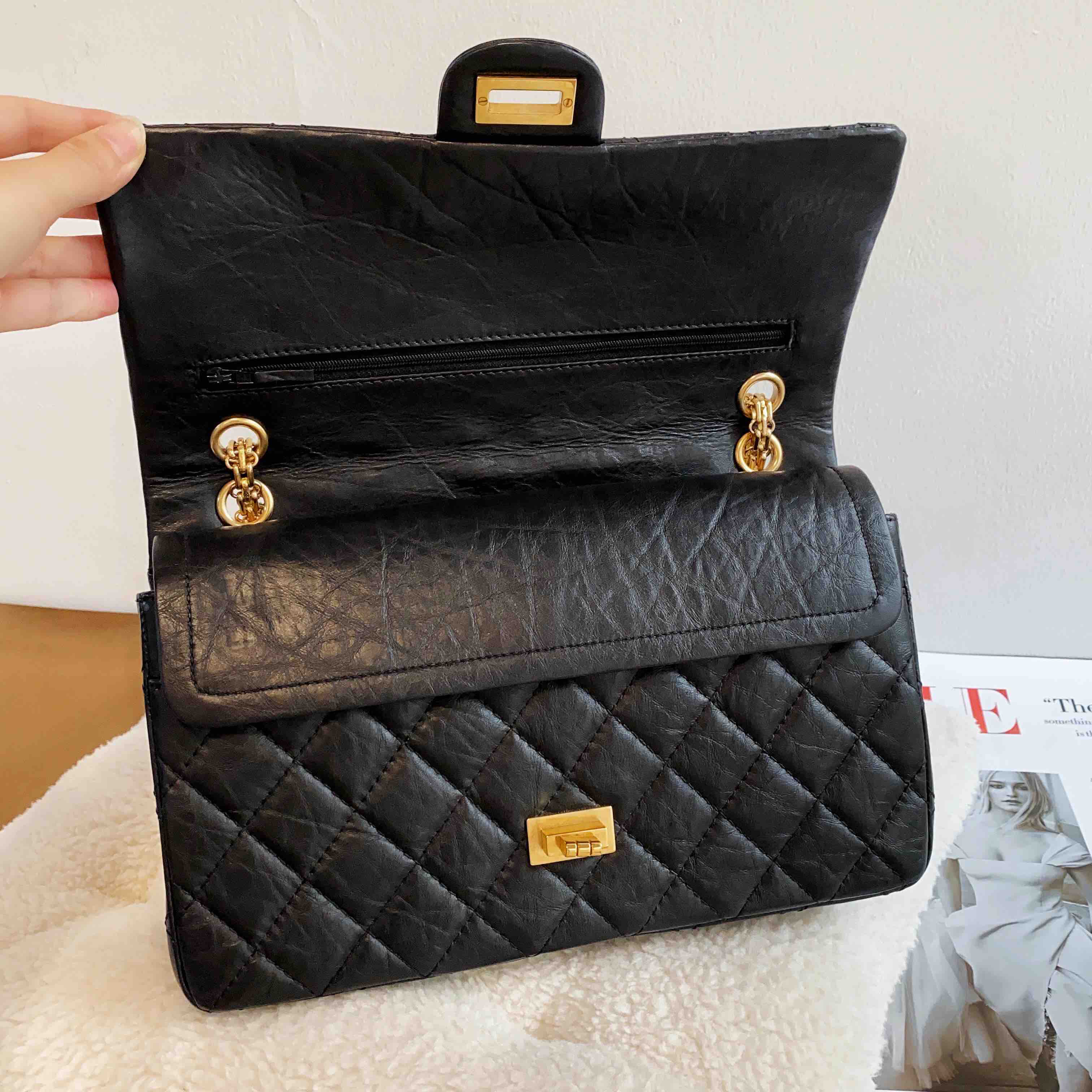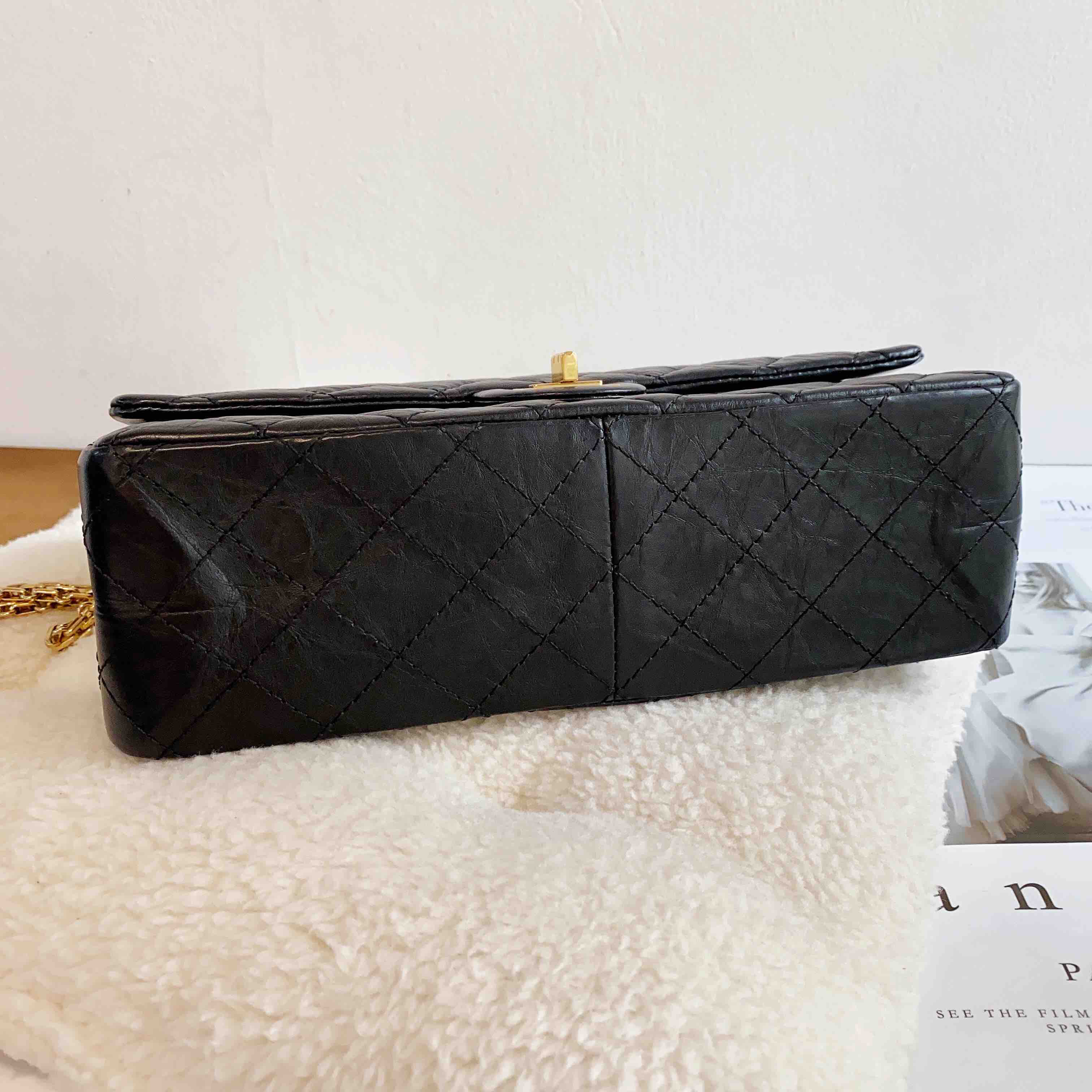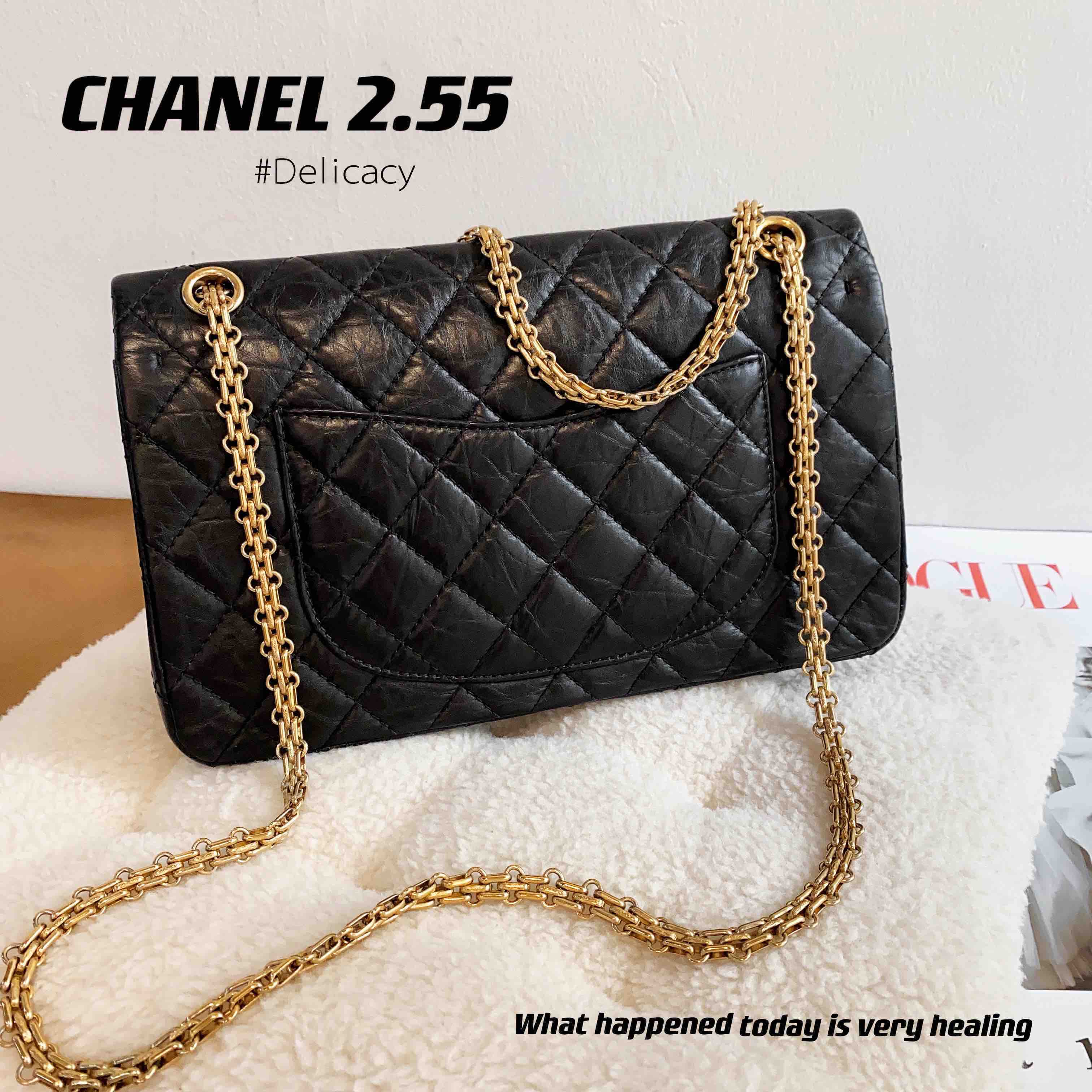 【商品描述】正品二手 Chanel 油蜡牛皮 2.55 黑金中号单肩包🉑97新 28* 18 镭射14开。链条微微氧化,内里干净