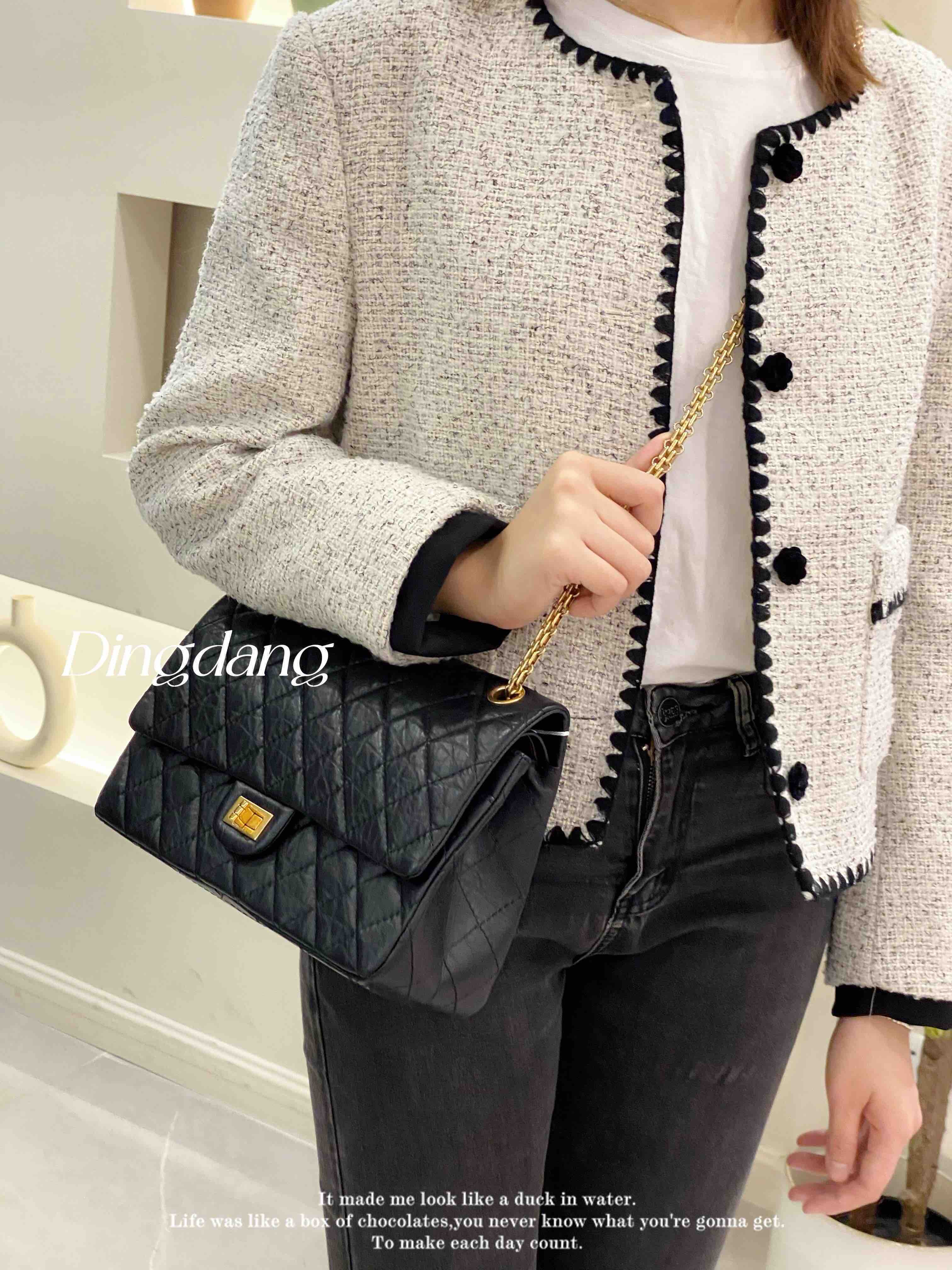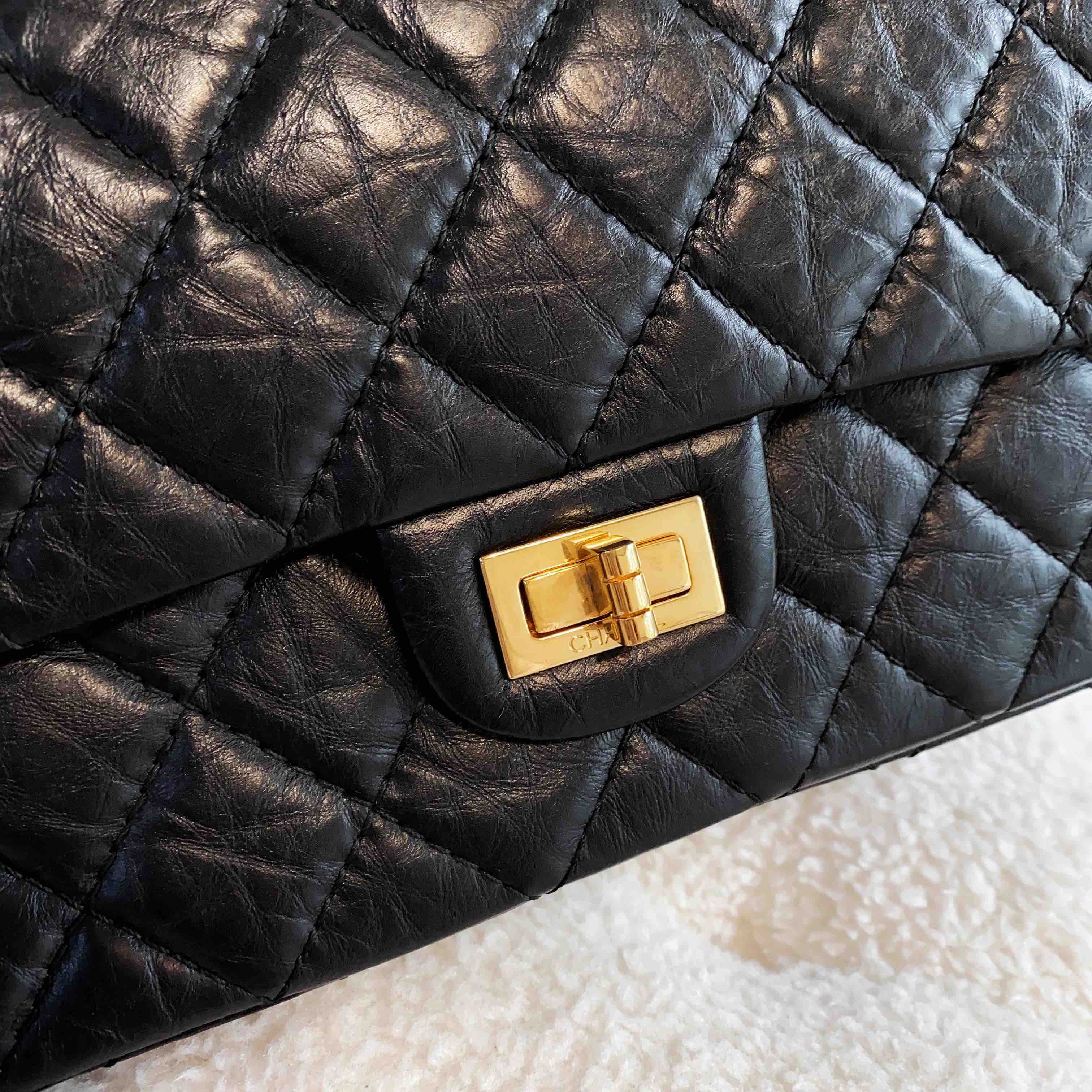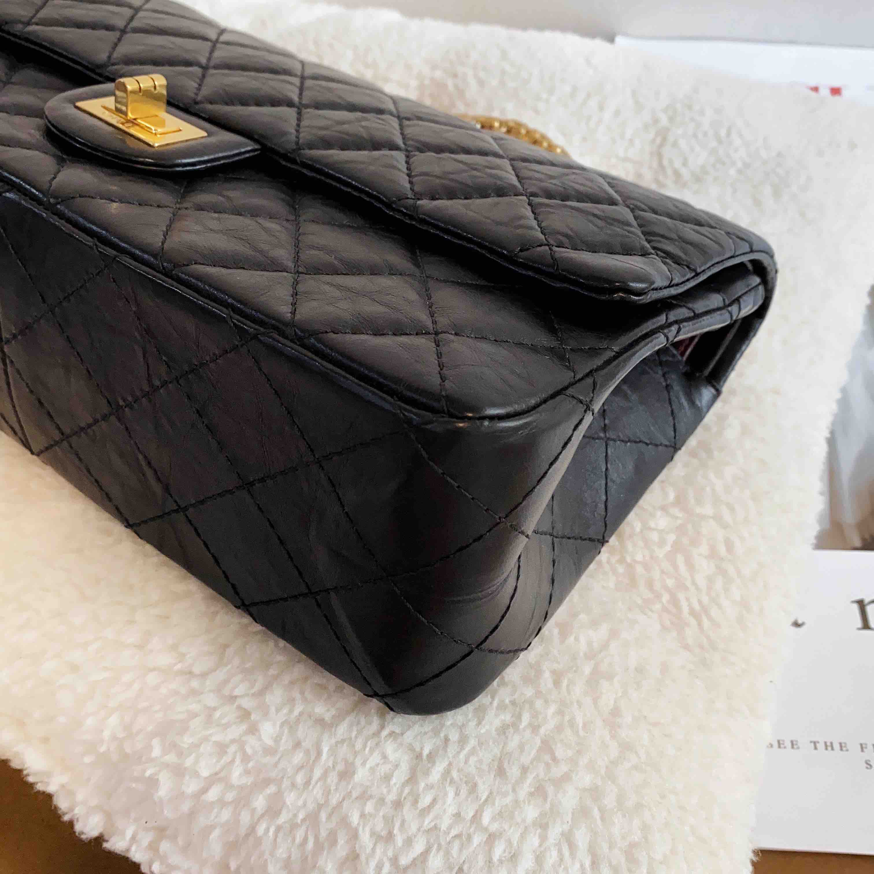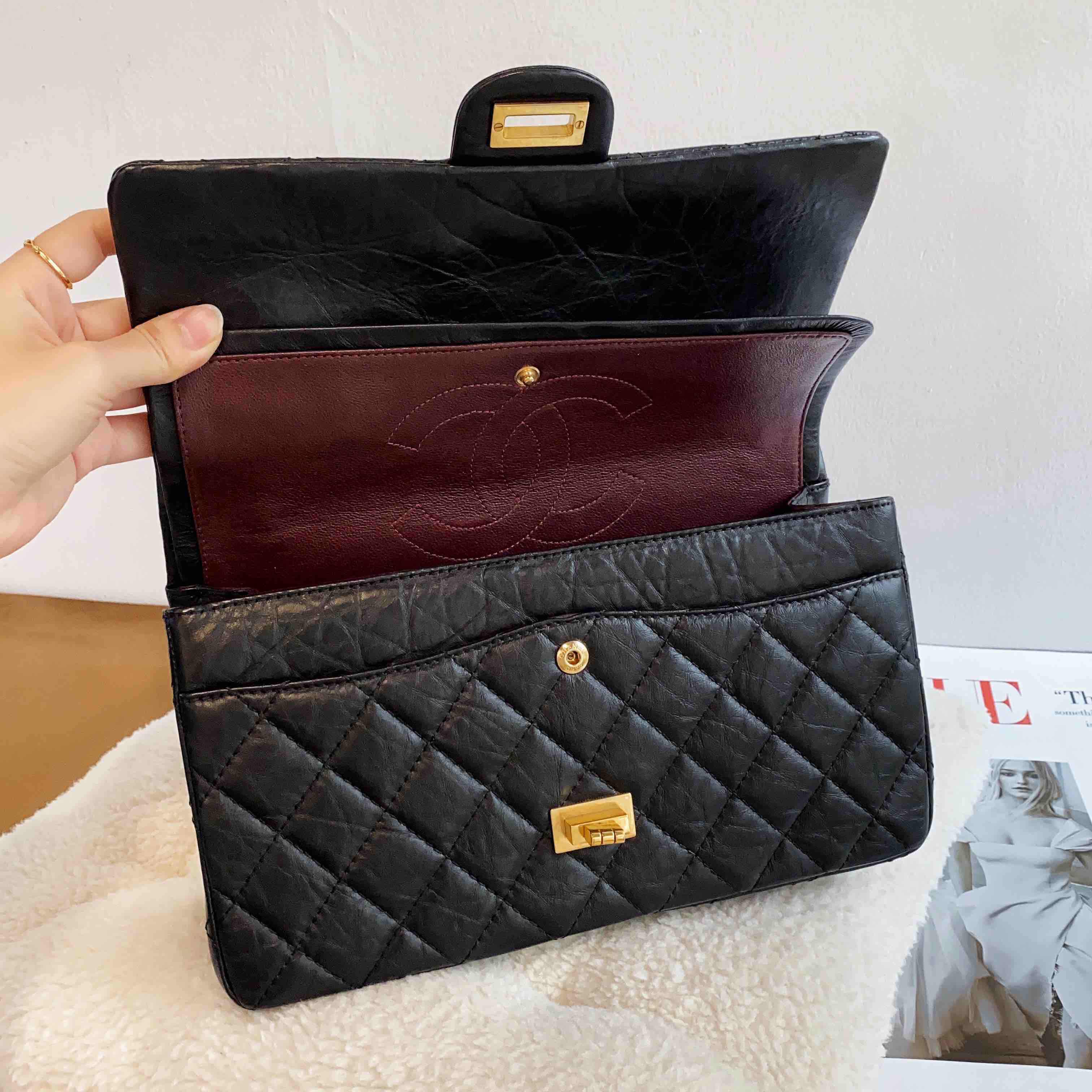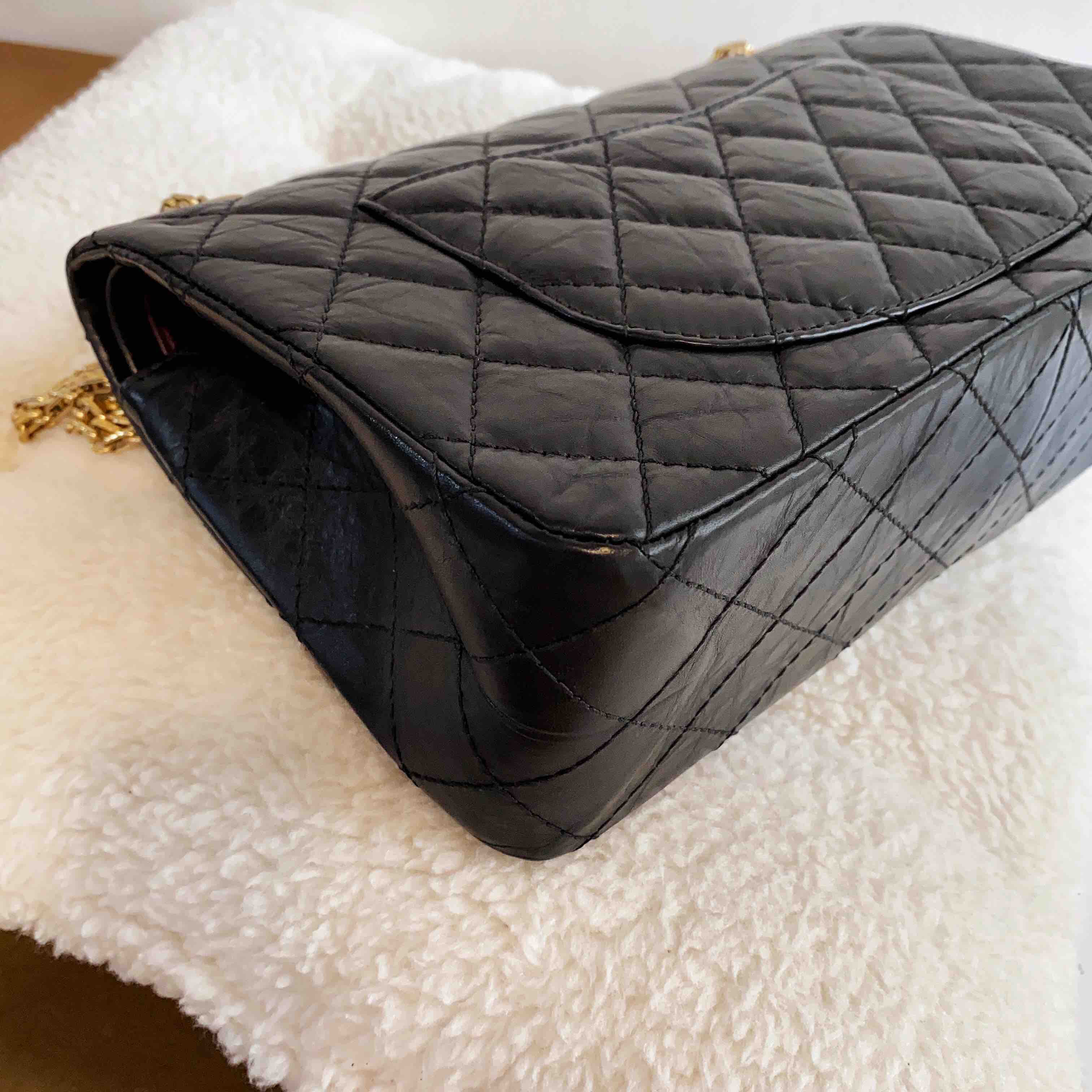 【商品描述】正品二手 Chanel 油蜡牛皮 2.55 黑金中号单肩包🉑97新 28* 18 镭射14开。链条微微氧化,内里干净
