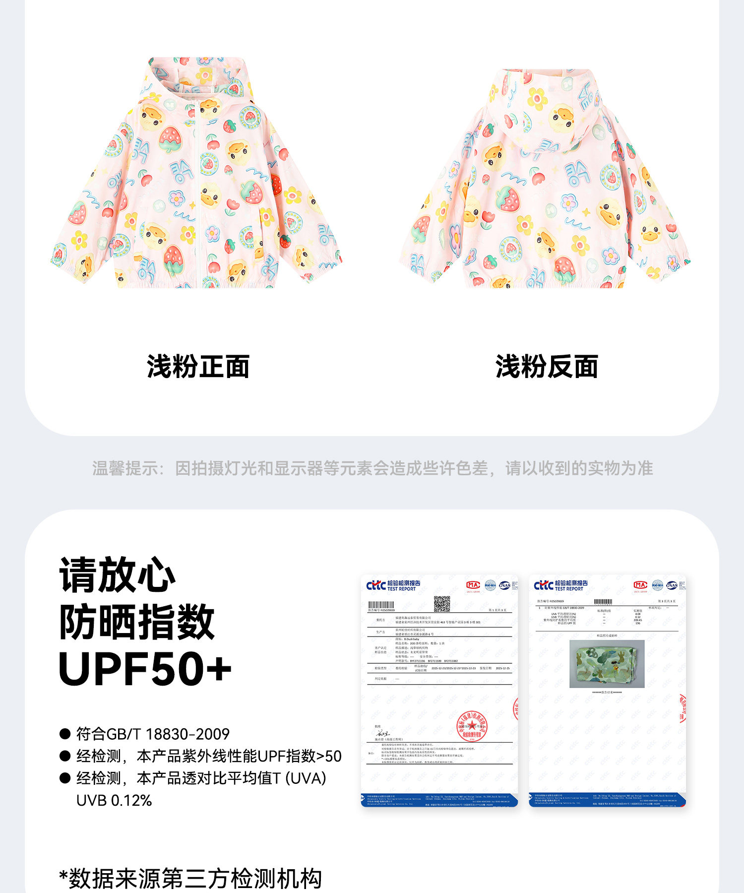 [UPF50]bduck小黄鸭童装儿童防晒衣男童夏装女童皮肤衣轻薄外套90-140 BF2711082