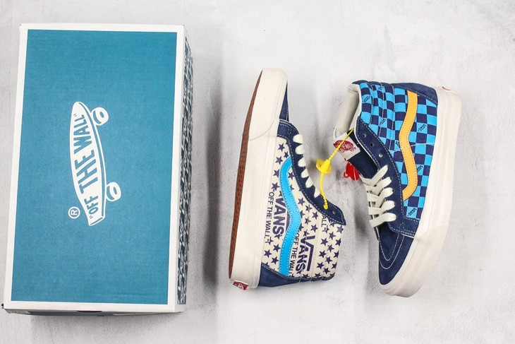 Vans 万斯 SK8-Hi Pro 帆布高帮硫化休闲板鞋高帮鸳鸯拼色 蓝色 Size:35--44 工艺:硫化1:1(重量1:1、真标、原钢印、材质标、鞋型标、合格证)