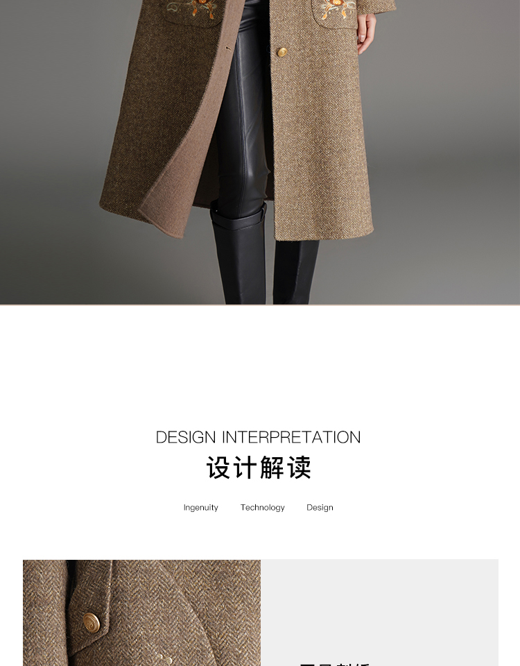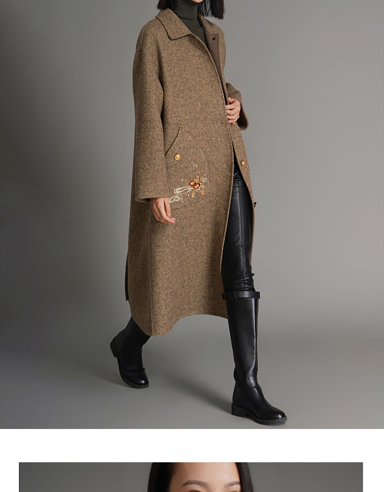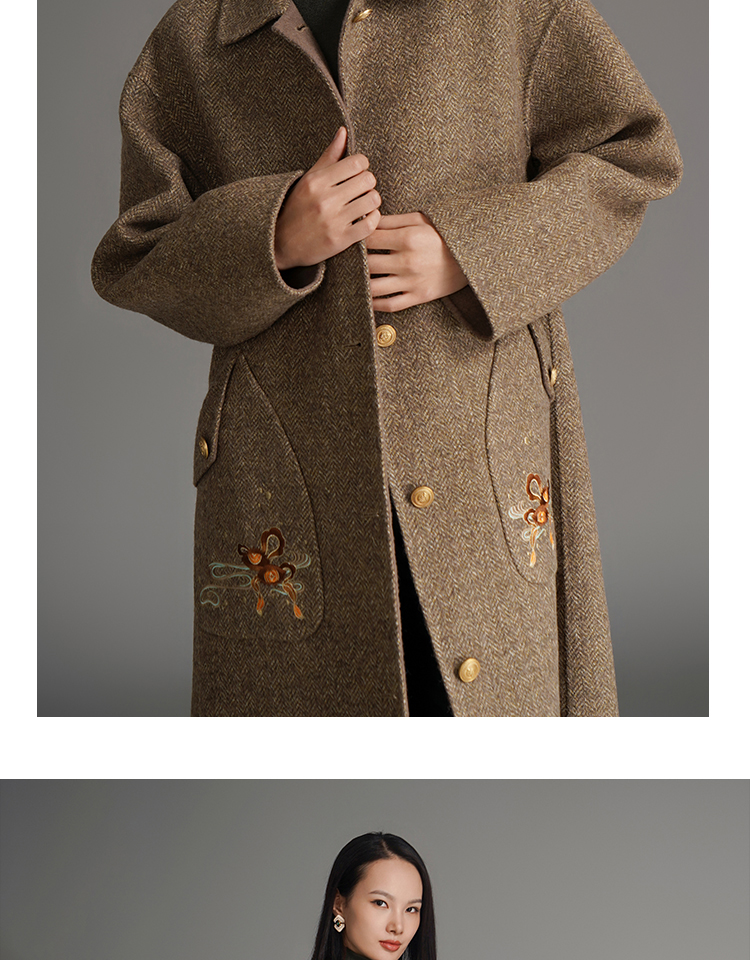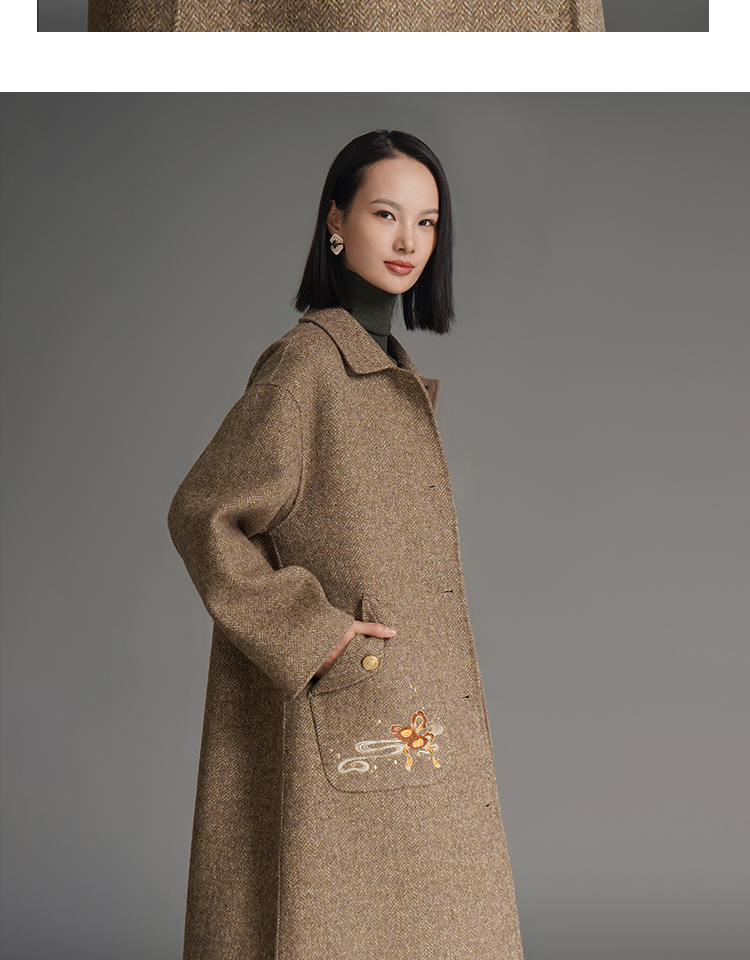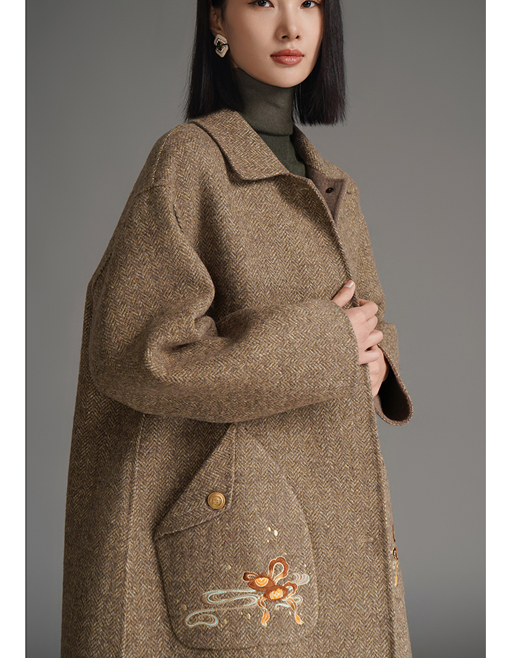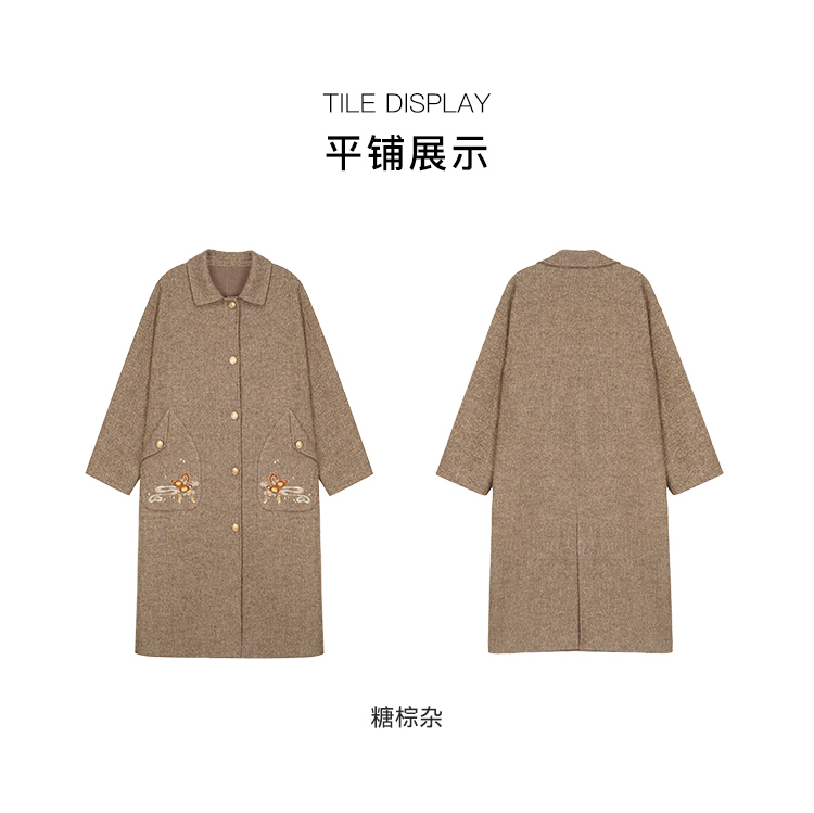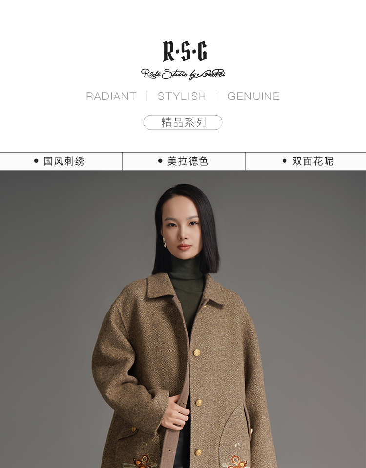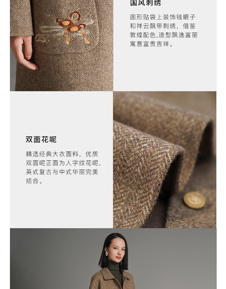 RSG郭培成衣品牌钱眼子祥云飘带刺绣贴袋美拉德色双面呢大衣