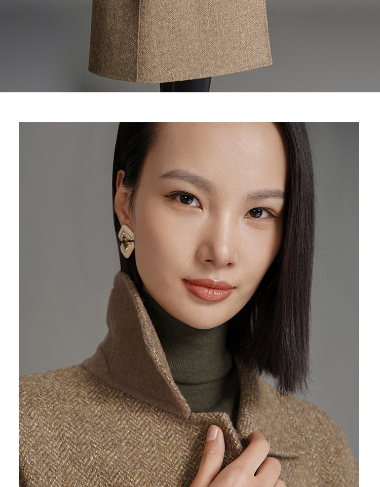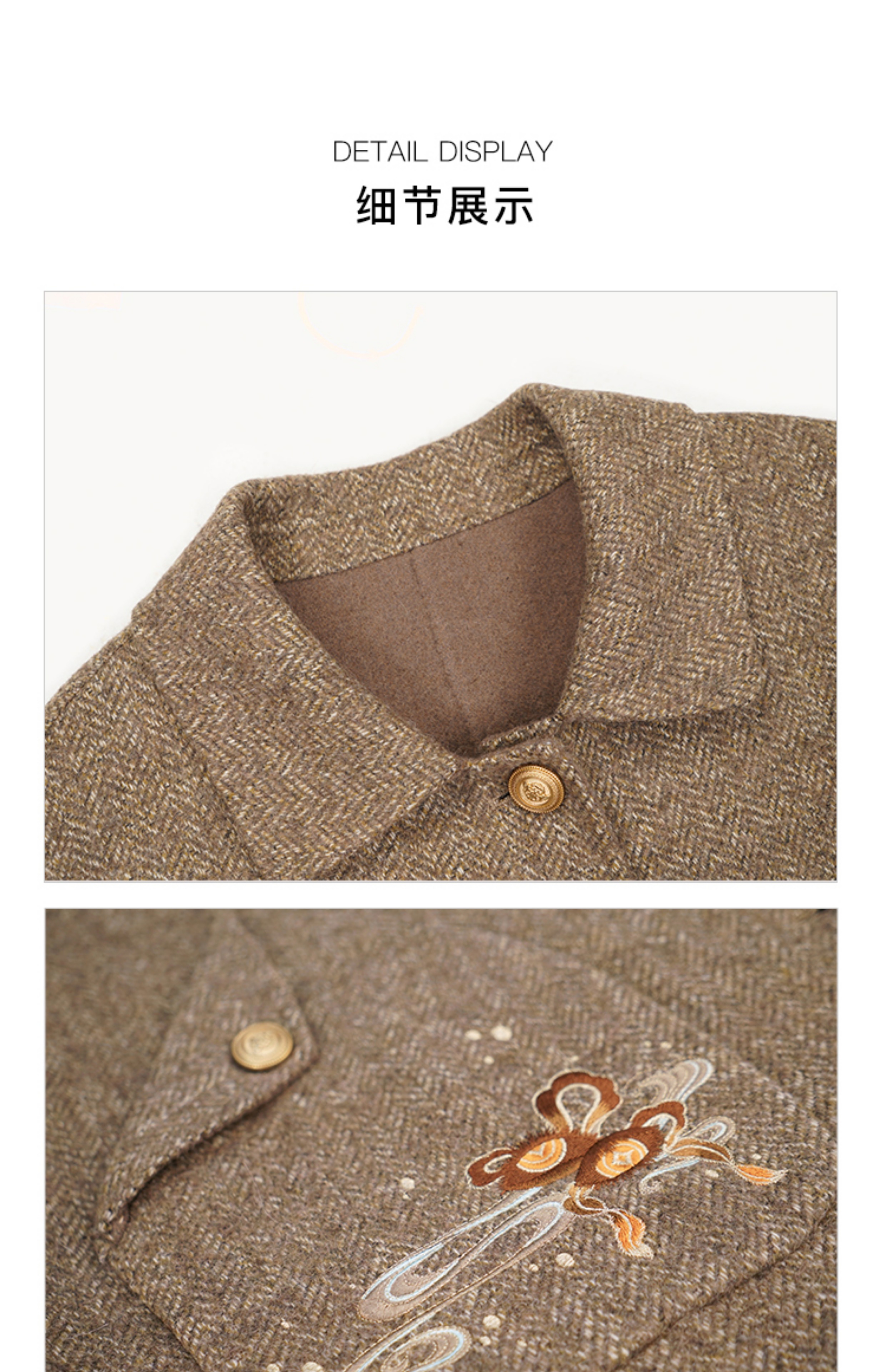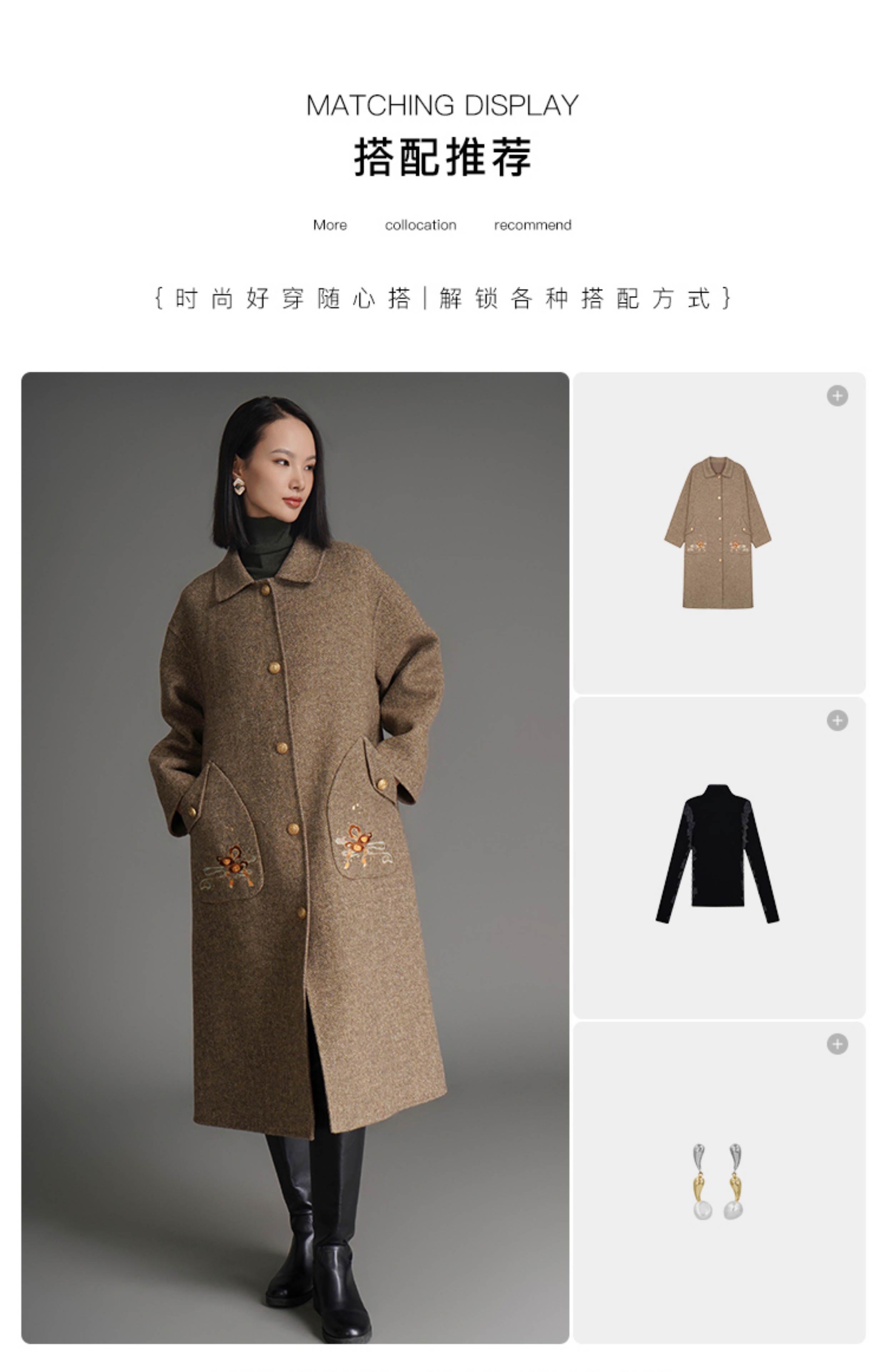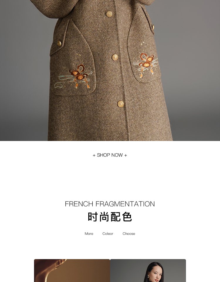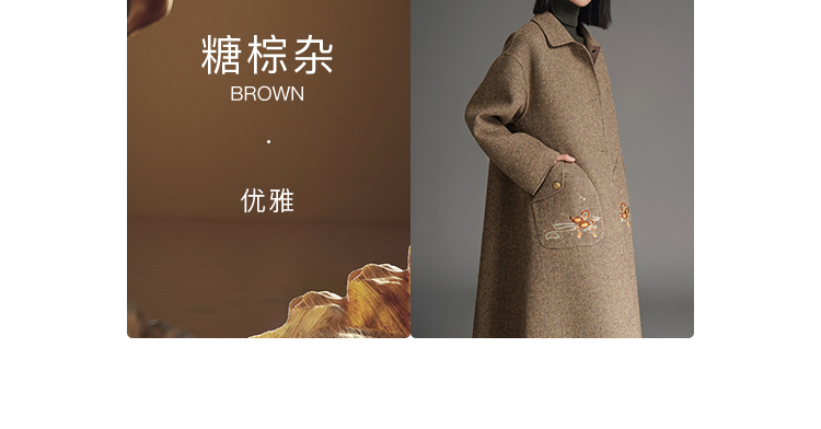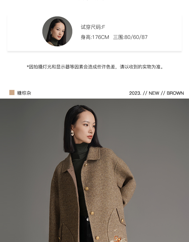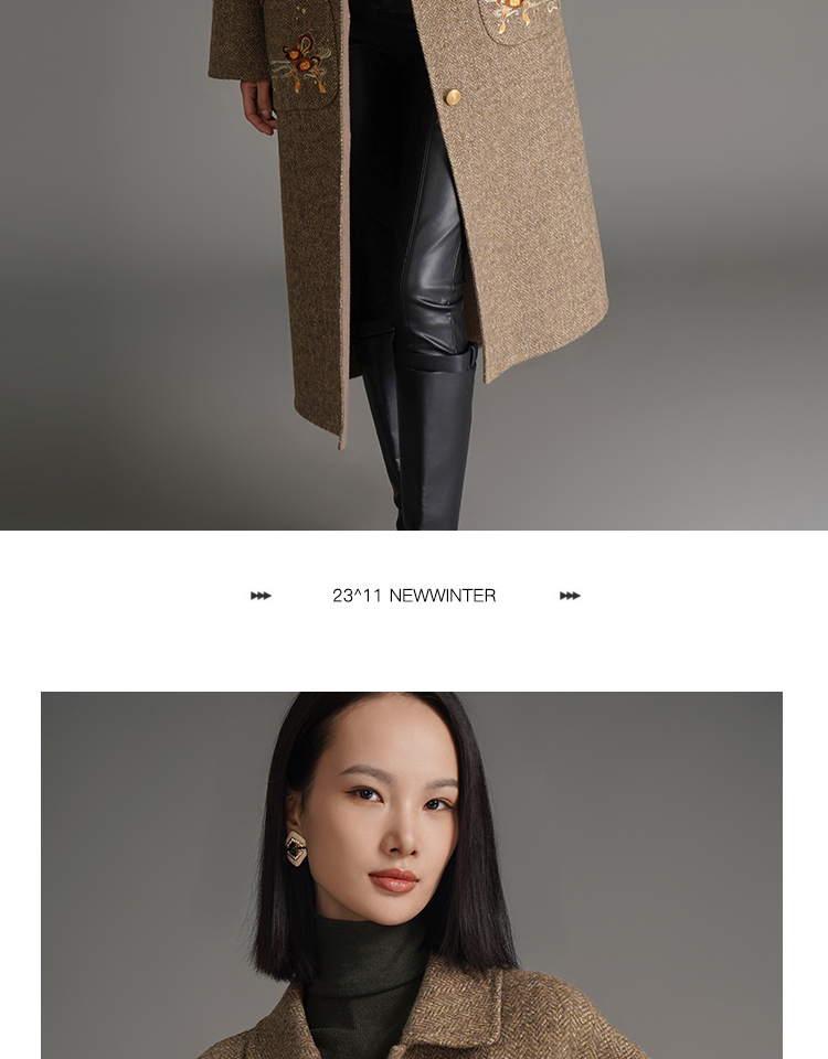 RSG郭培成衣品牌钱眼子祥云飘带刺绣贴袋美拉德色双面呢大衣