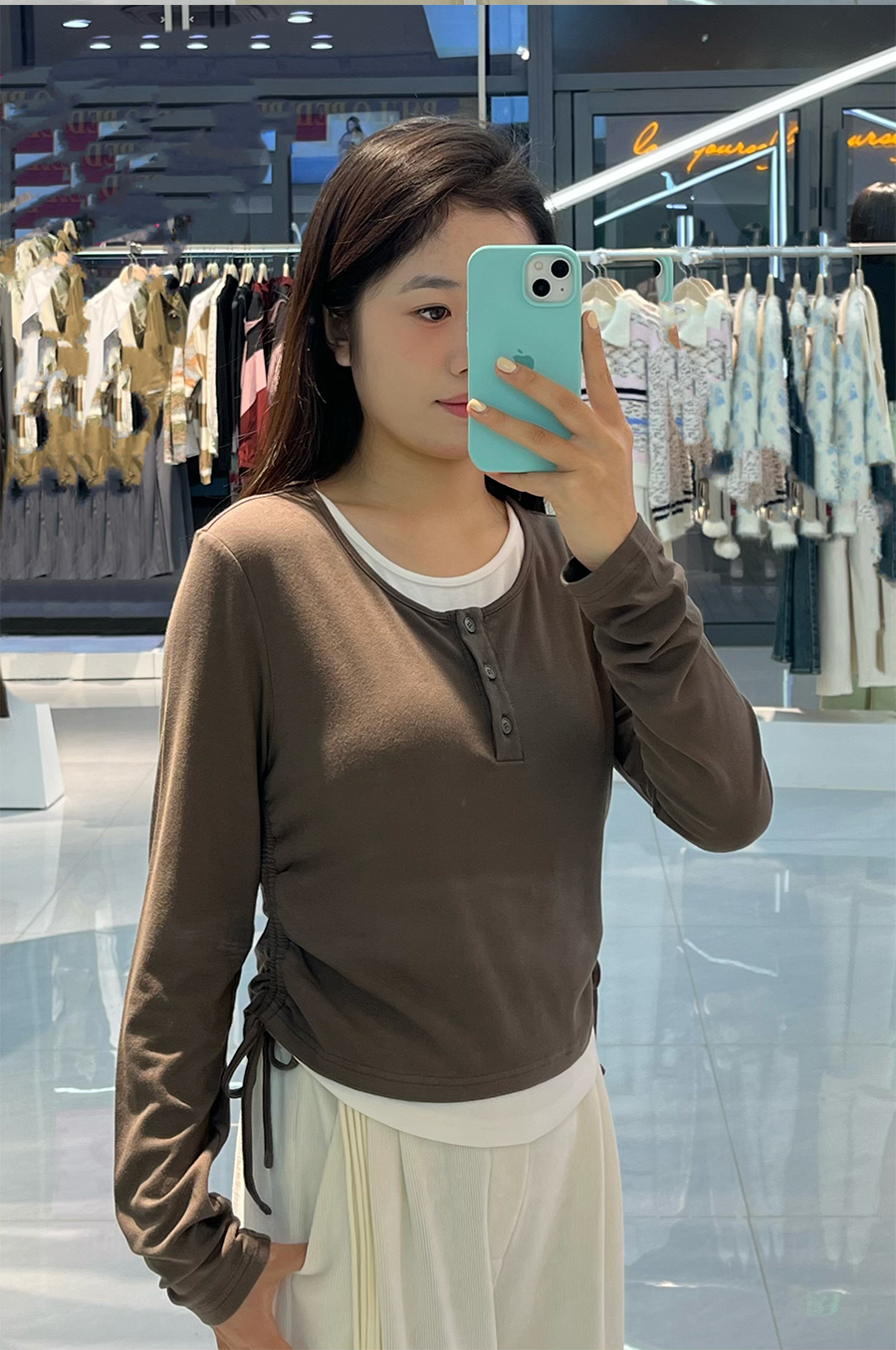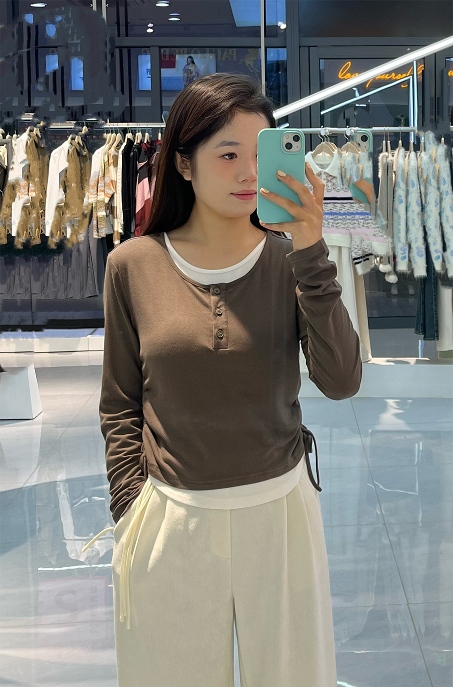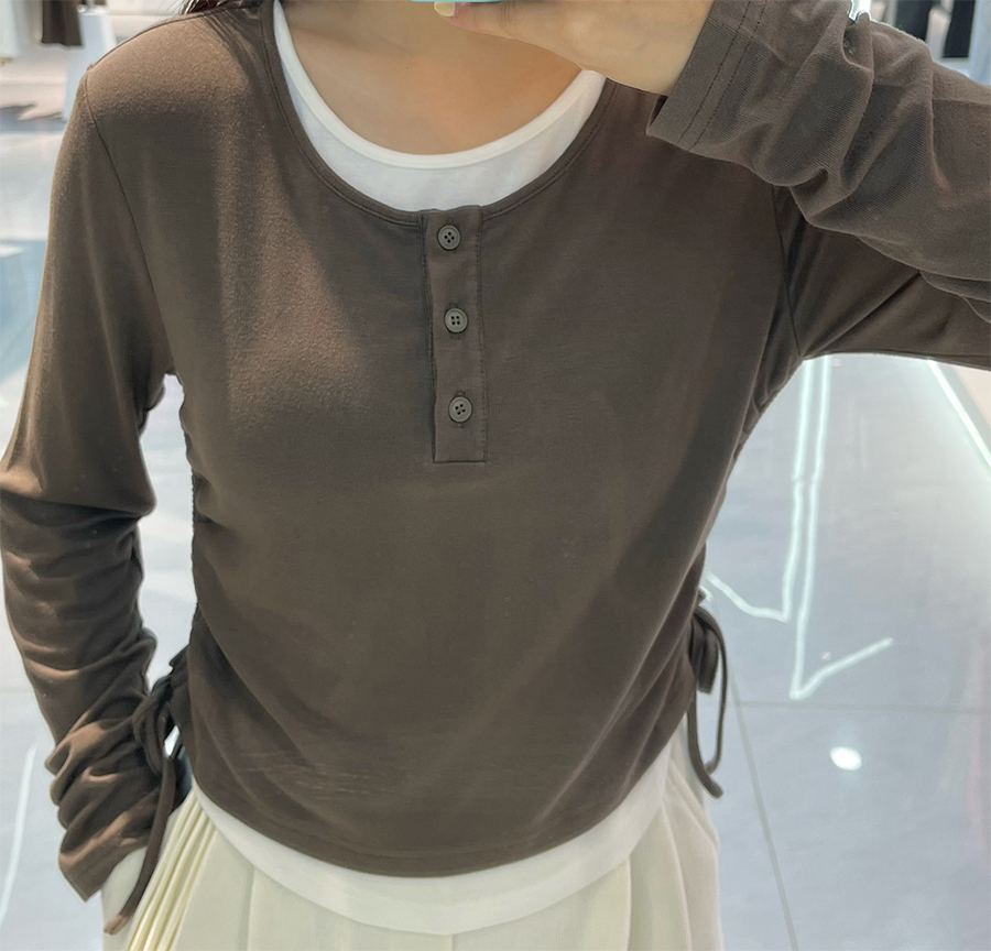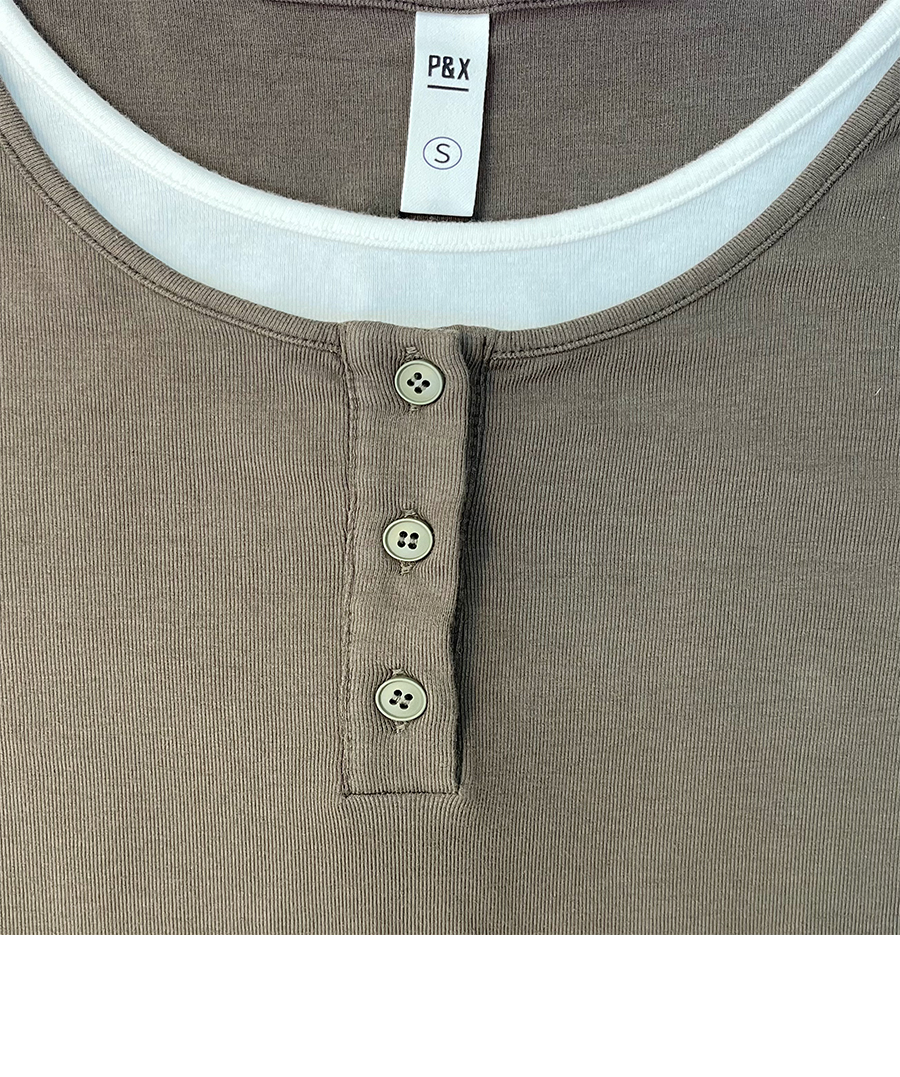 P&X设计师女装秋季长袖打底假两件短款T恤 824302190 绿色