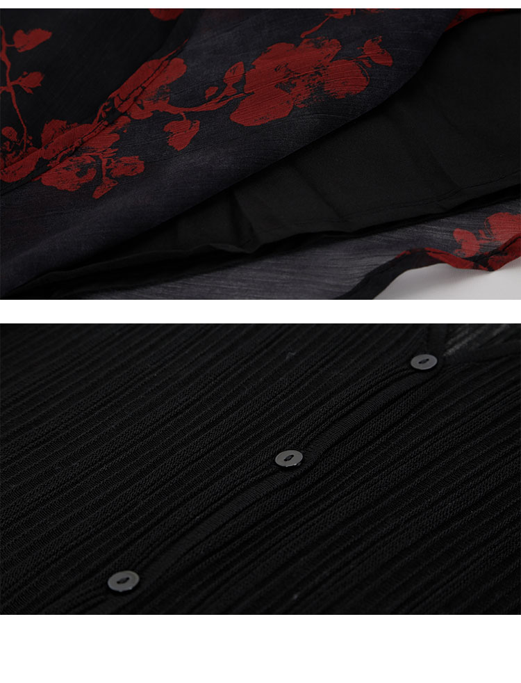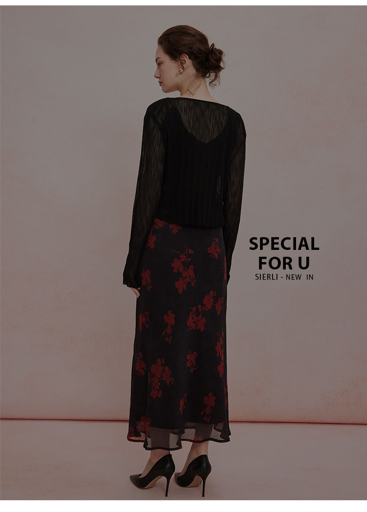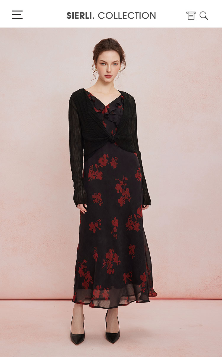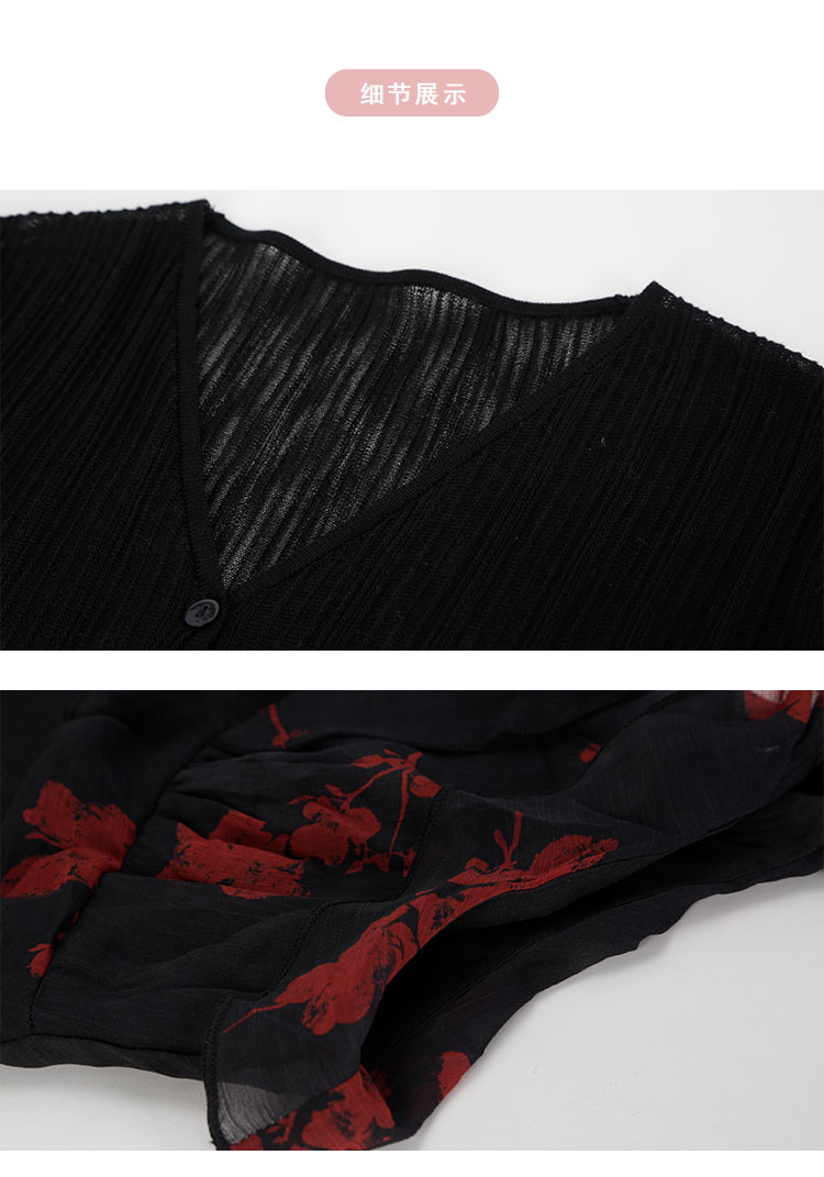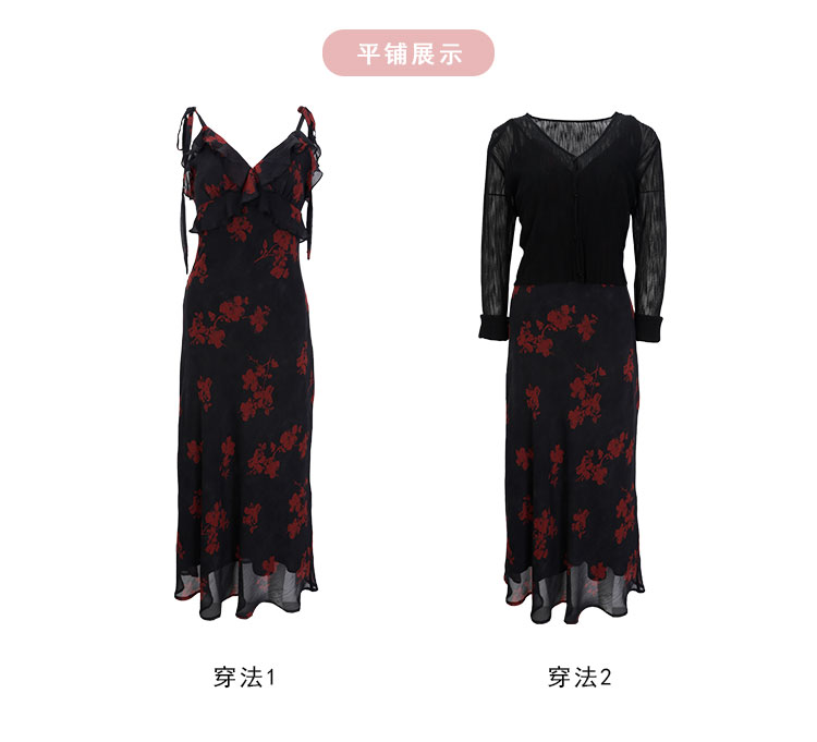 QF875斯尔丽25夏季新款法式浪漫碎花荷叶边裙搭配针织外披连衣裙套装