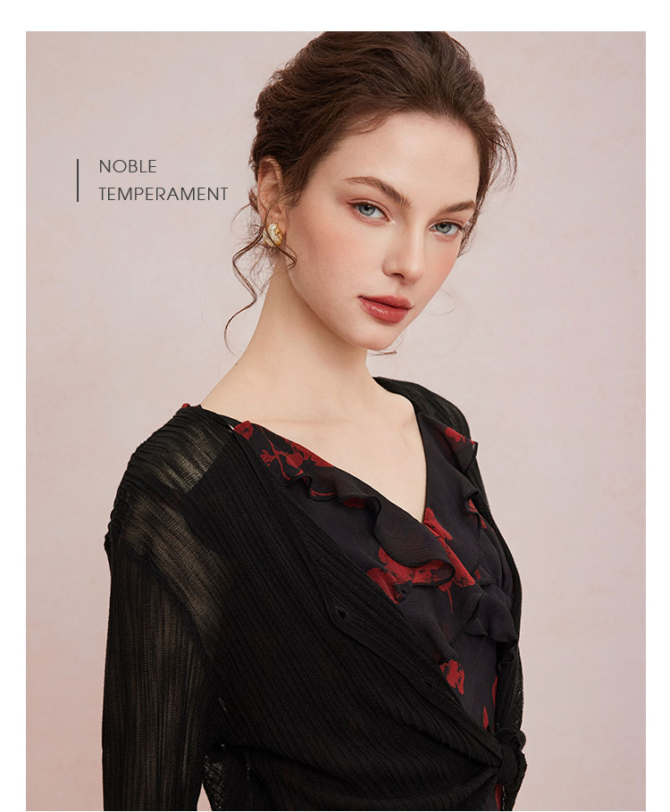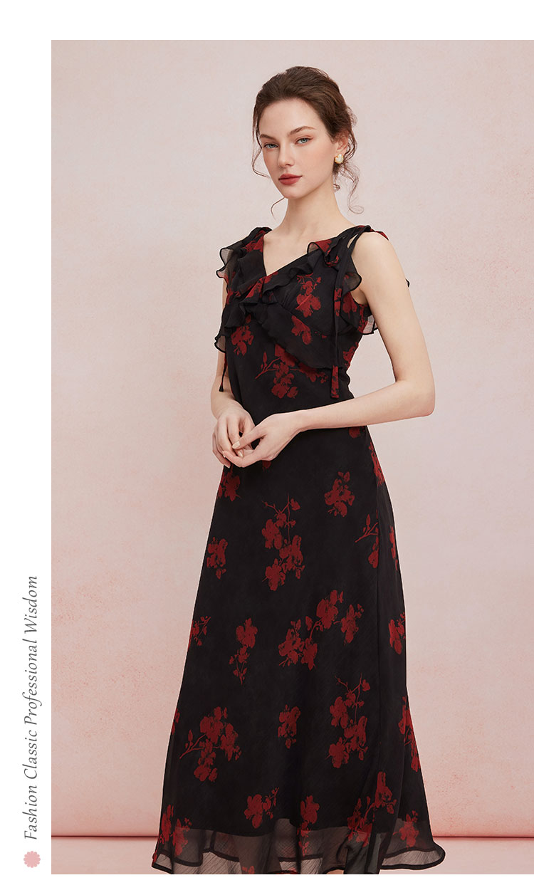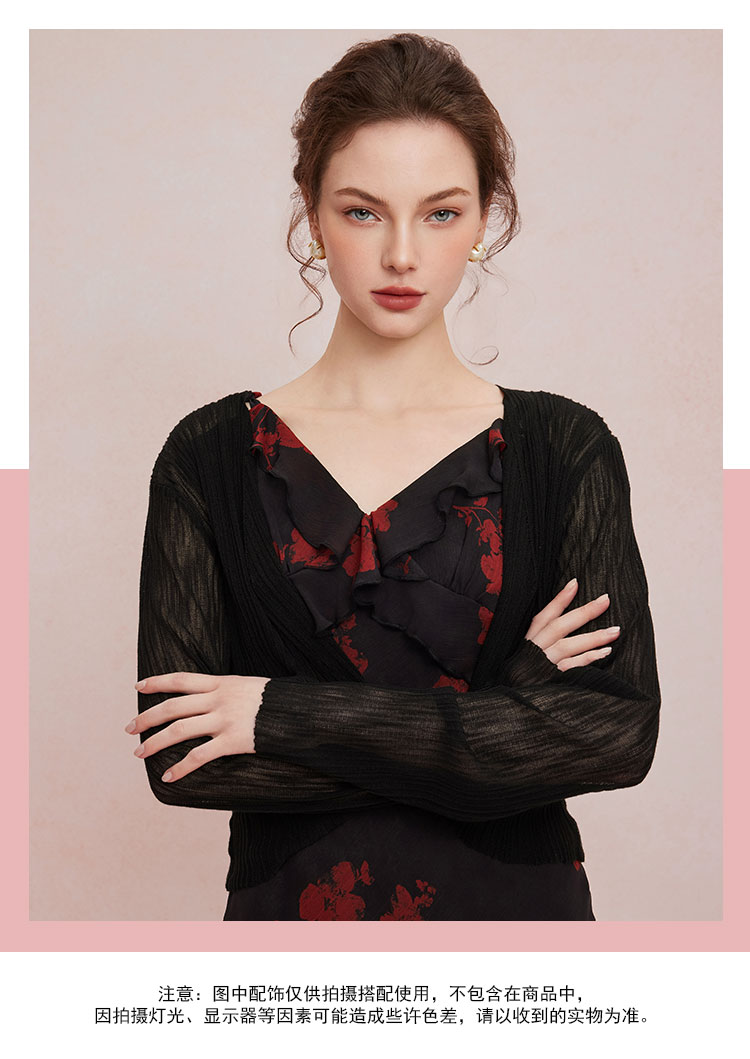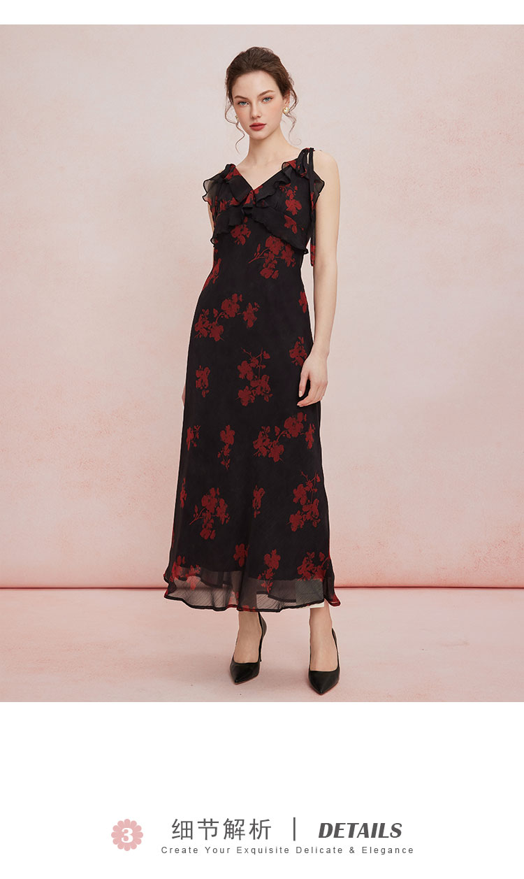 QF875斯尔丽25夏季新款法式浪漫碎花荷叶边裙搭配针织外披连衣裙套装