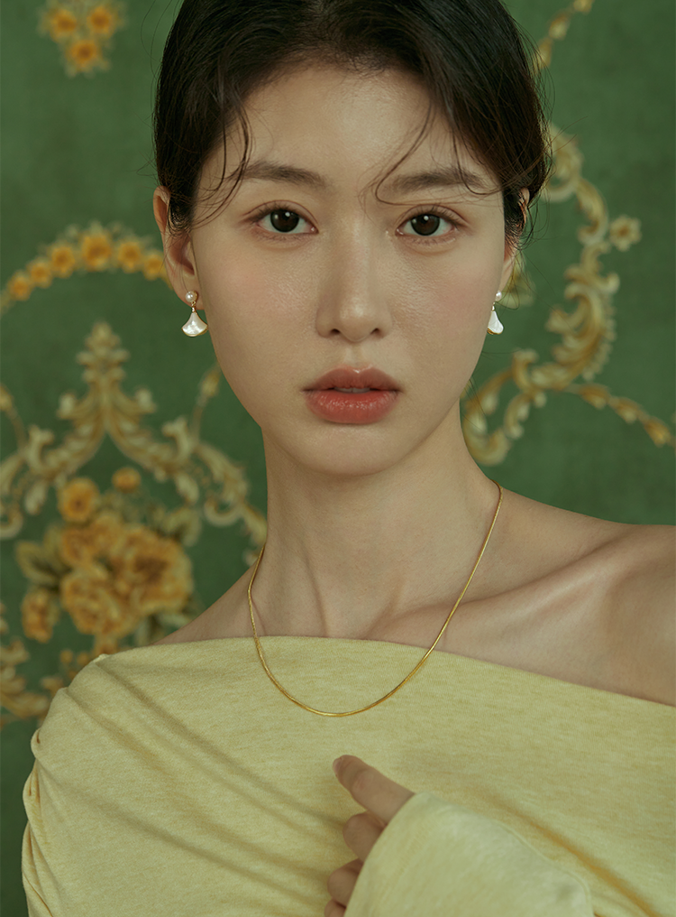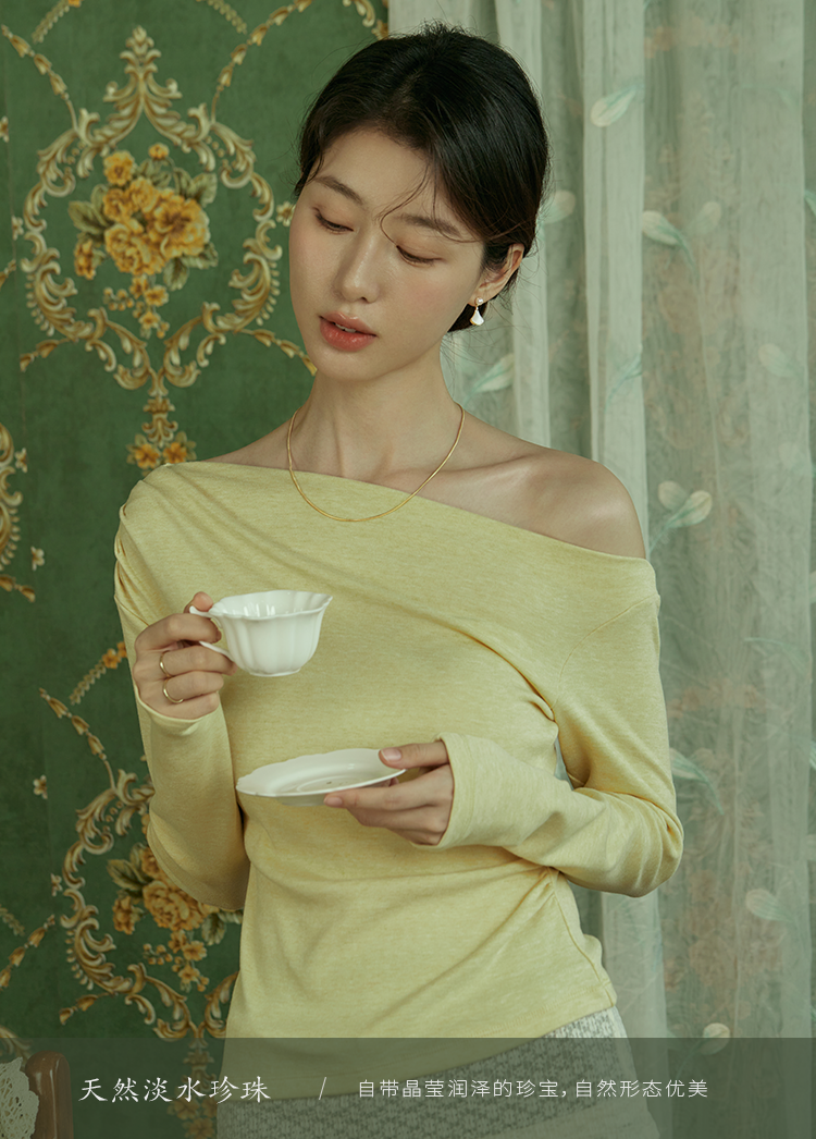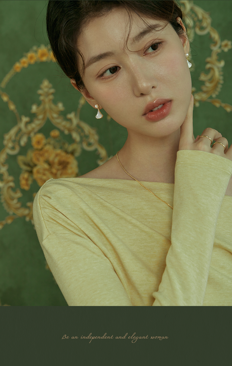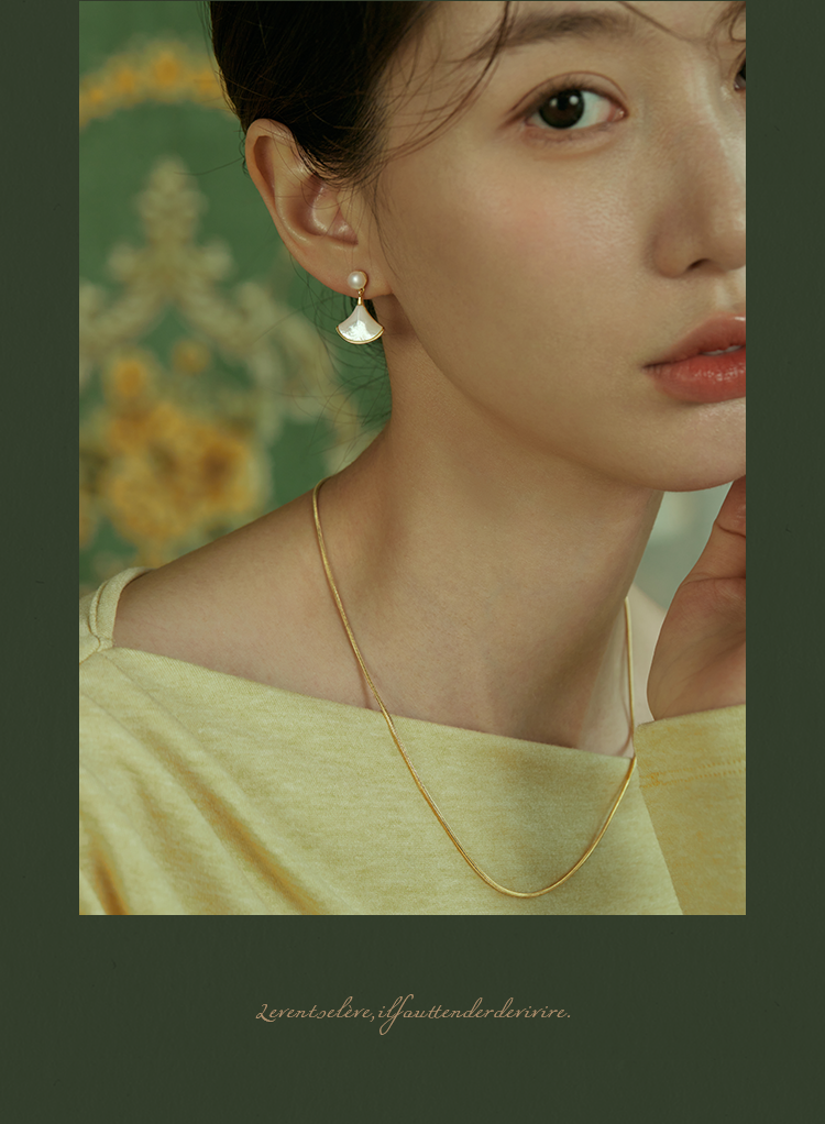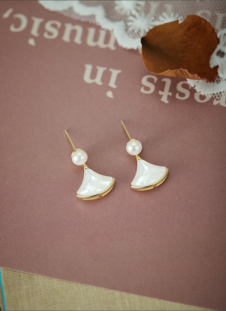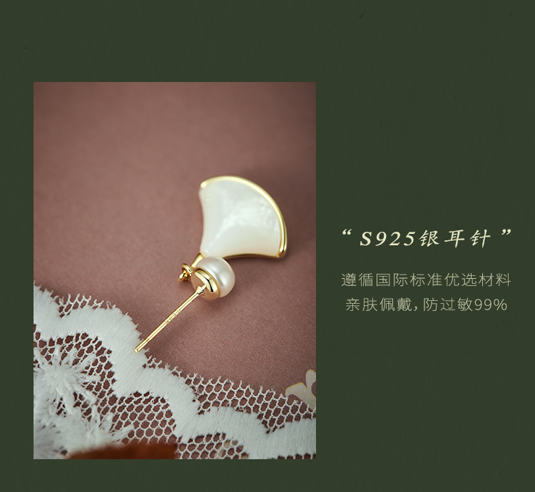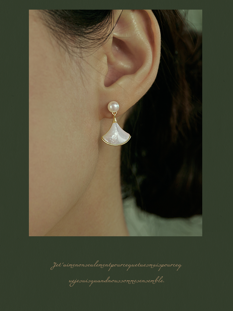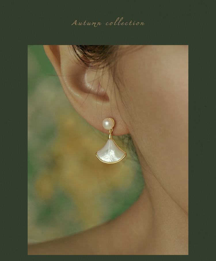 Oflye潮流饰品 淡水珍珠法式简约精致扇形贝壳银针耳钉新款耳环女秋冬甜美珍珠耳饰