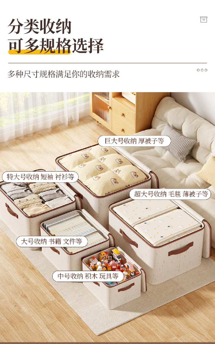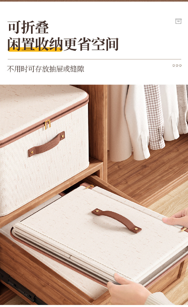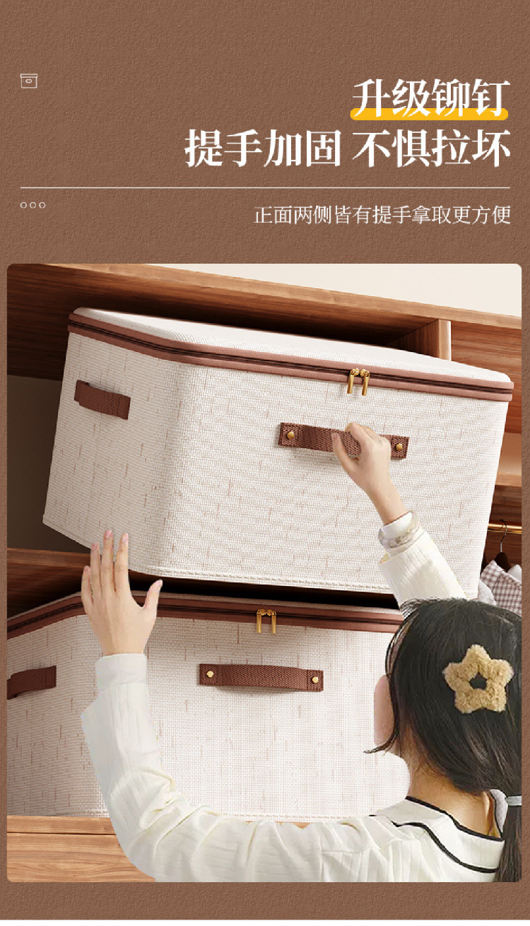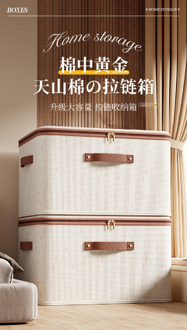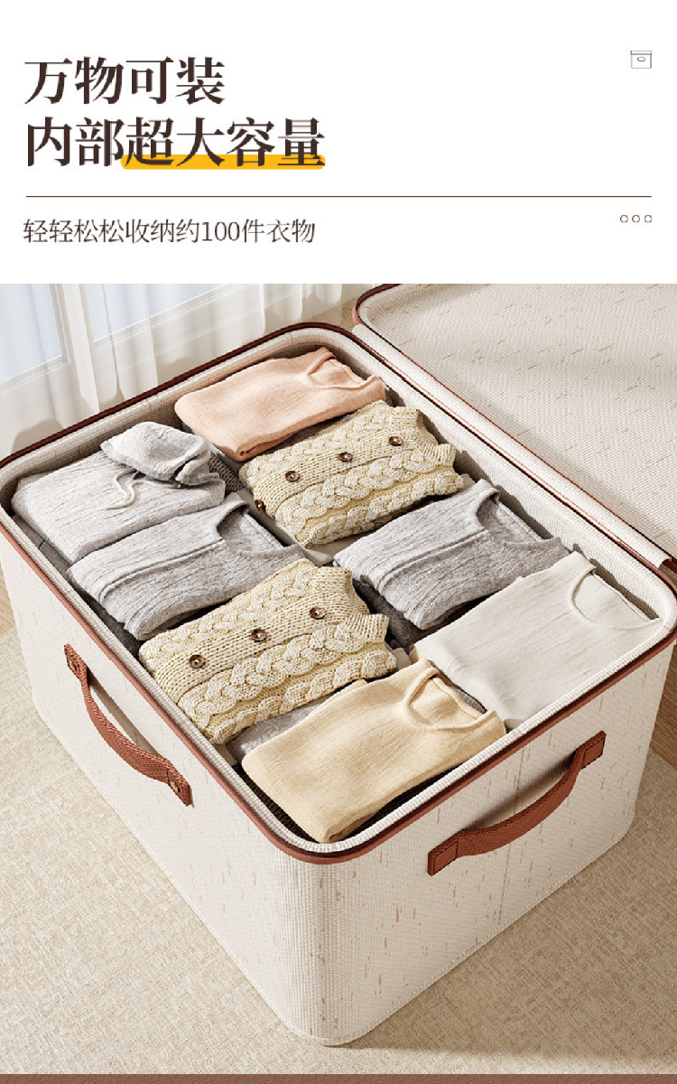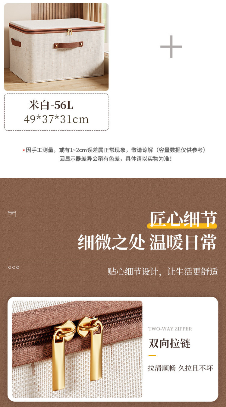 天山棉麻拉链收纳箱带盖衣物家用卧室收纳箱大容量杂物整理箱