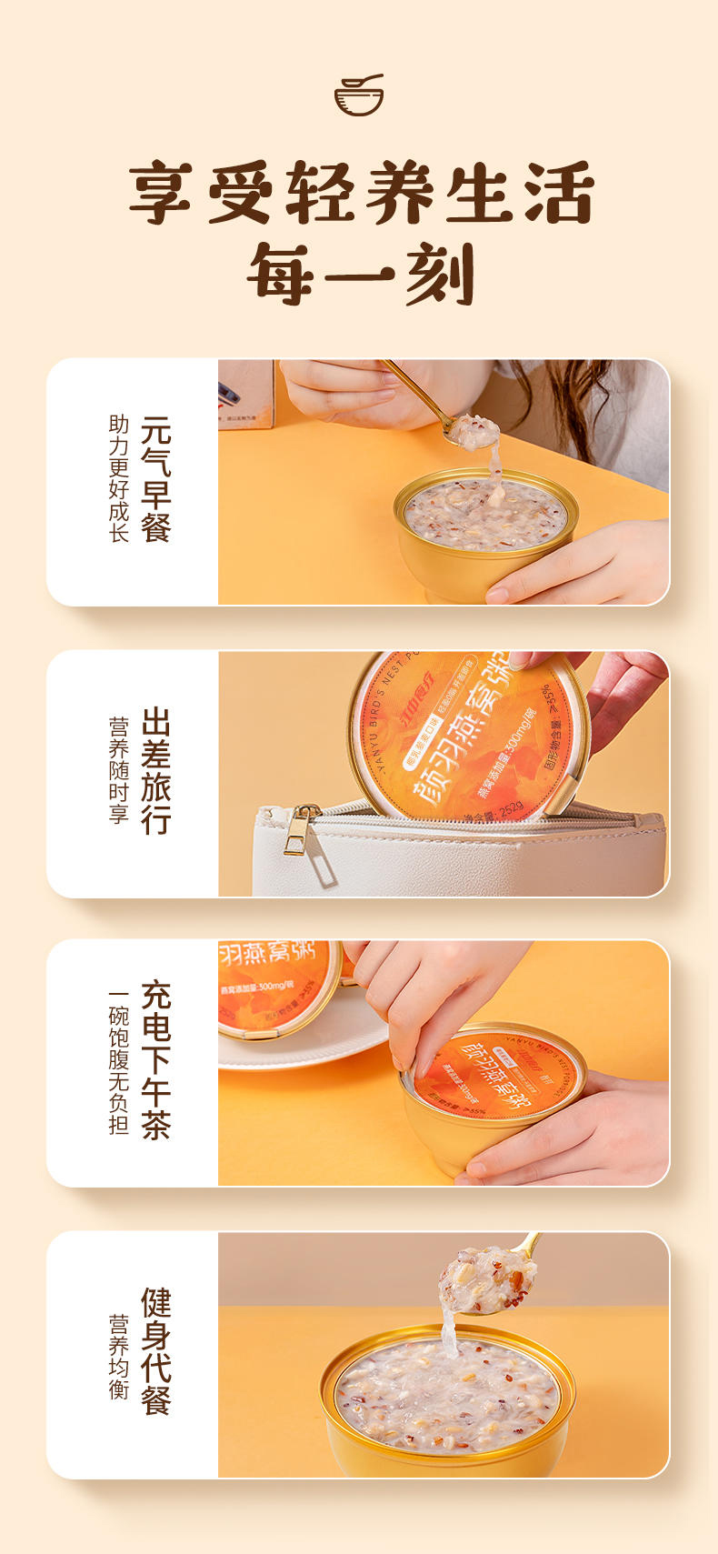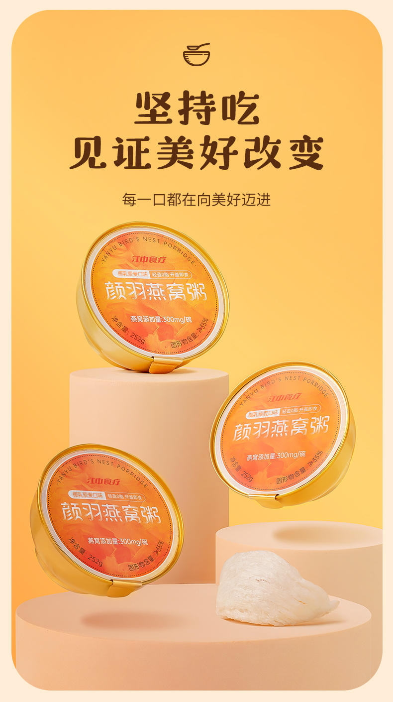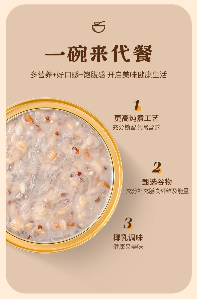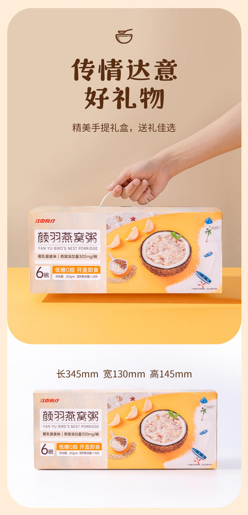 【燕窝粥】江中食疗 厚椰乳藜麦燕窝粥 252g*6碗 燕窝含量300mg/碗 多重膳食纤维|胶原蛋白 开盖即食「可用充值」生产日期2026年1月 保质期18个月