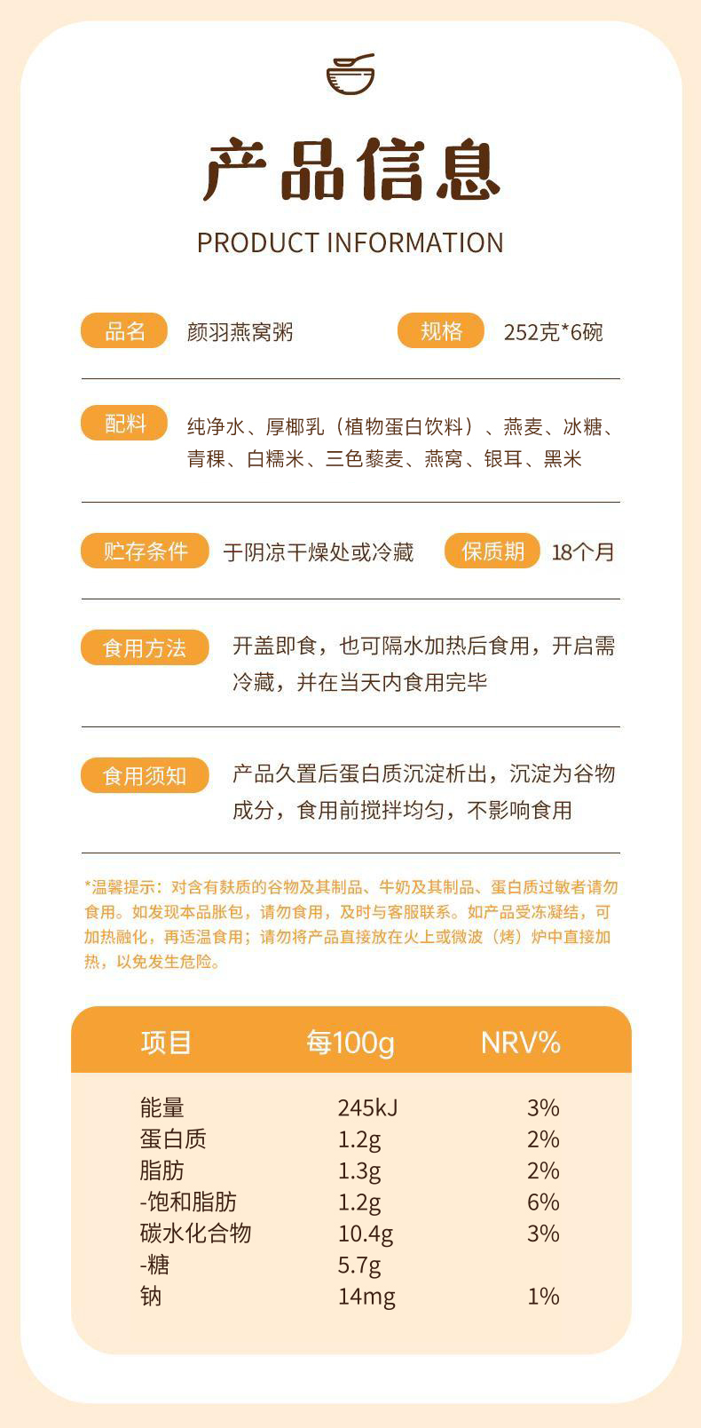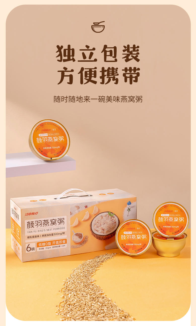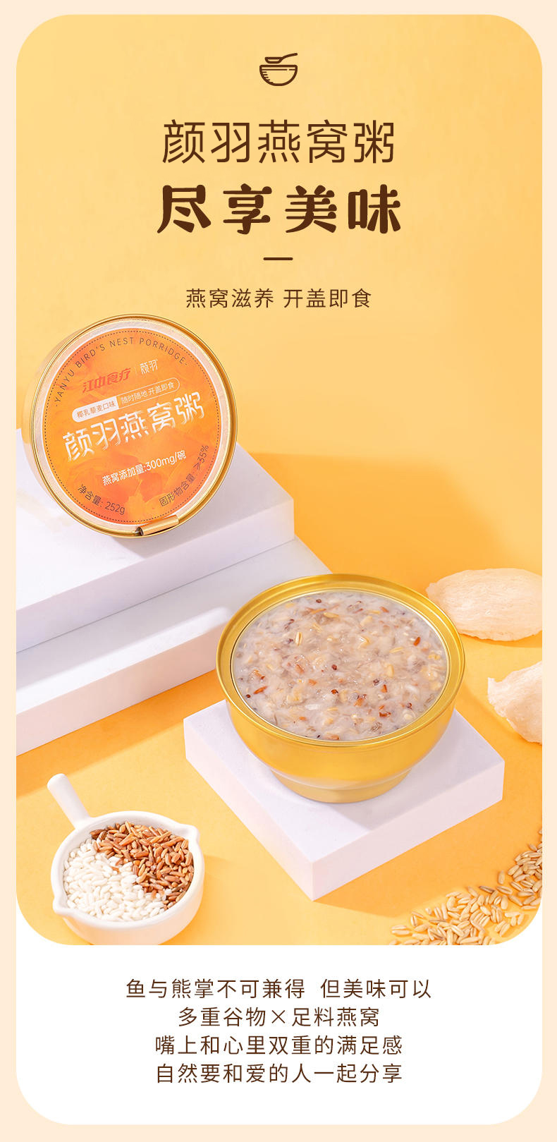 【燕窝粥】江中食疗 厚椰乳藜麦燕窝粥 252g*6碗 燕窝含量300mg/碗 多重膳食纤维|胶原蛋白 开盖即食「可用充值」生产日期2026年1月 保质期18个月