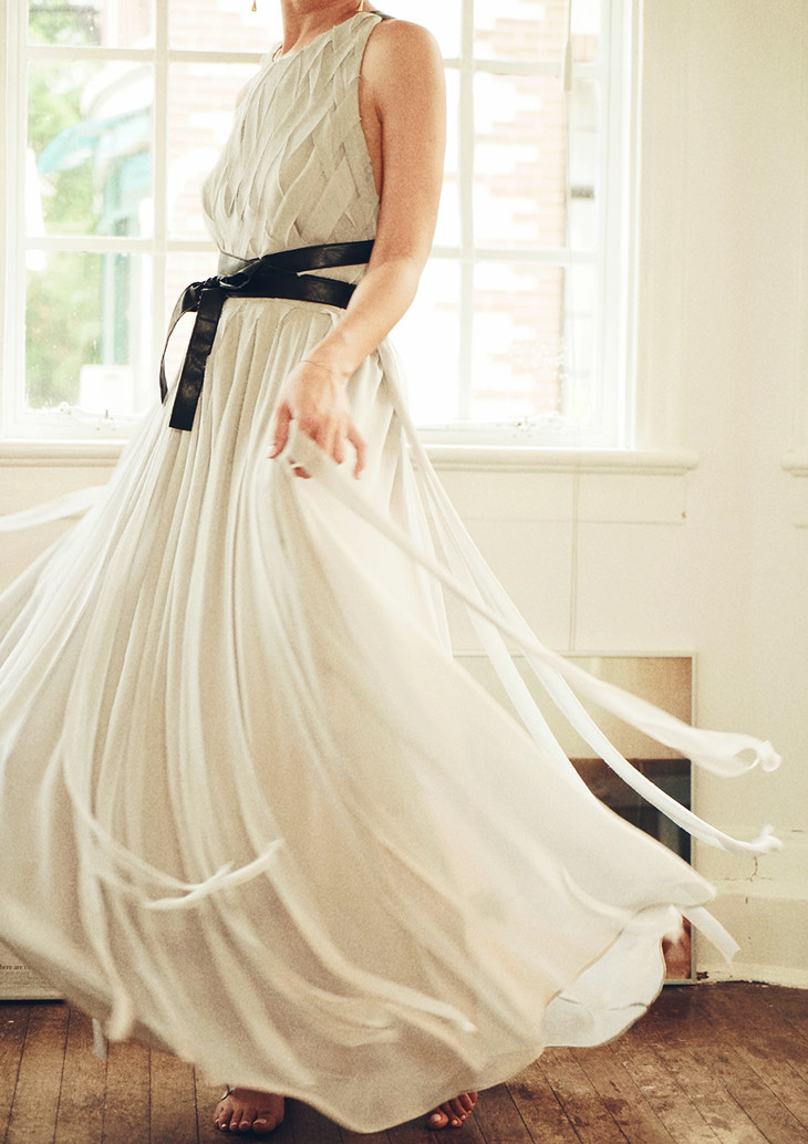 AtelierMissLu / Xanthe 浅灰编织露背长礼服裙