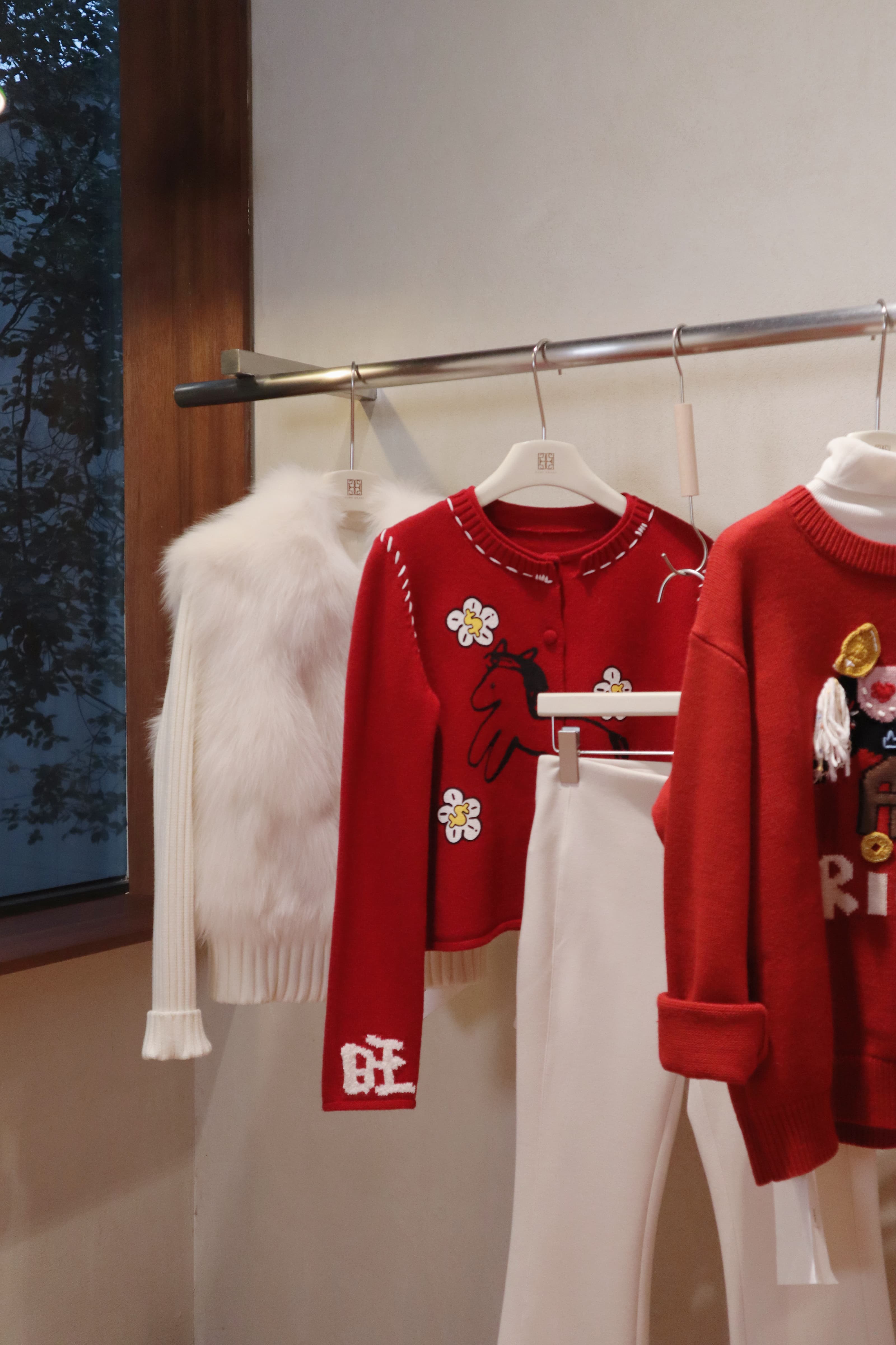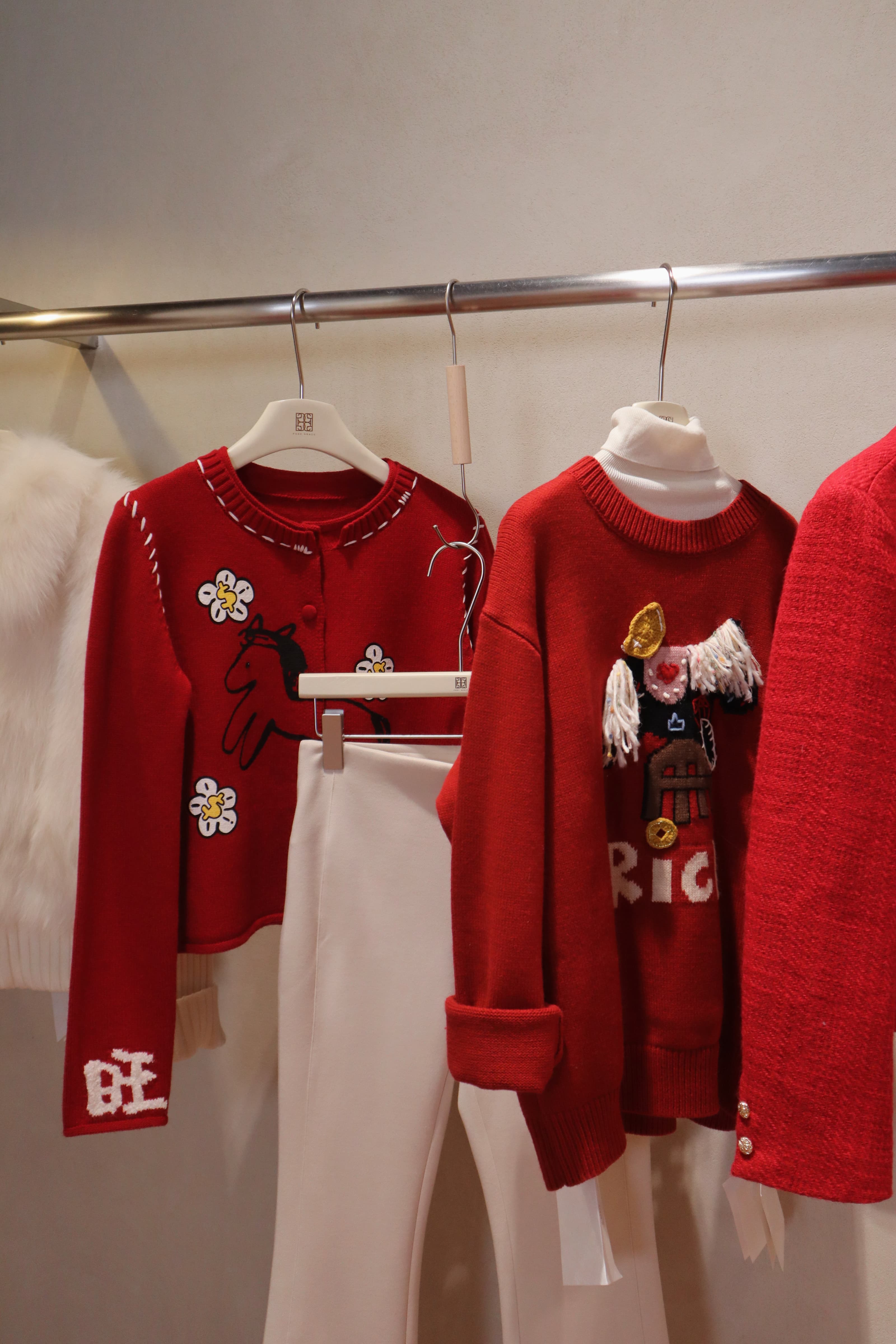 PIANAI冷小姐# 马上有钱花红色小马套头红色毛衣