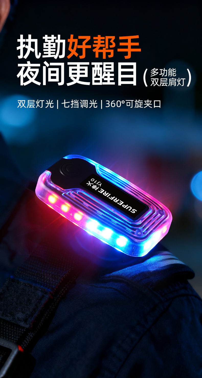 神火YJ10多功能双层肩灯充电长续航可旋转警示灯巡逻环卫作业照明灯