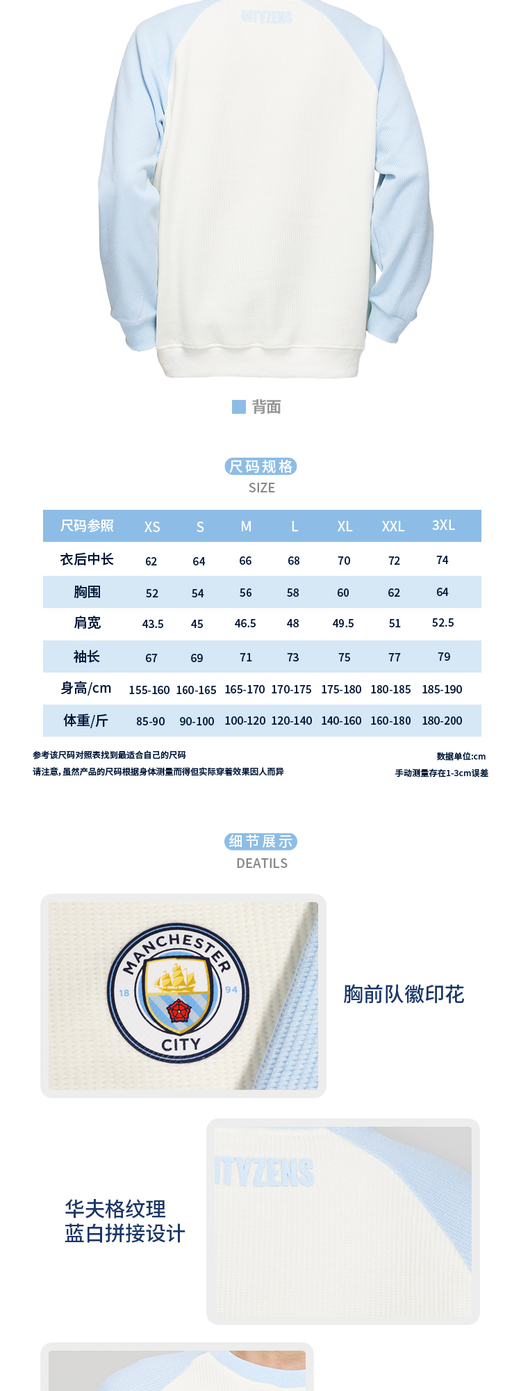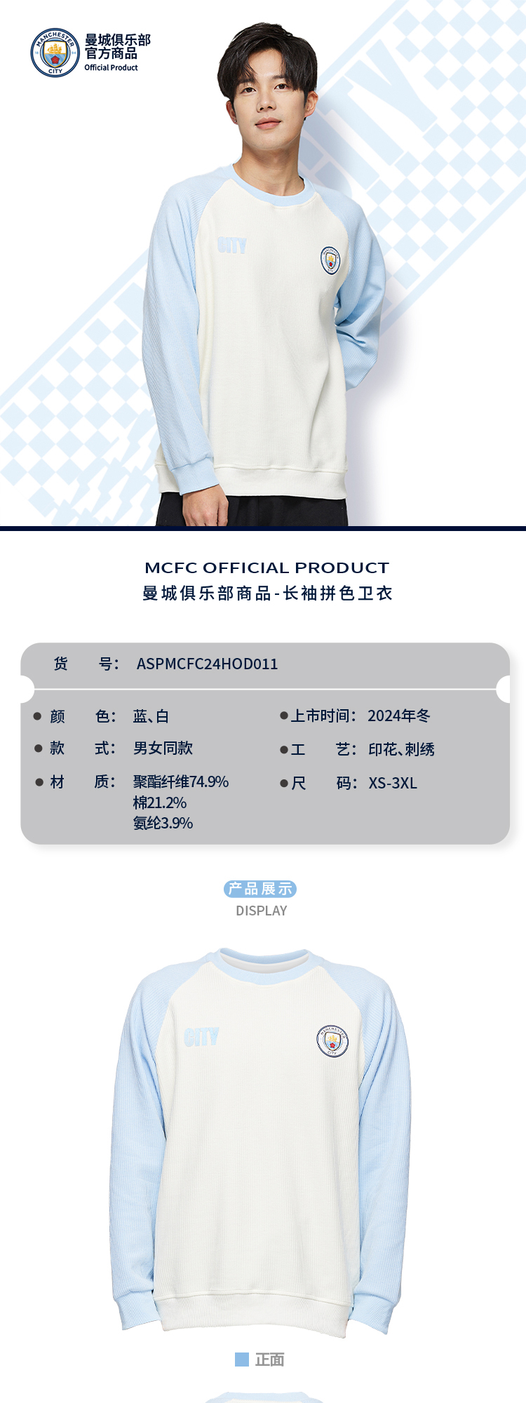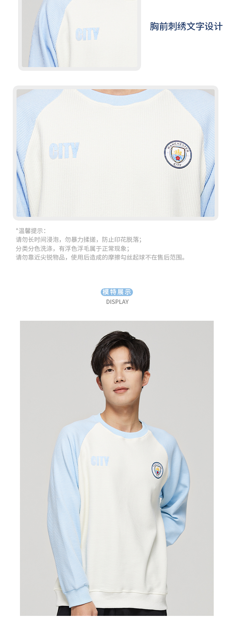 【官方正版】曼城俱乐部 | 长袖拼色卫衣足球迷运动长球套头衫