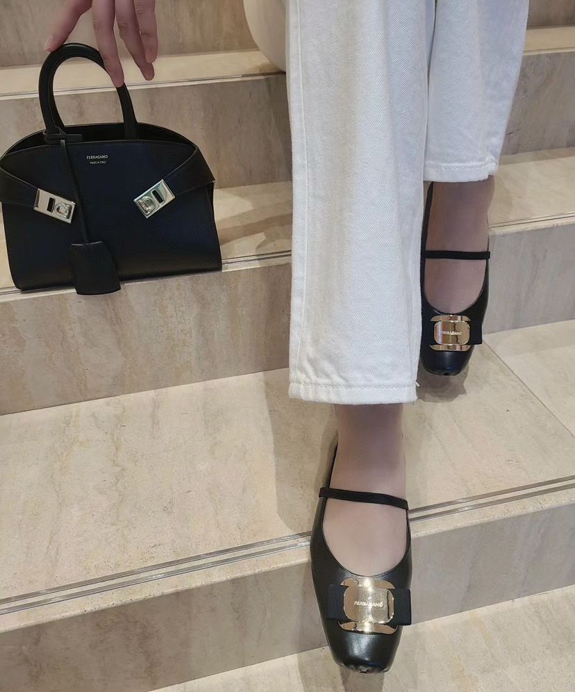 522-3 免带品 鸡毛经典爆款 vara猪鼻子蝴蝶结芭蕾鞋 玛丽珍全皮平底鞋