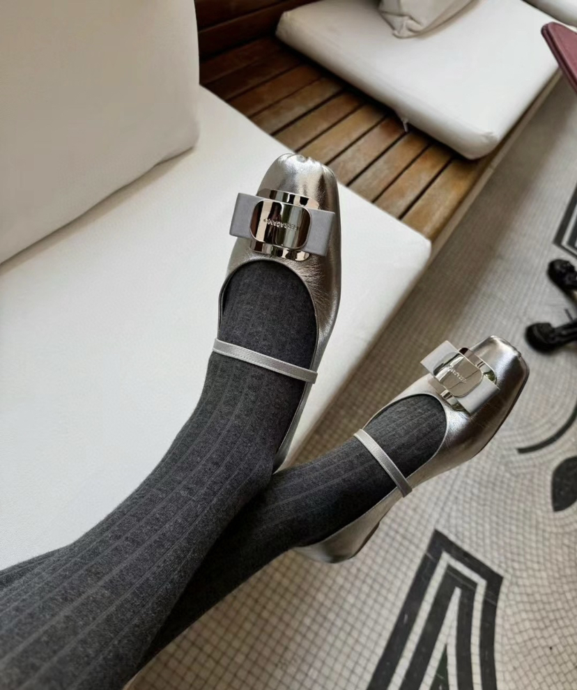 银色更是一鞋难求,十分火爆。鞋面进口山羊皮,内里水染羊皮,猪鼻子鞋头,手工攀楦,保证脚趾头的舒适。小羊皮的篇幅不大,这个鞋面用整张山羊皮制作,特别耗费材料。壁虎一样防滑耐磨的橡胶底,鞋底有齿痕有logo,能暴走能小跑,优雅随性,搭配裙装裤装都合适。