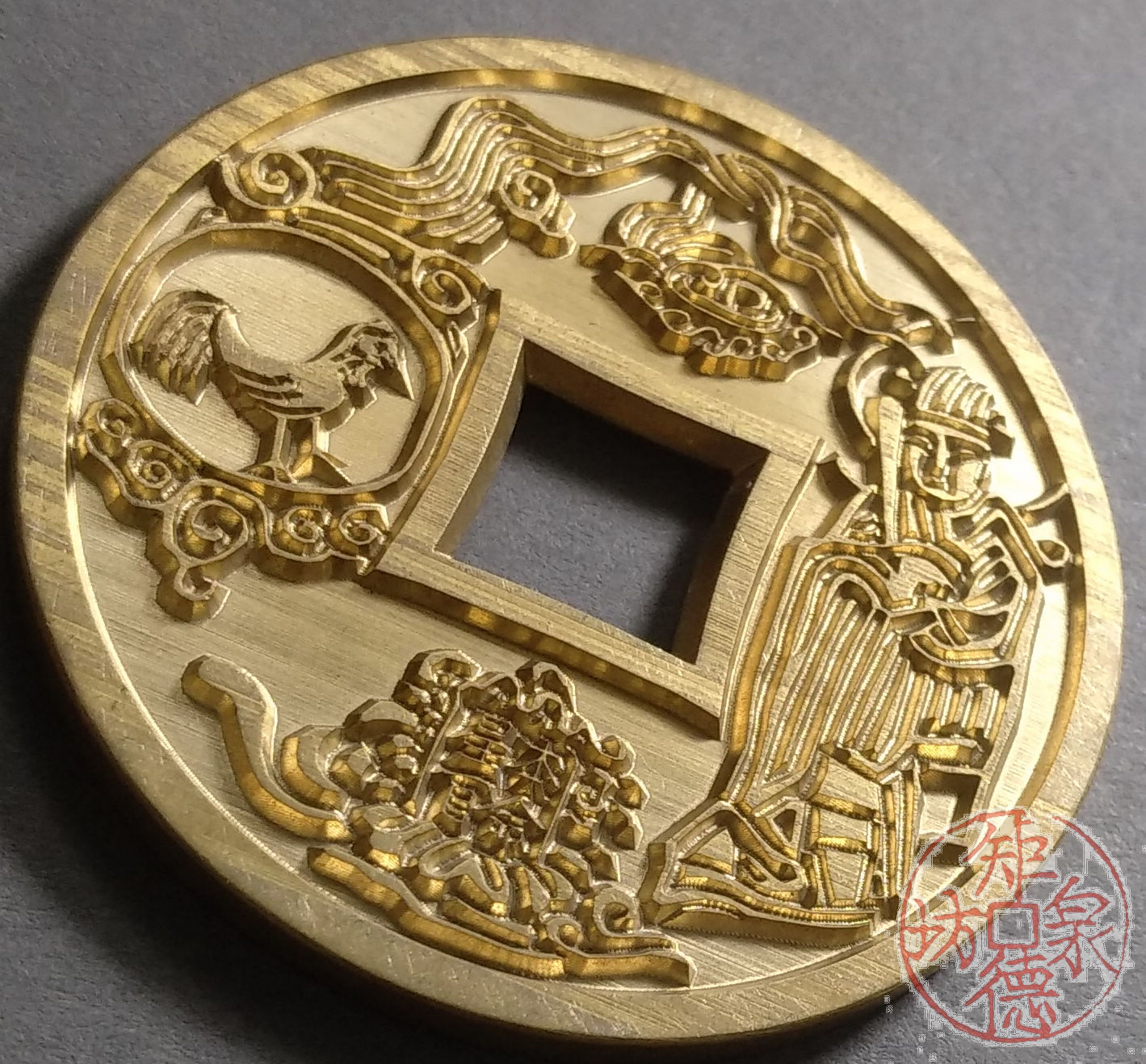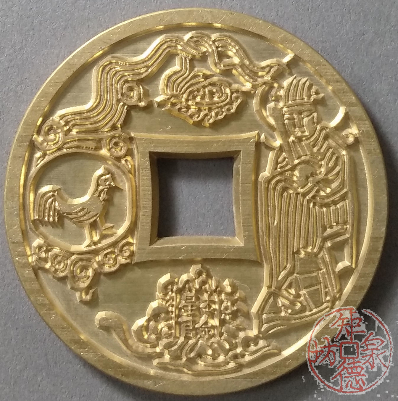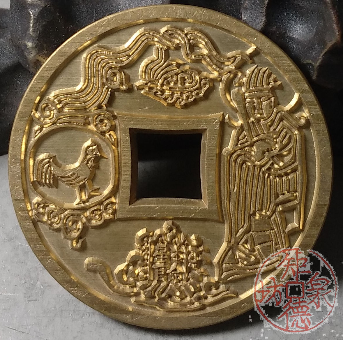 古泉书馆文创 十二生肖花钱 鸡 雕母 文房铜镇 DH0019