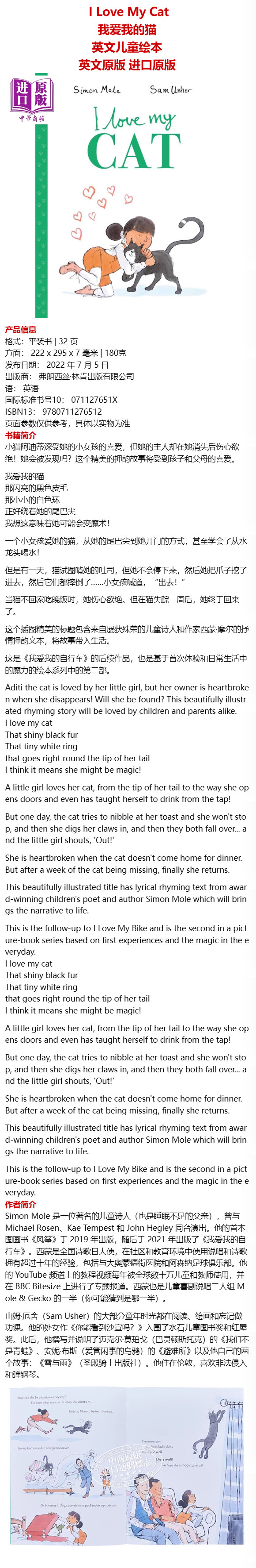 【中商原版】Sam Usher 英文绘本2册 I Love My Bike 我爱我的自行车 I Love My Cat 我爱我的猫
