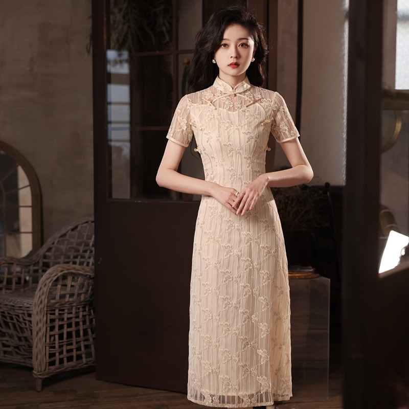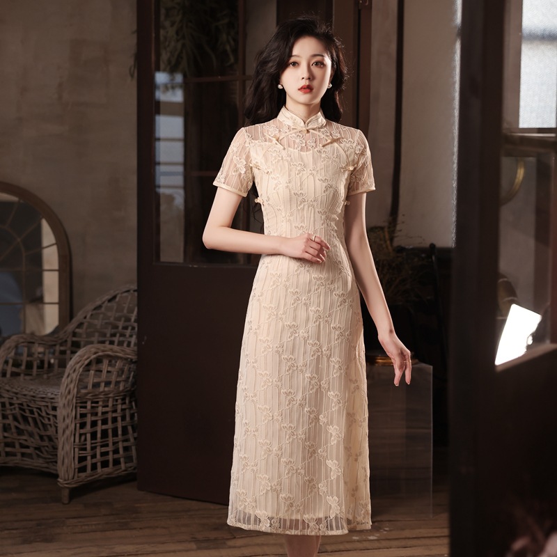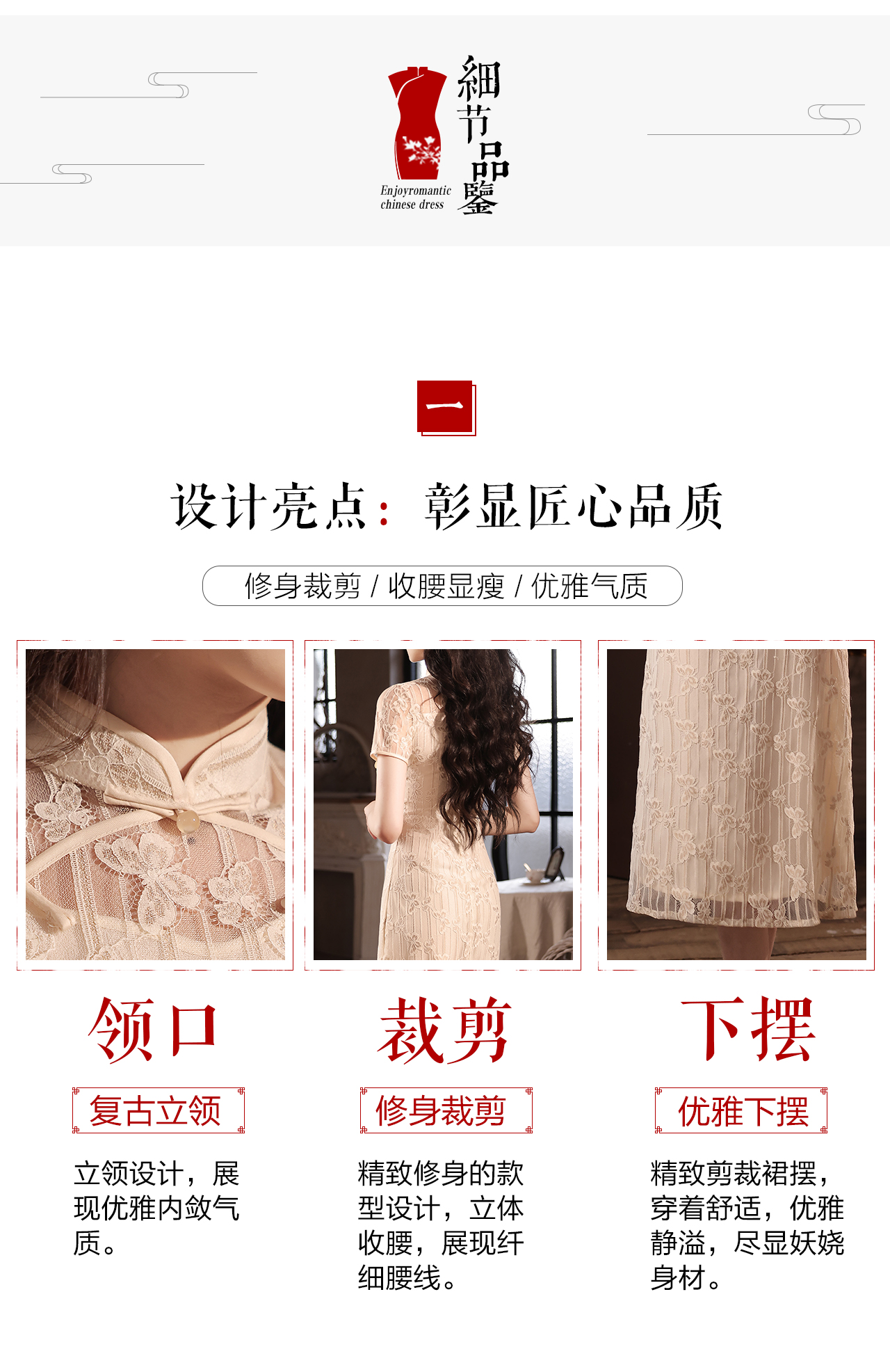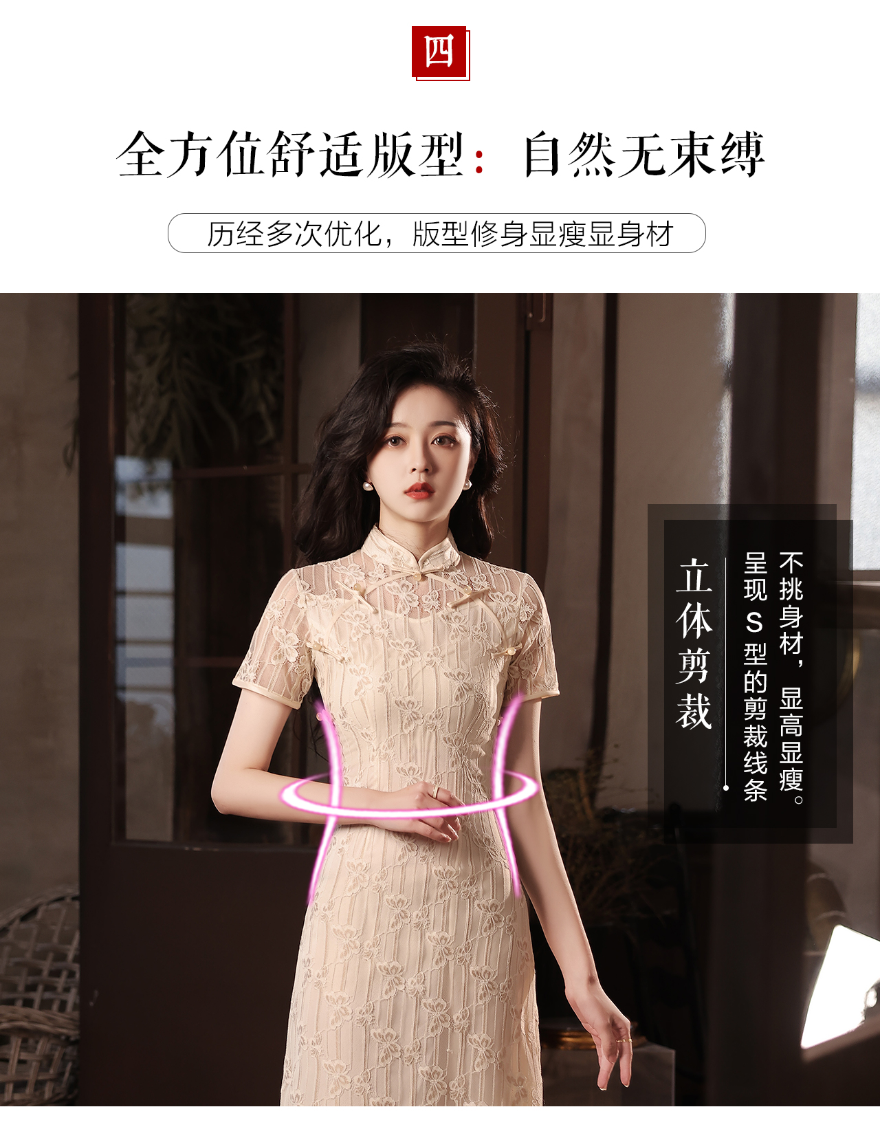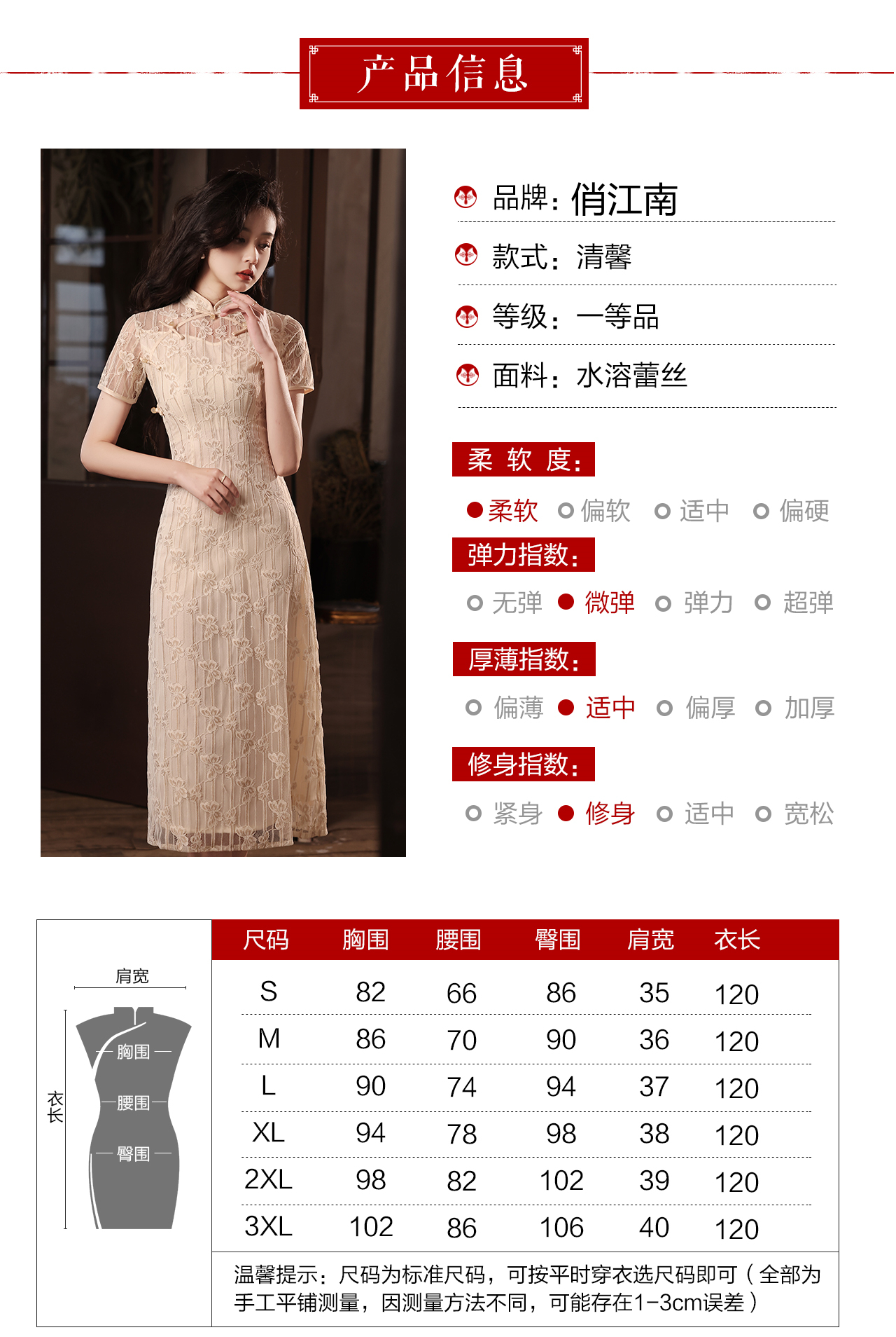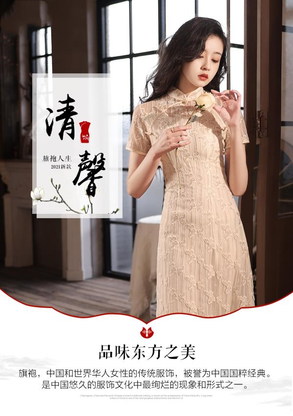 【清馨】高档水溶蕾丝面料修身旗袍 YG2034