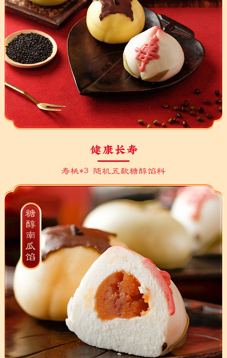 御茶膳房寿桃馒头吉祥果礼盒老人生日祝寿糕点点心回礼小寿包舌尖上的中国面果儿 吉祥果