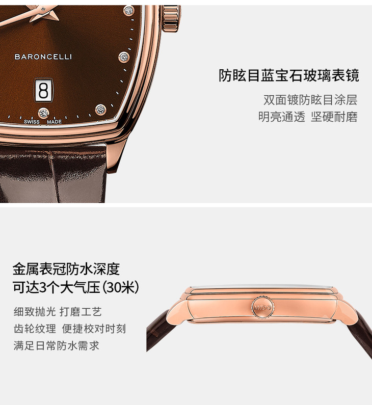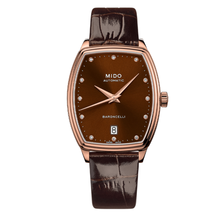 棕色酒桶型表盘,镶嵌12颗钻石(0.045克拉)时标