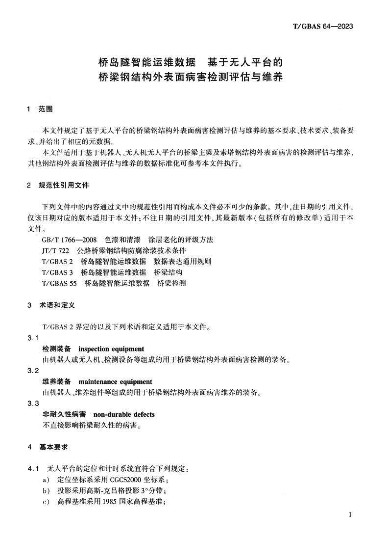 桥岛隧智能运维数据 基于无人平台的桥梁钢结构外表面病害检测评估与维养T/GBAS 64—2023