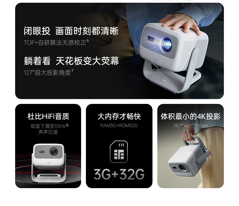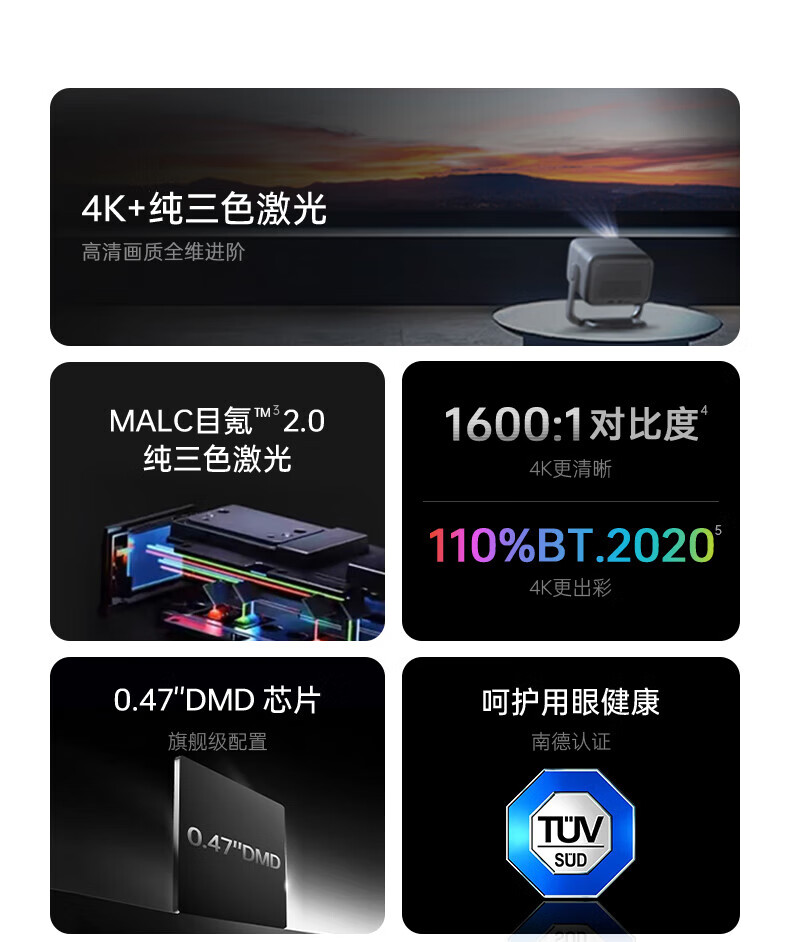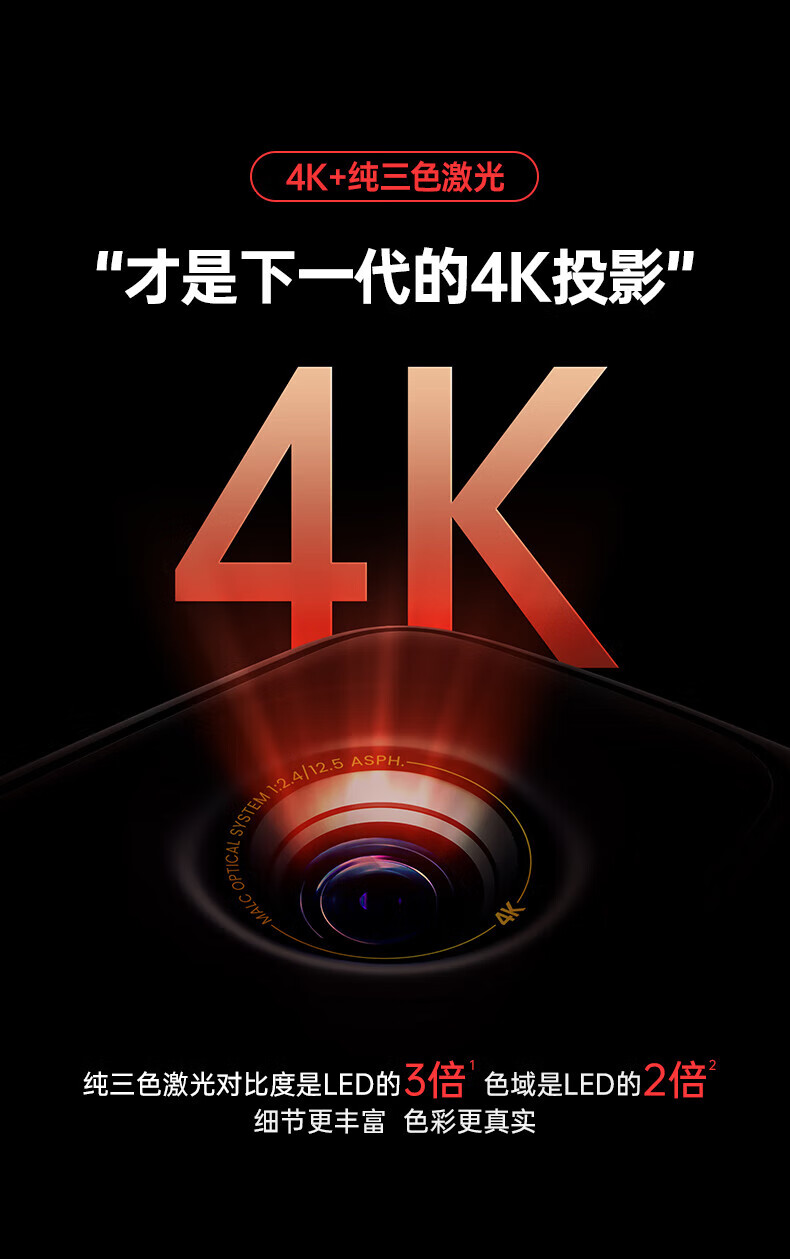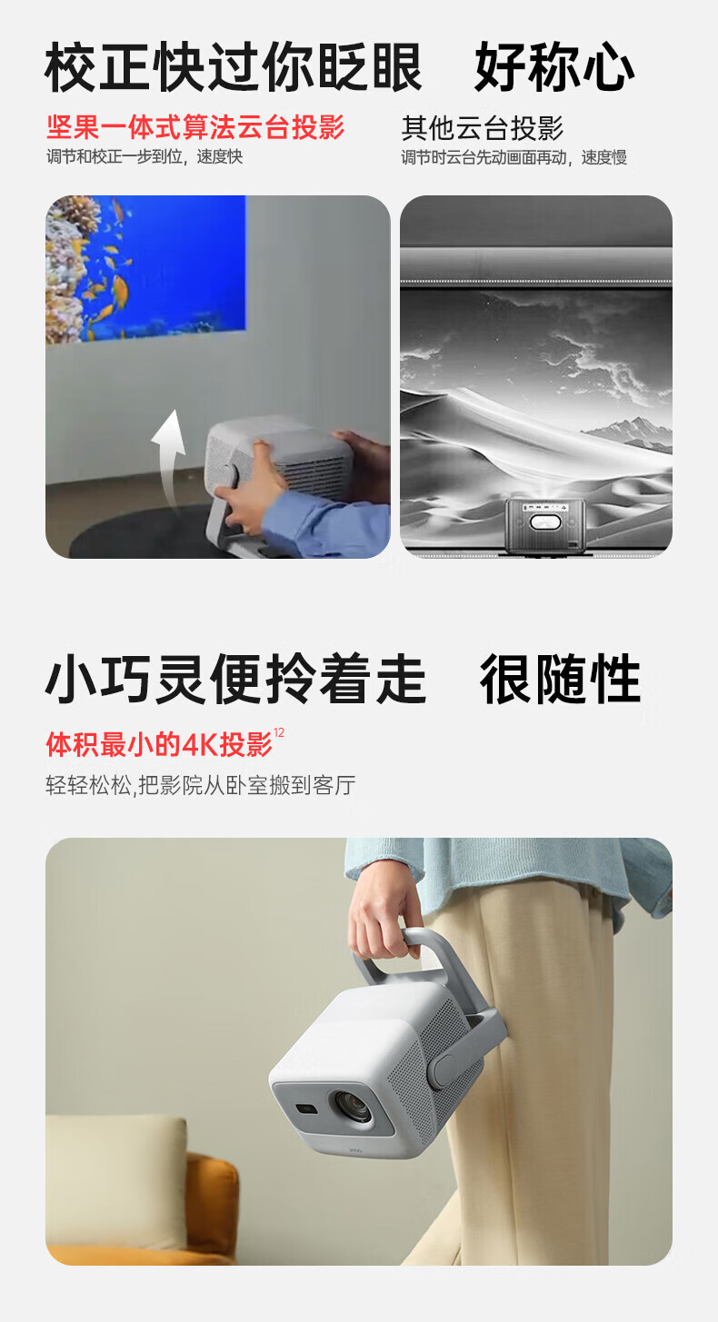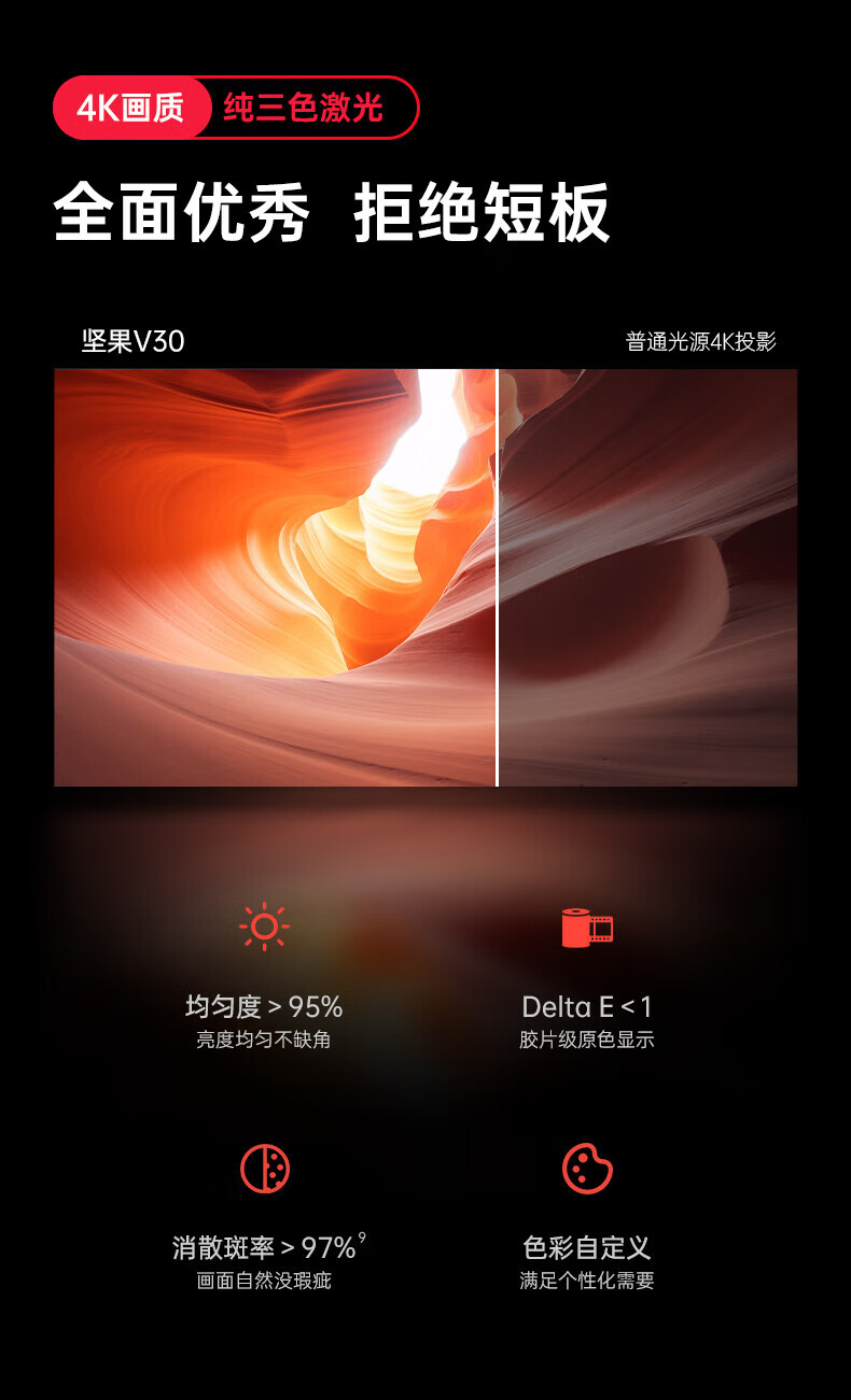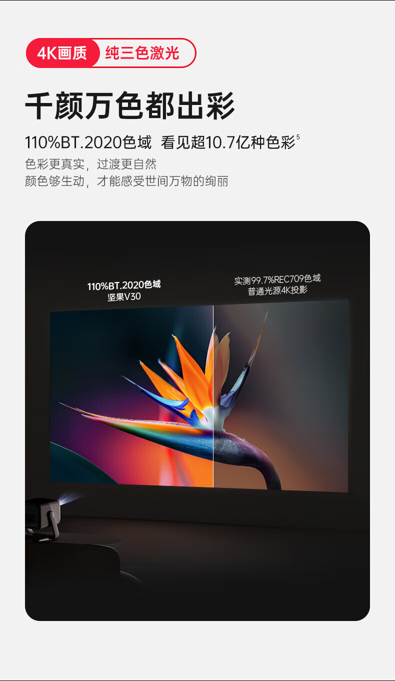 坚果V30 4K超高清纯三色激光 云台投影仪 家用智能投影仪