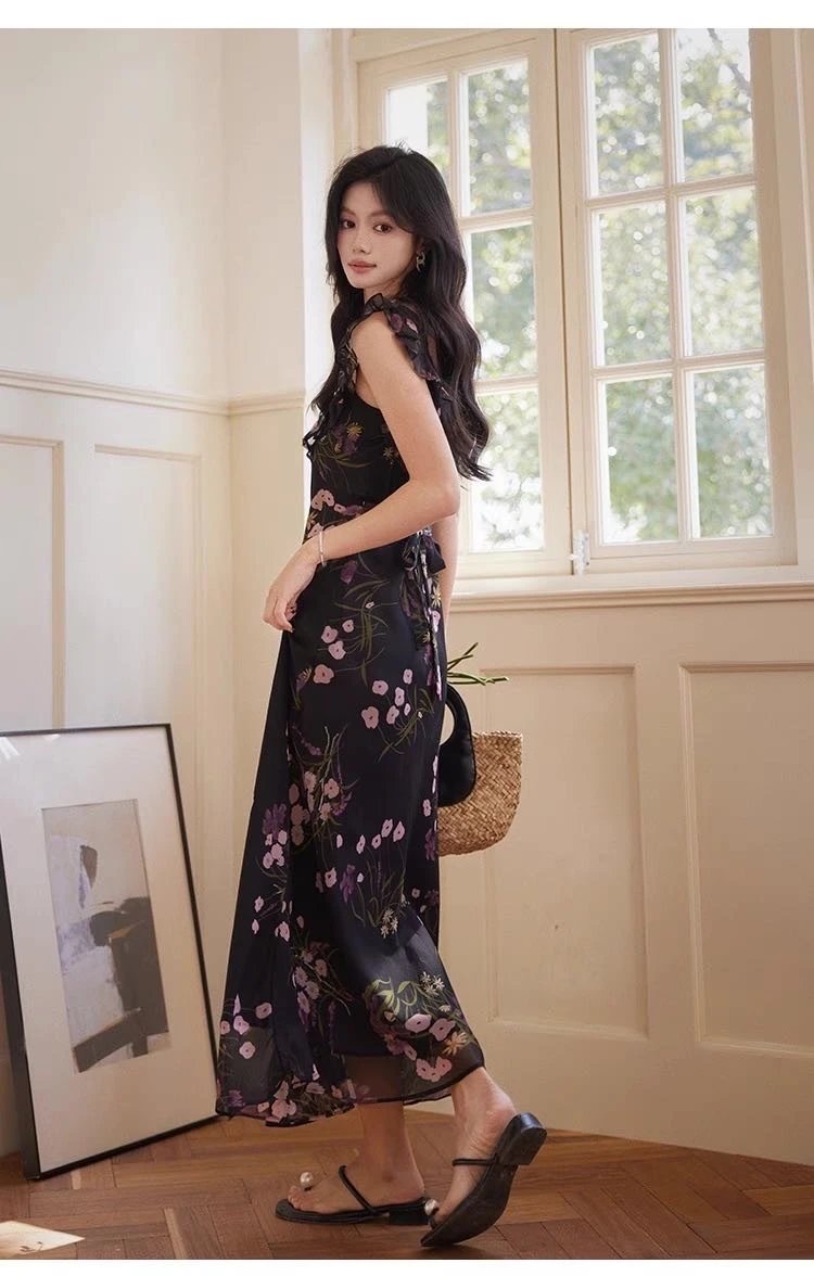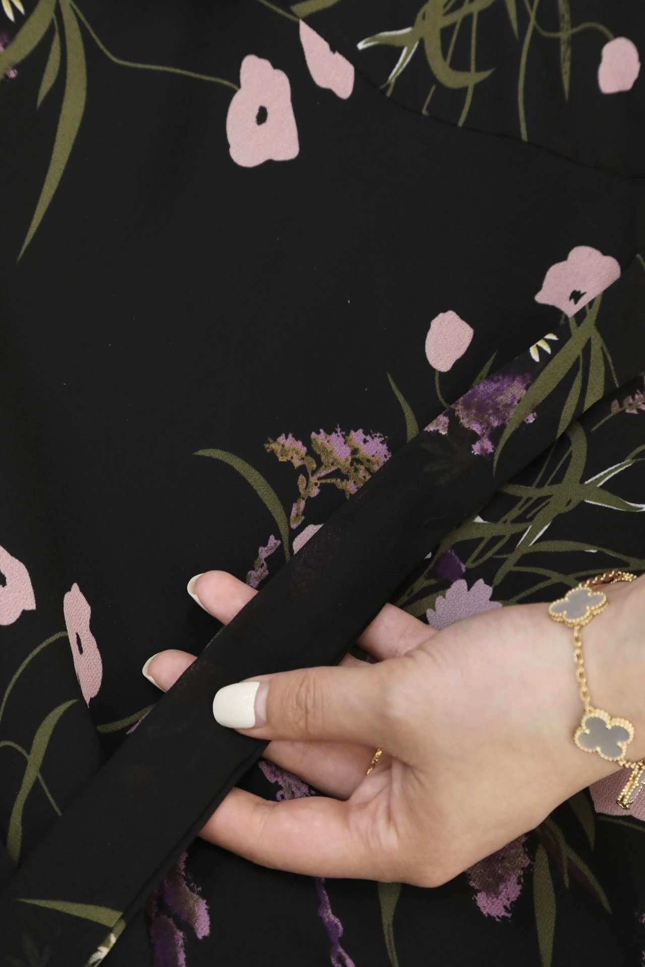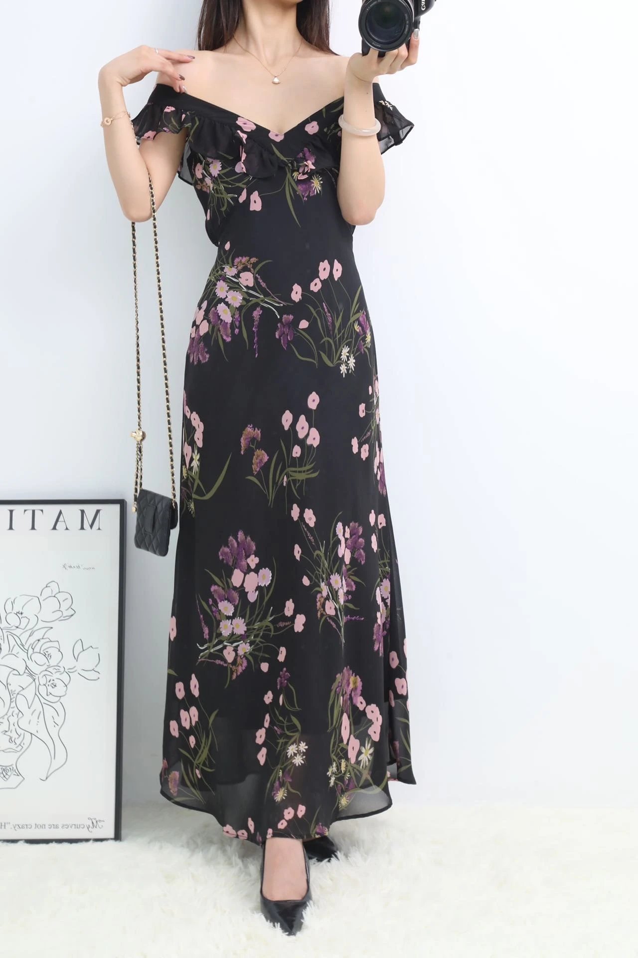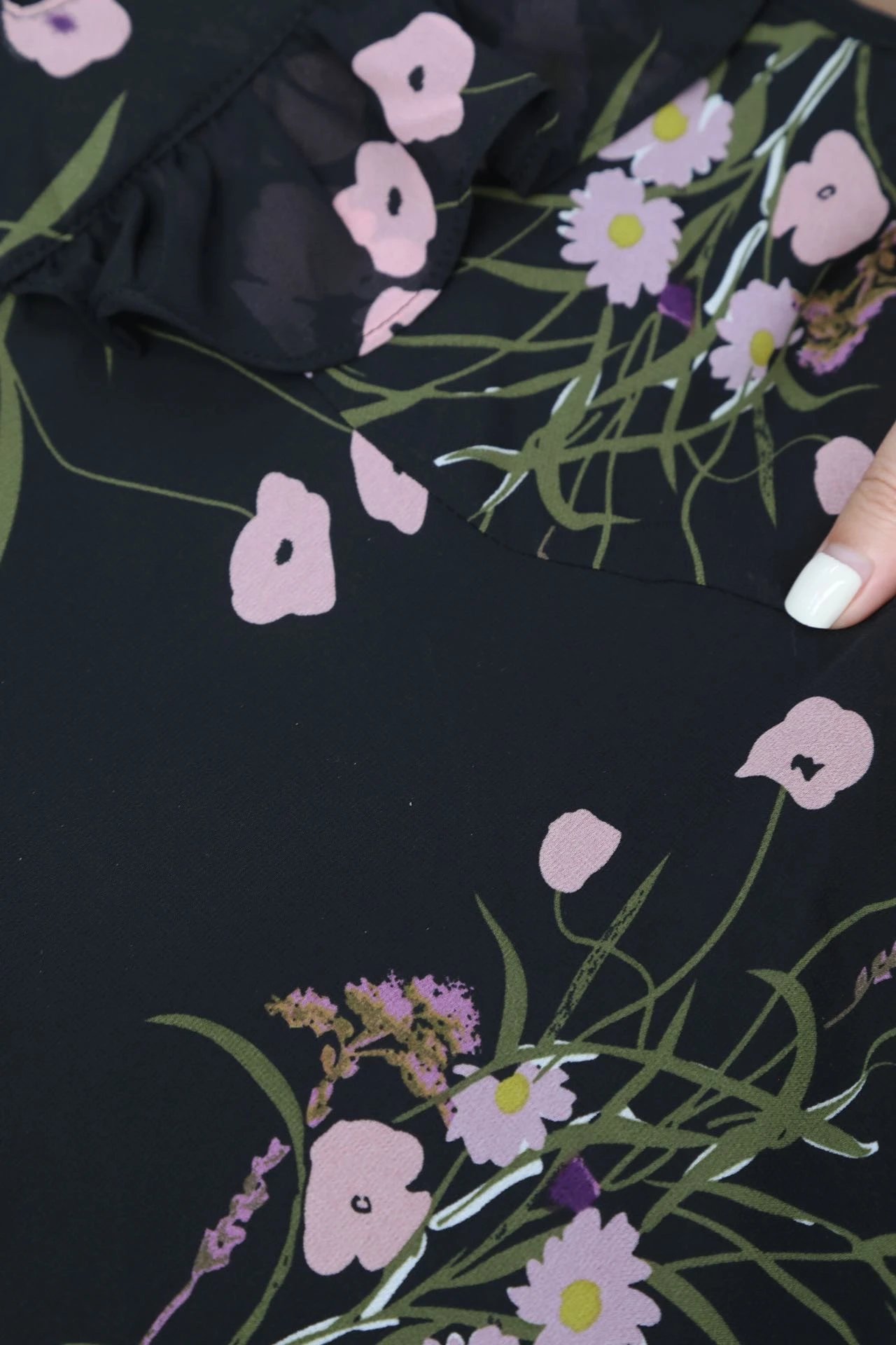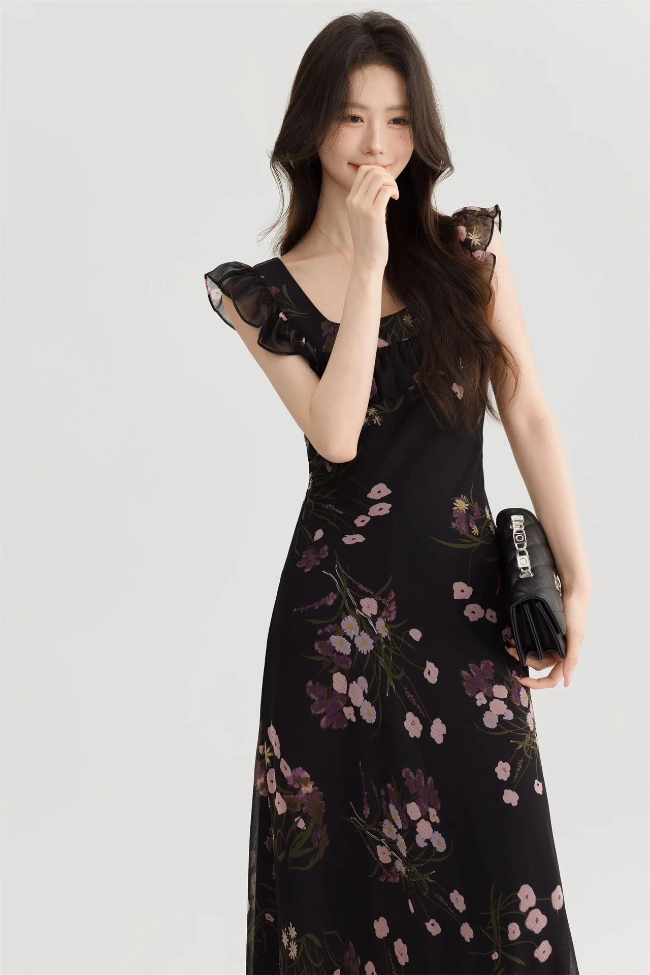 花卉图在黑色底布的映衬下自带清冷温婉既视感