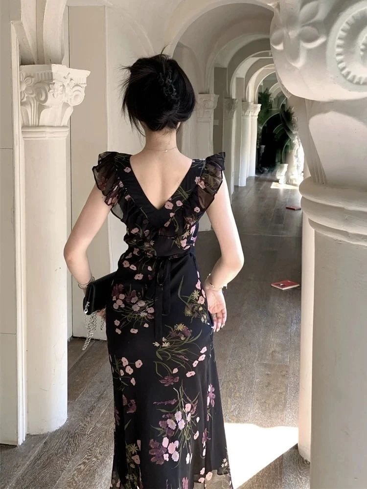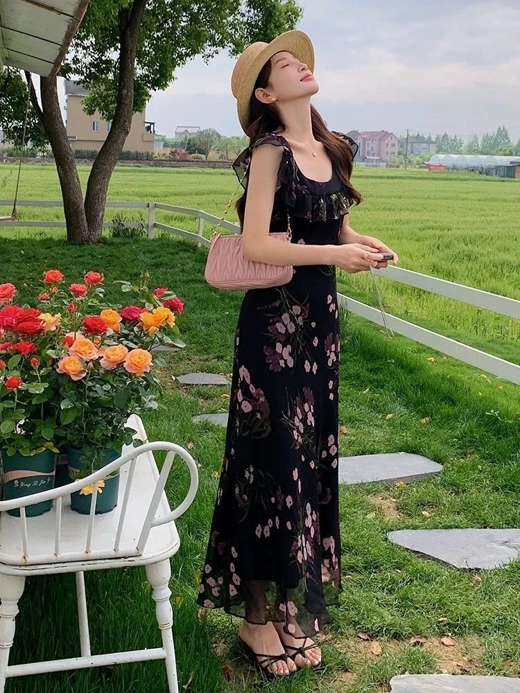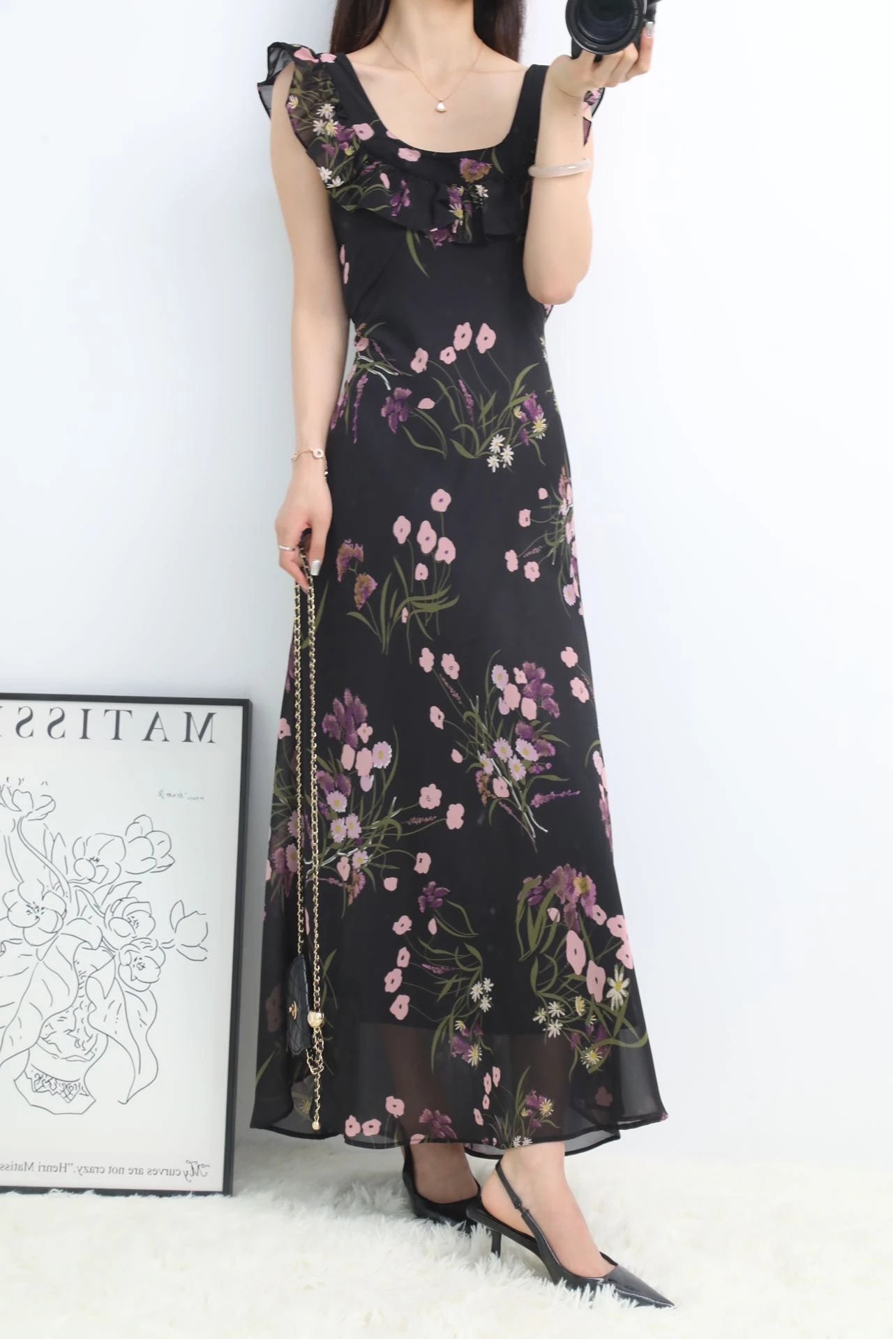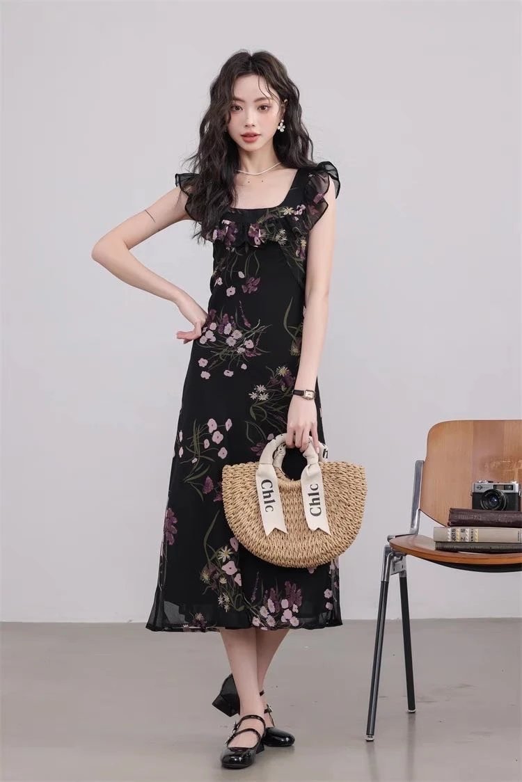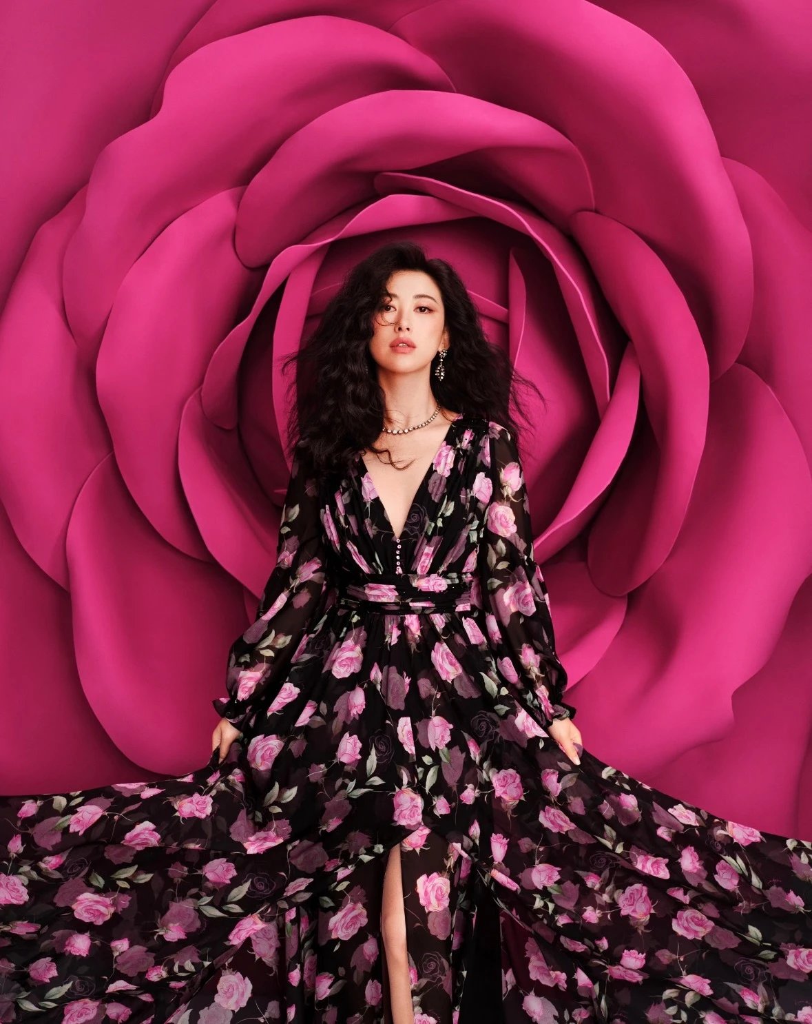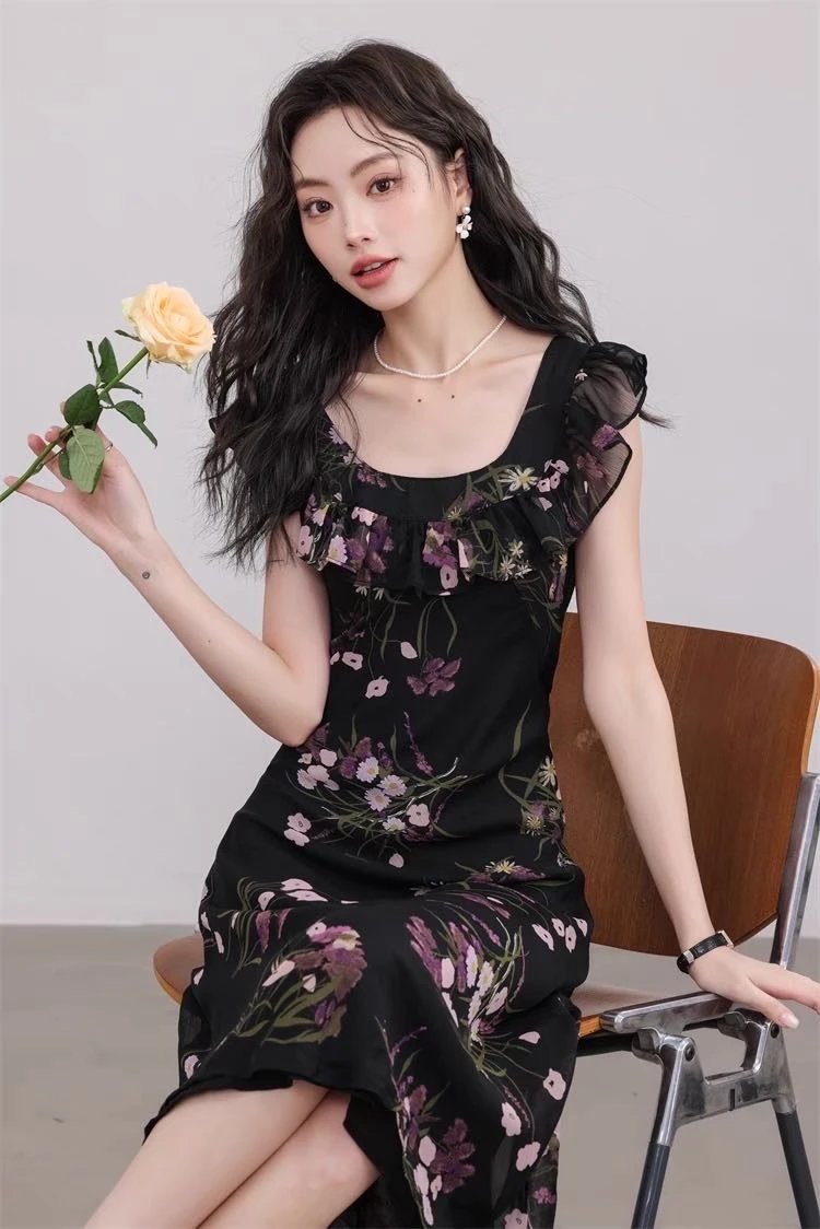 花卉图在黑色底布的映衬下自带清冷温婉既视感