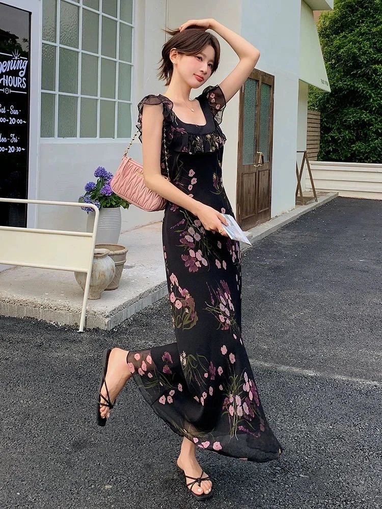 整体通过精致配饰与简约单品的搭配,突出连衣裙的优雅与浪漫,适用于多种场合