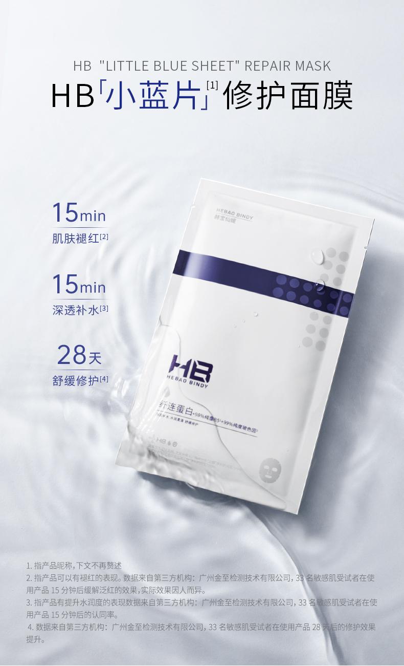 [补水面膜]【59.9元任选40片丨低至1.49元/片】HB赫宝仙媞多效修护舒缓补水面膜(小蓝片) 单片装*5片