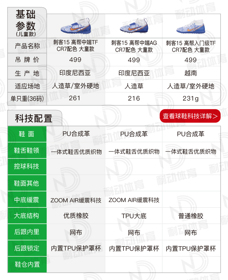 NIKE/耐克 Nike. Jr. Mercurial Zoom Superfly 9 Academy CR7 TF 刺客15 高帮中端TF足球鞋 CR7配色 大童款