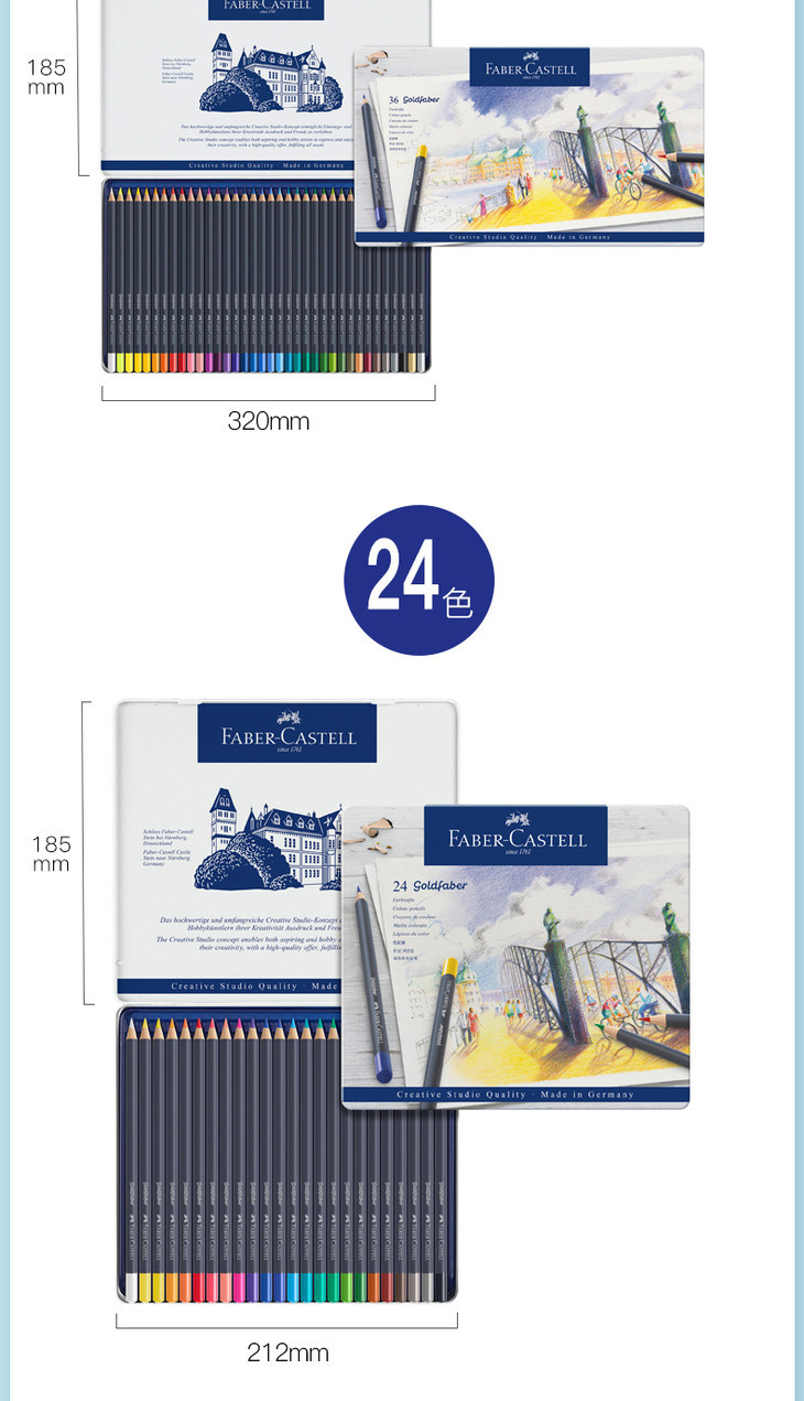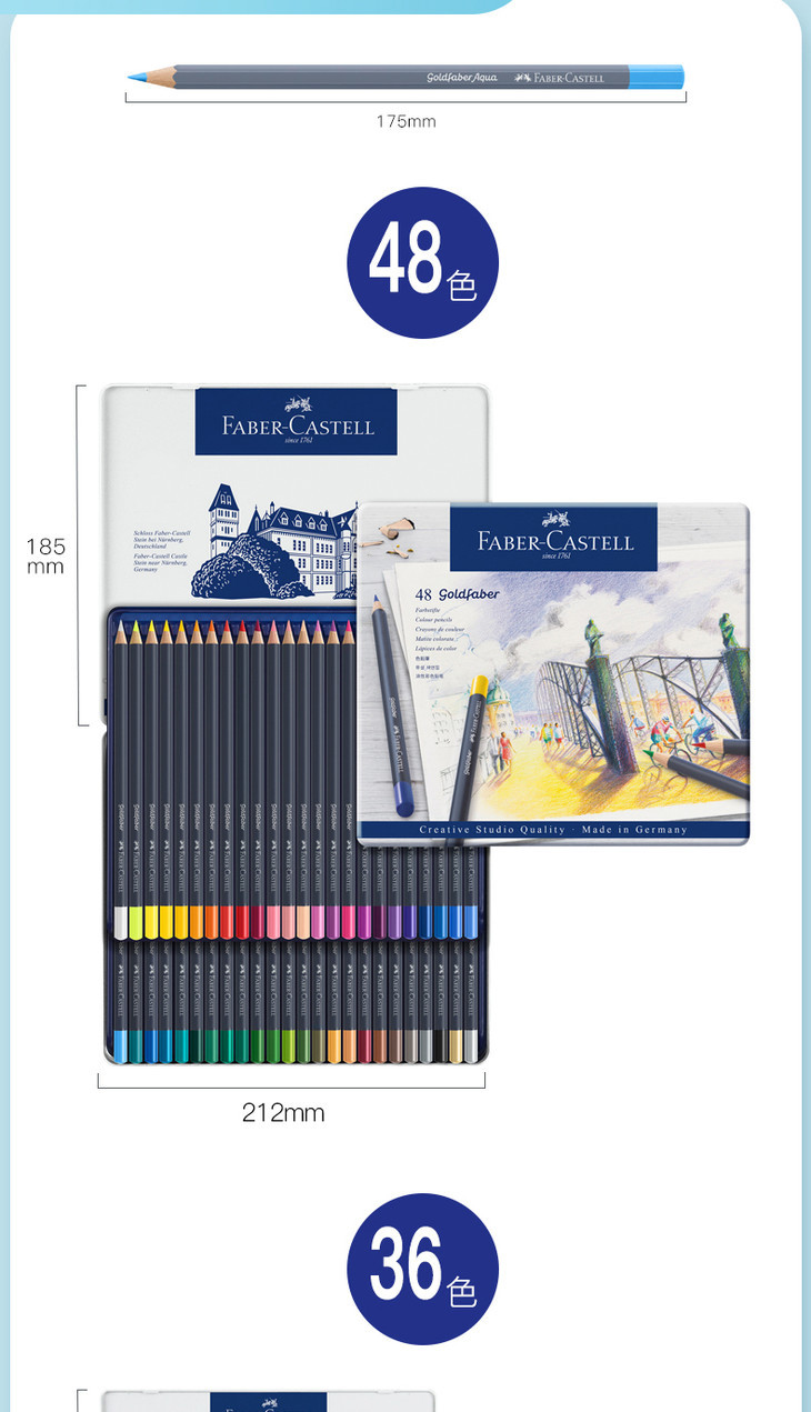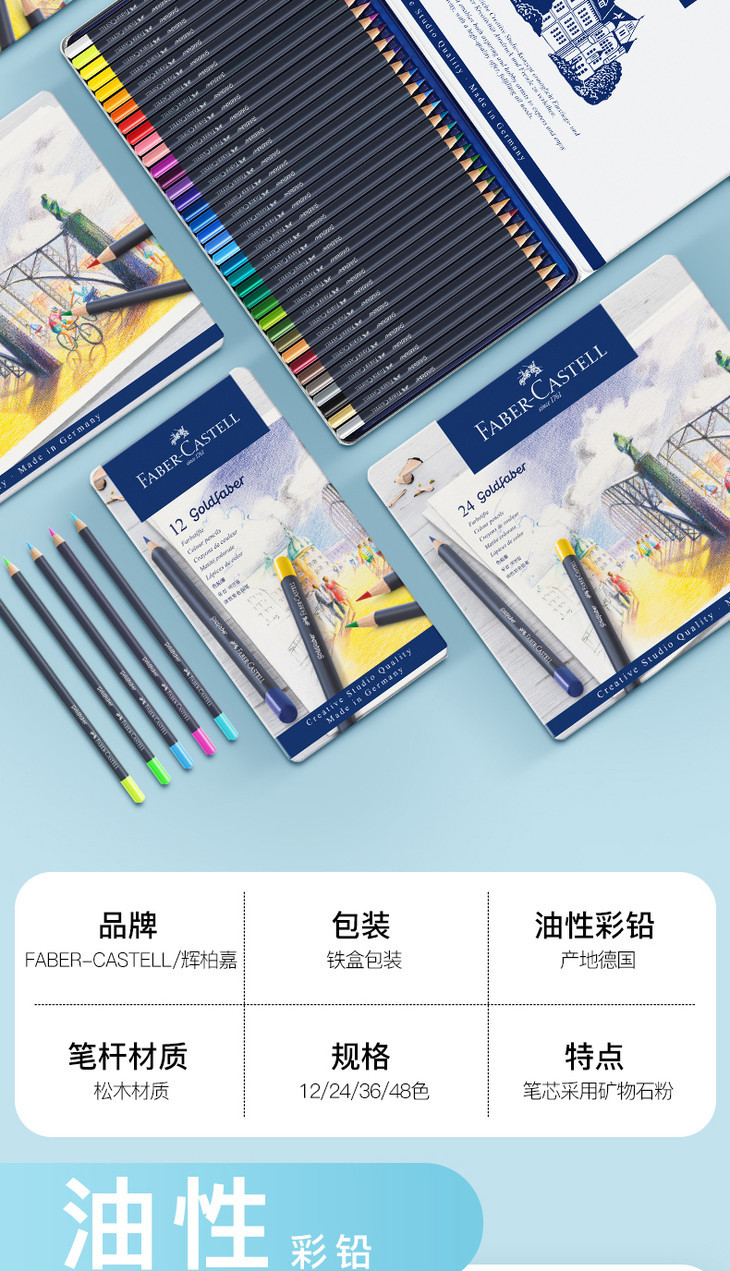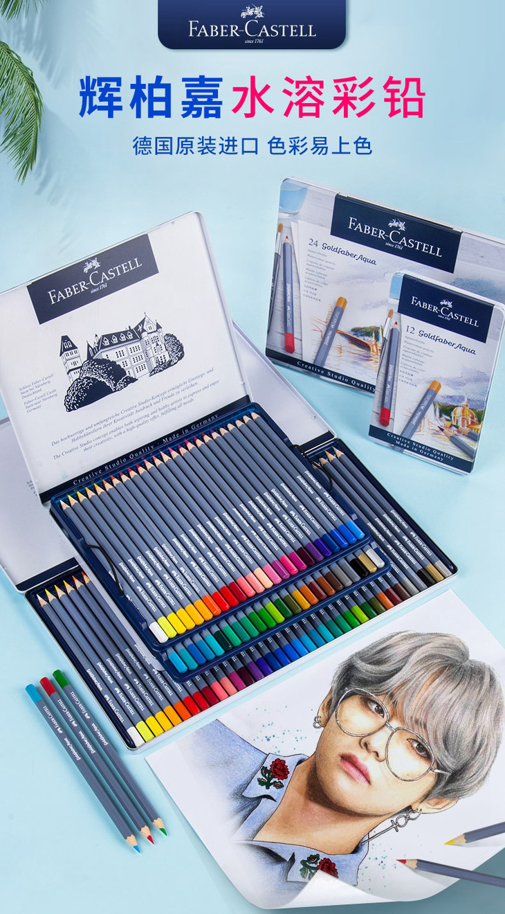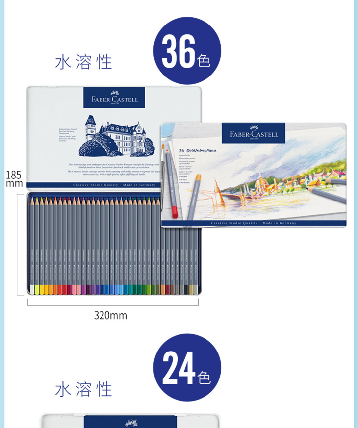 德国辉柏嘉 蓝系列 专业彩铅 水溶/油性 铁盒装 12/24/36/48色