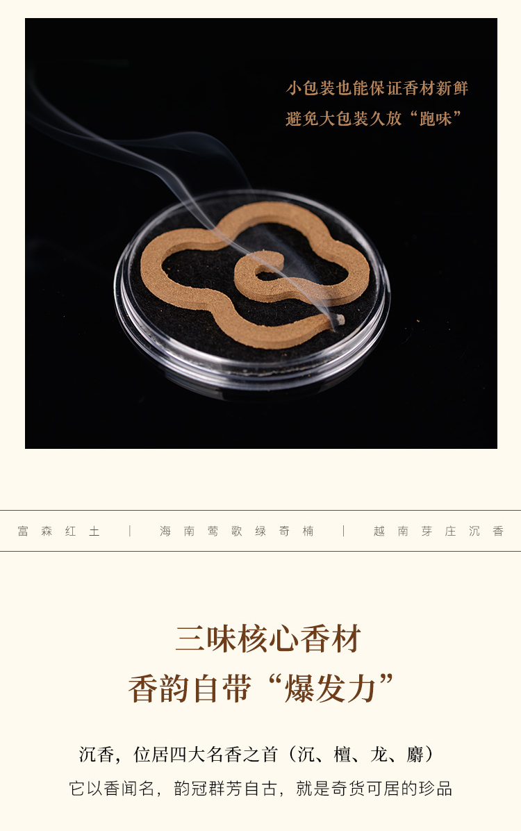 富森红土沉香,高压成型无粘粉祥云便携装