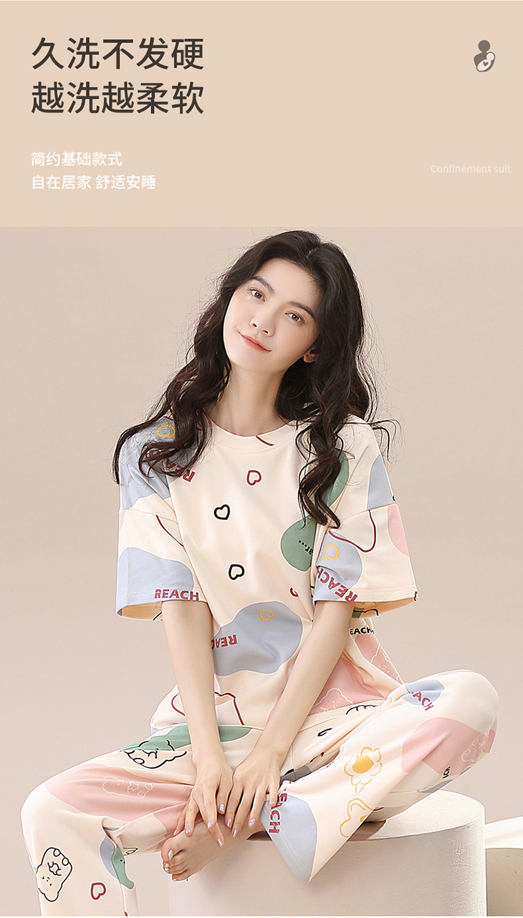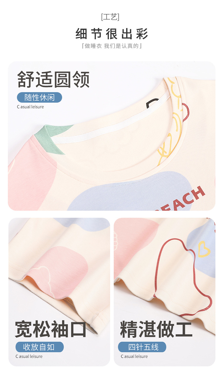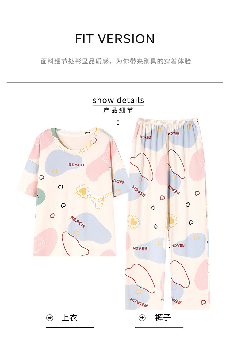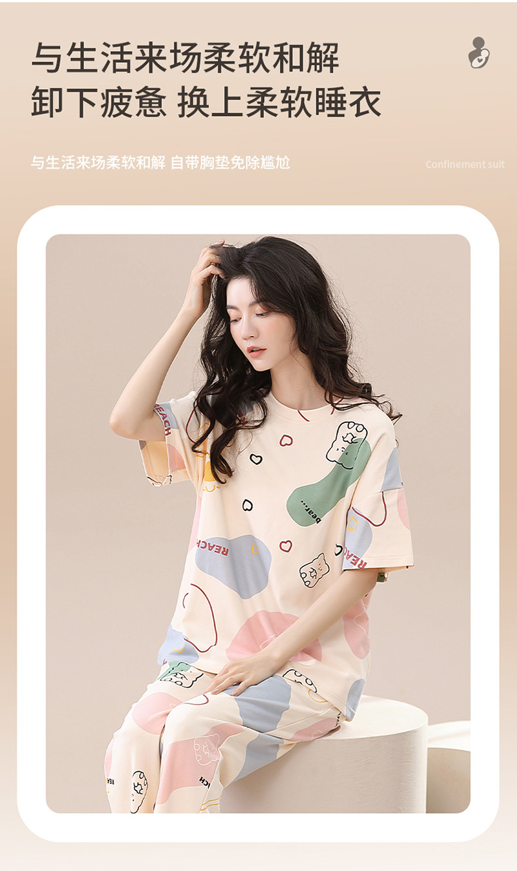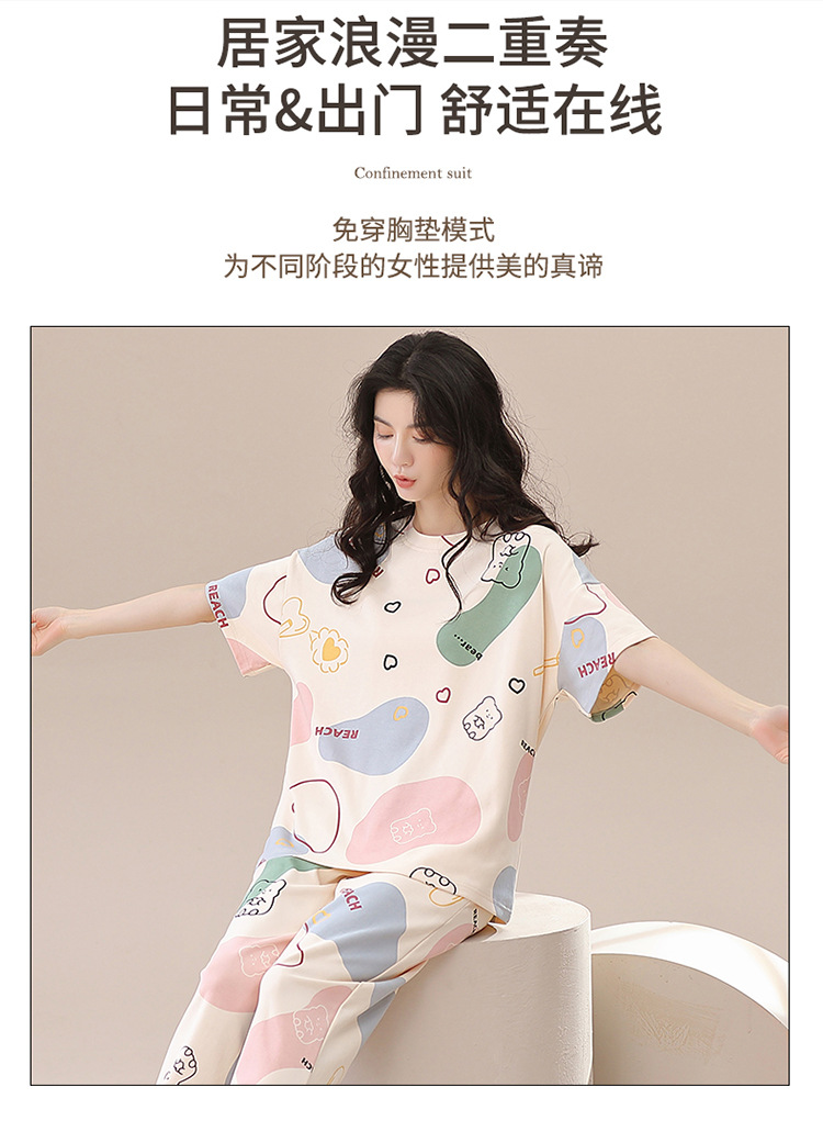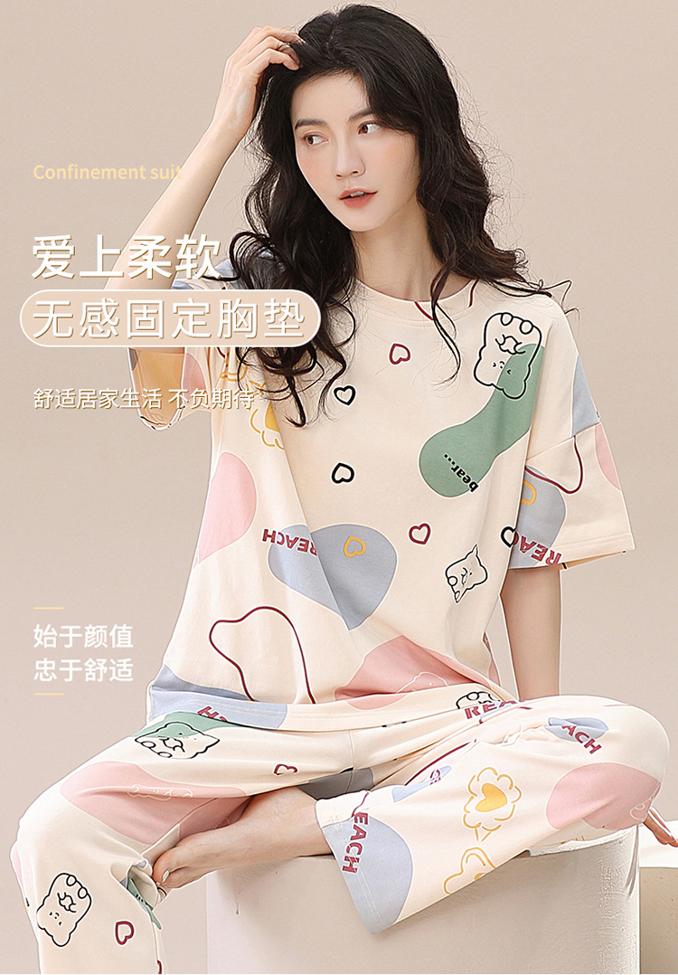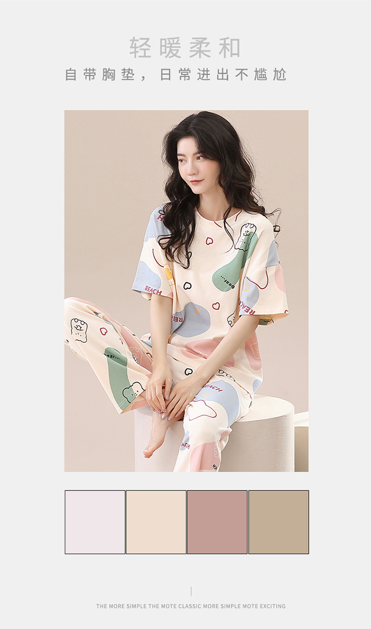 【带胸垫】全棉短袖长裤睡衣 夏季可外穿休闲女士家居服套装